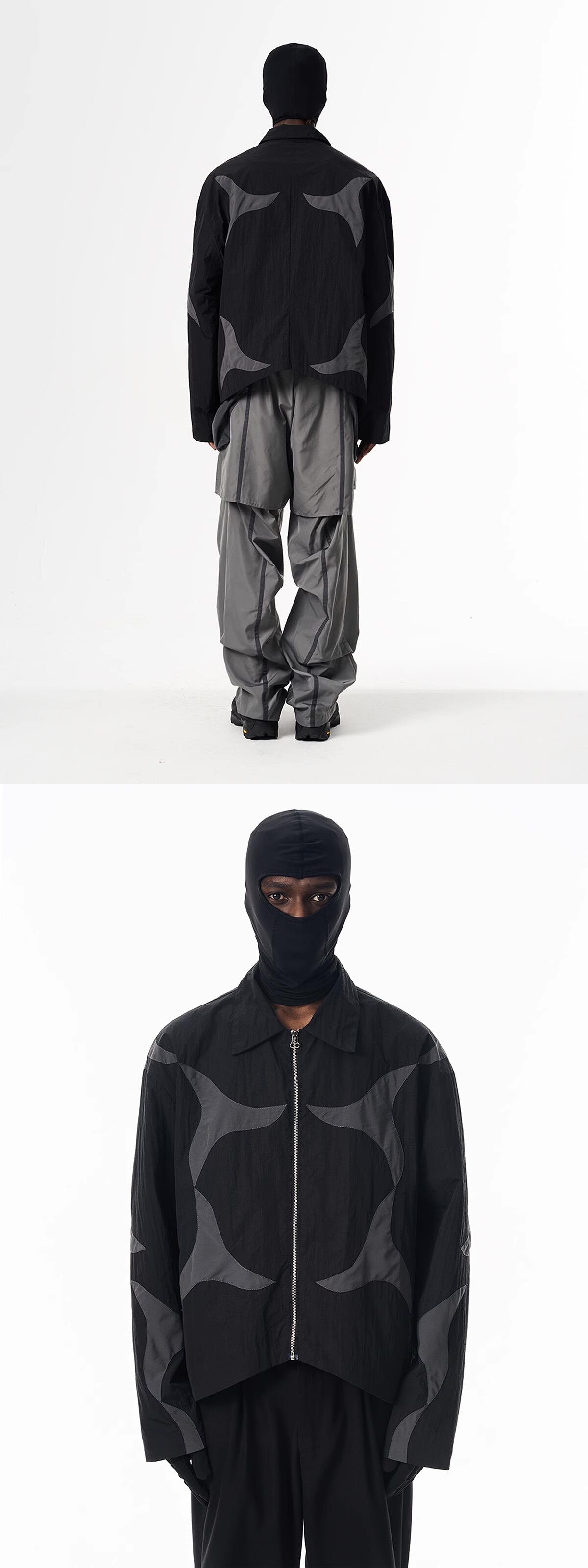 大胆なグラフィックデザインが特徴のショートジャケット。