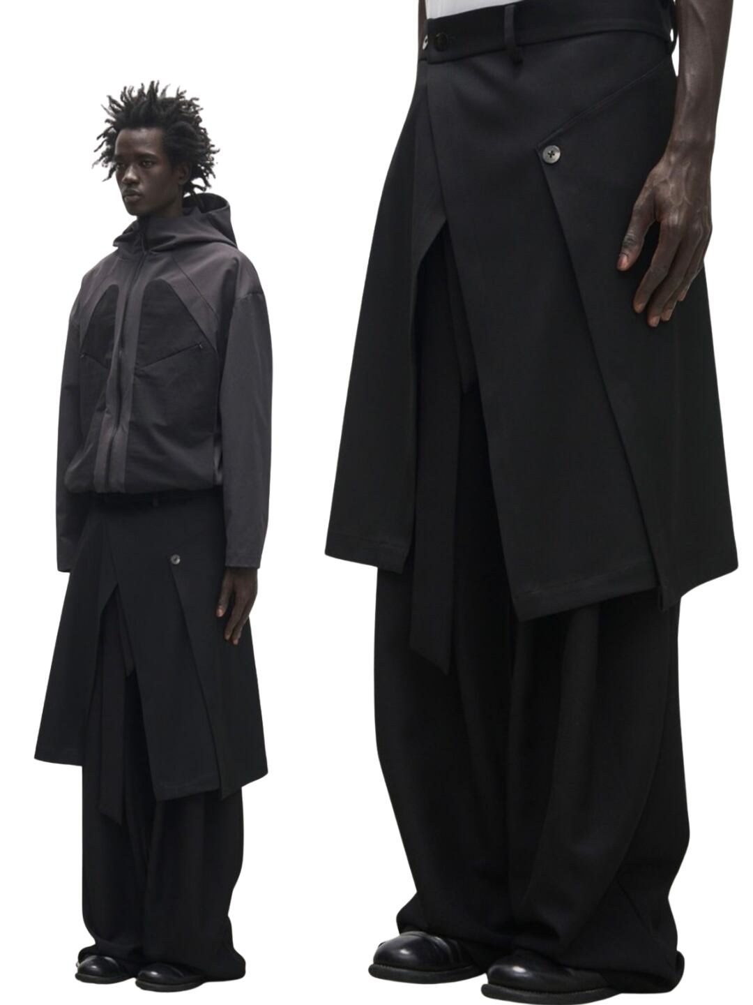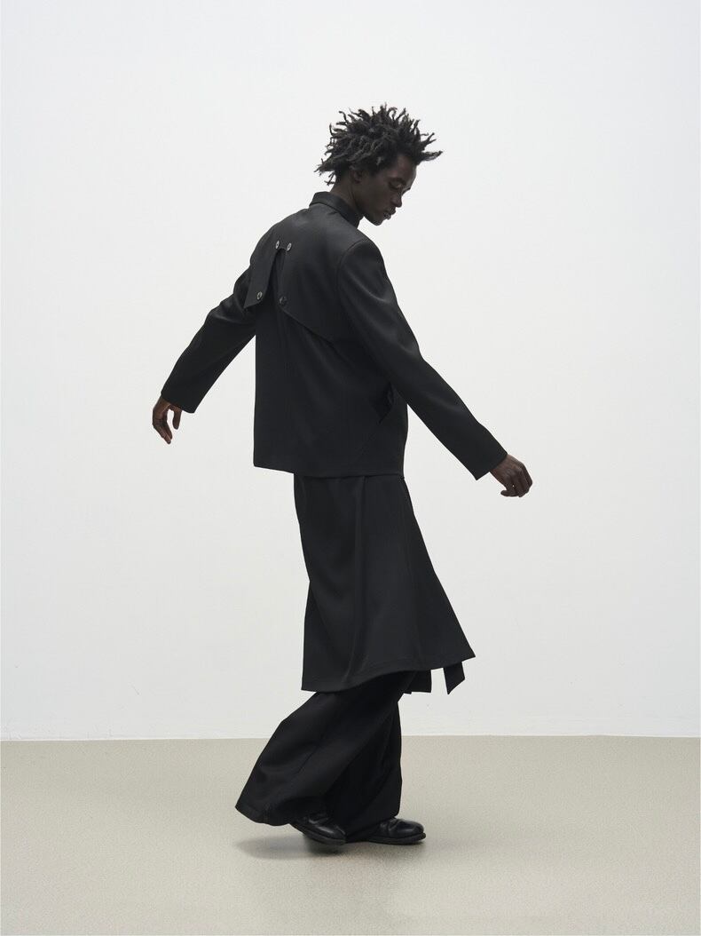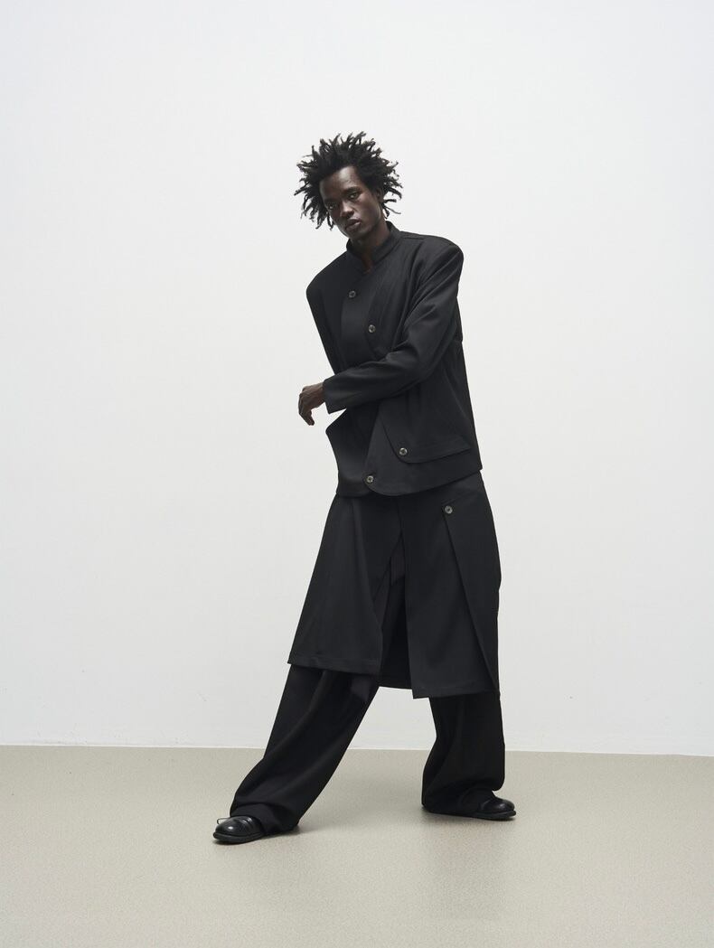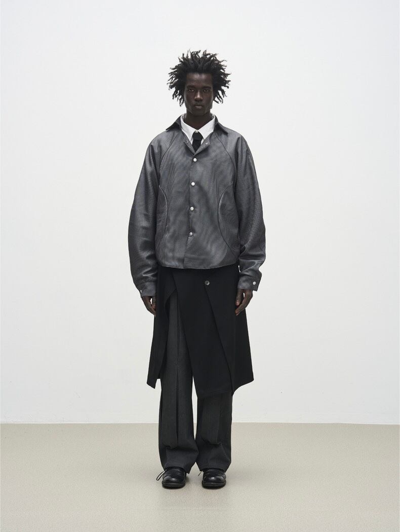 複数のボタンディテールがアクセントになり、斬新なシルエットを演出します。