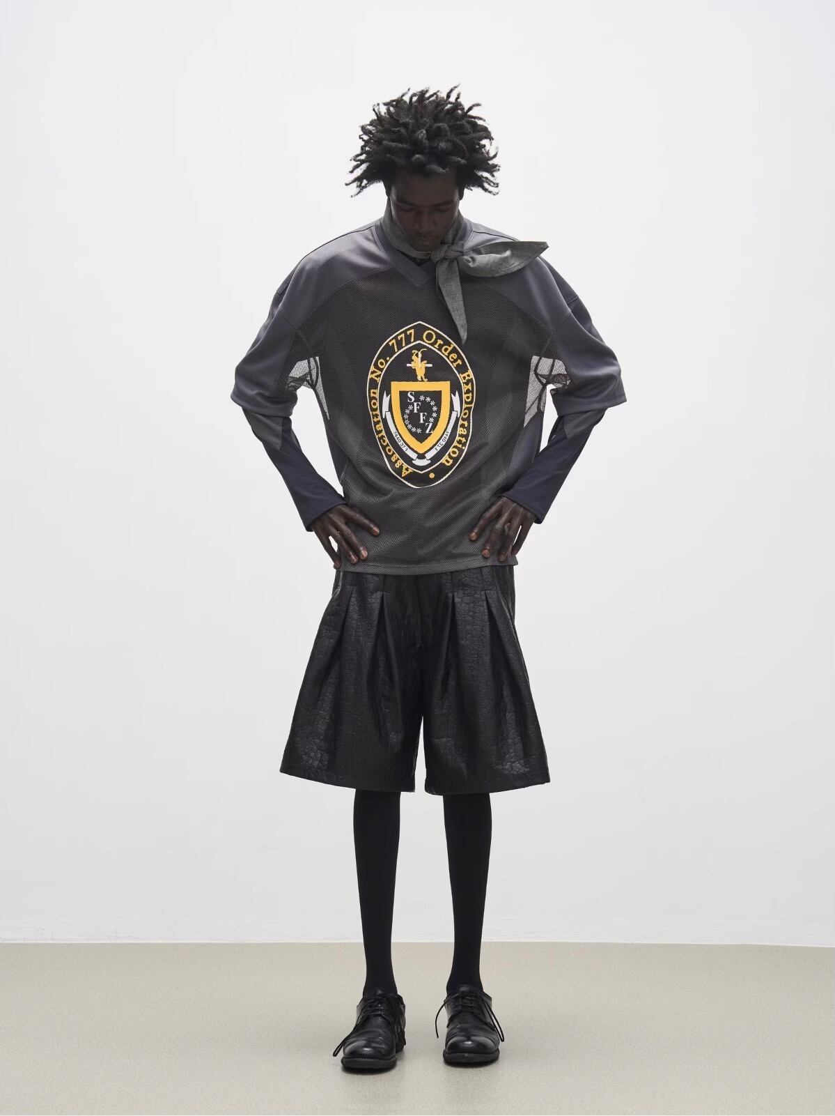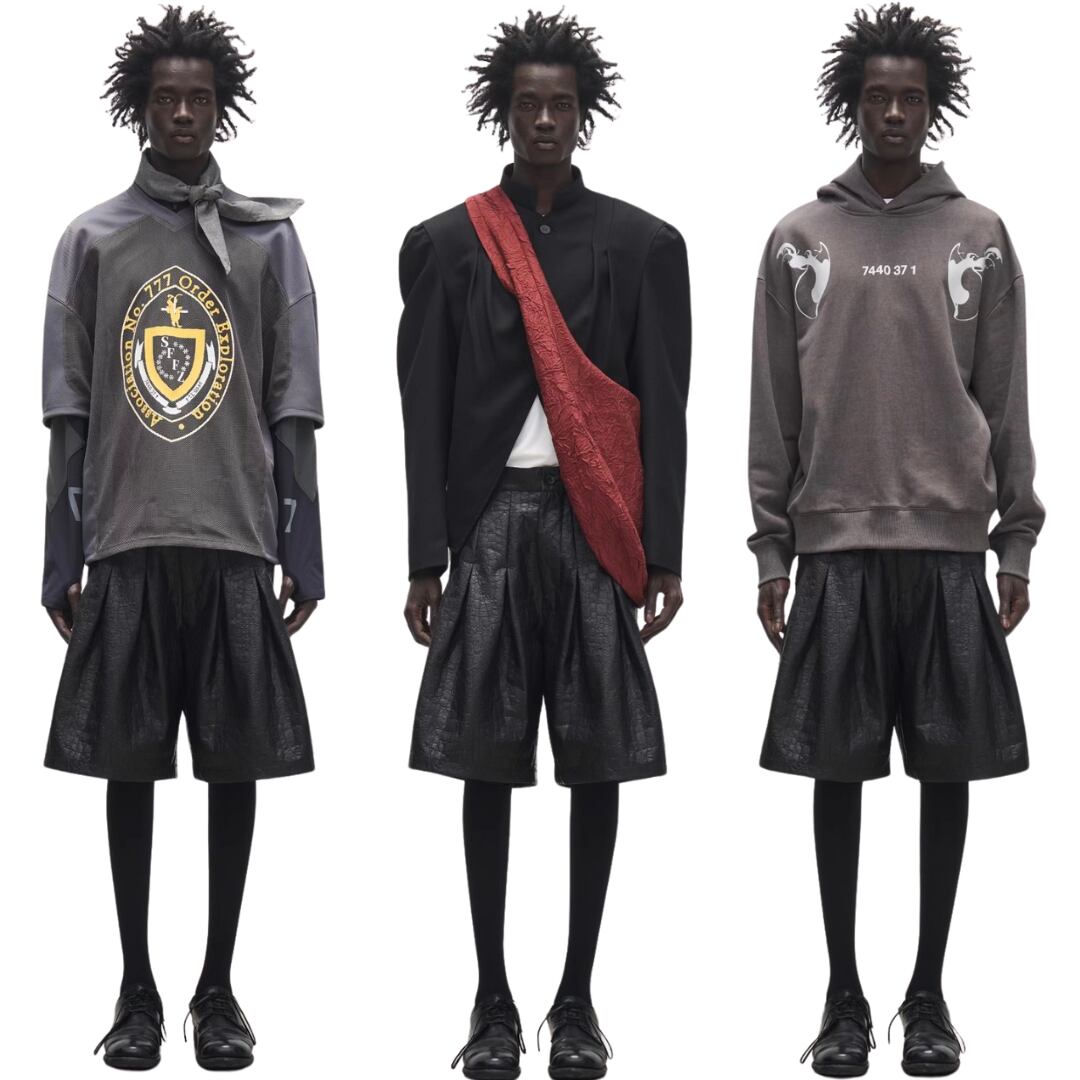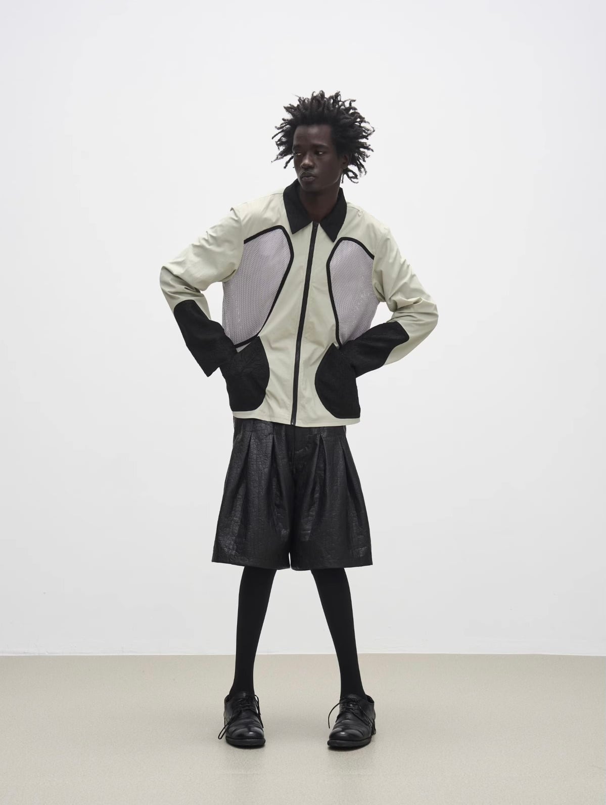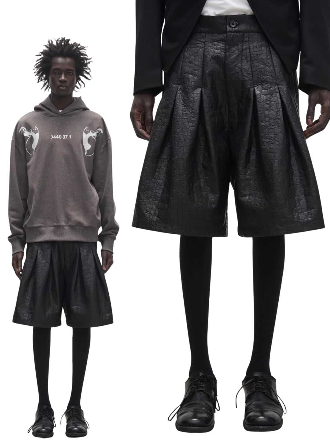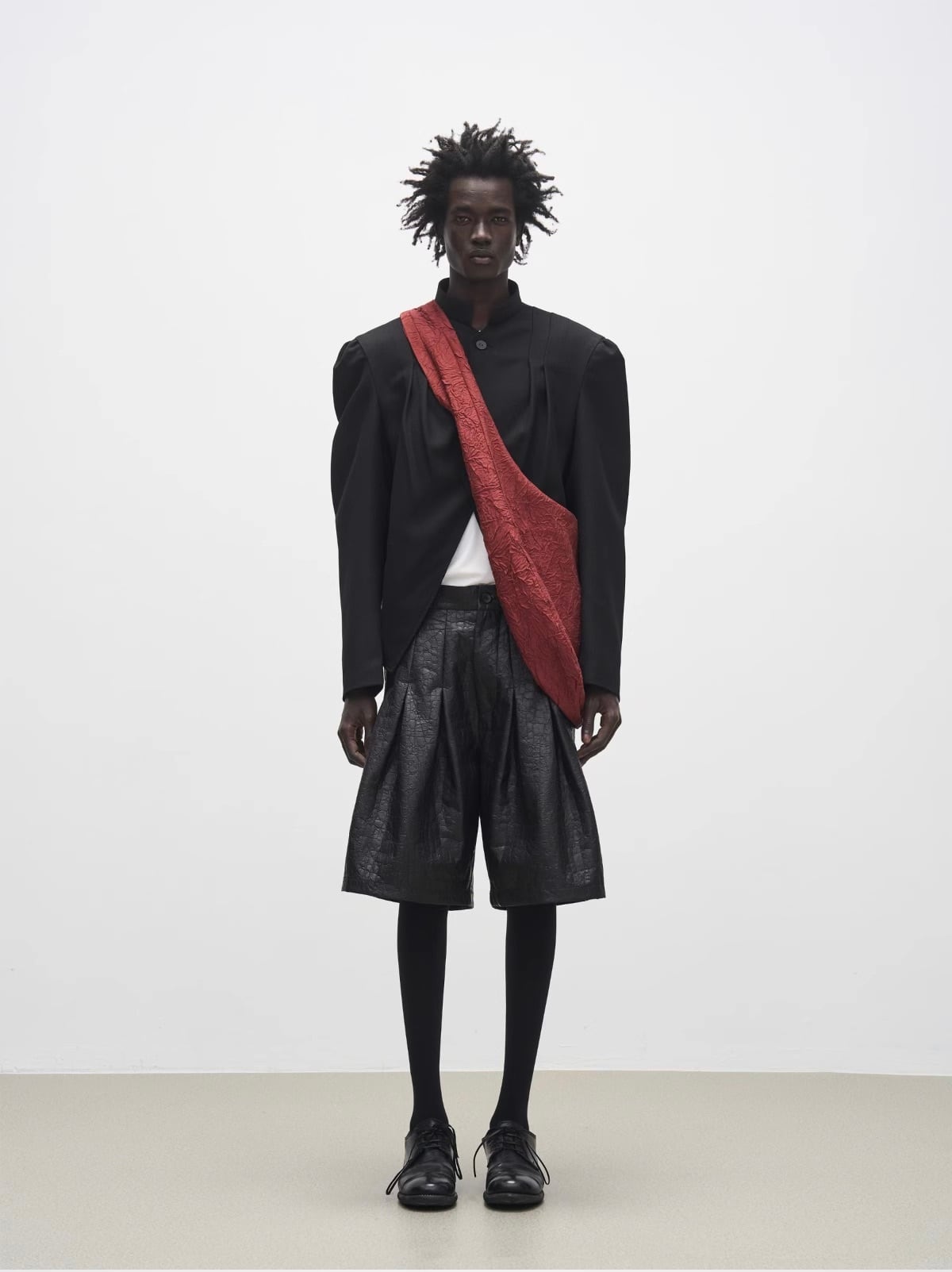 ワイドシルエットと対称プリーツデザインにより、動きやすさとモード感を両立。