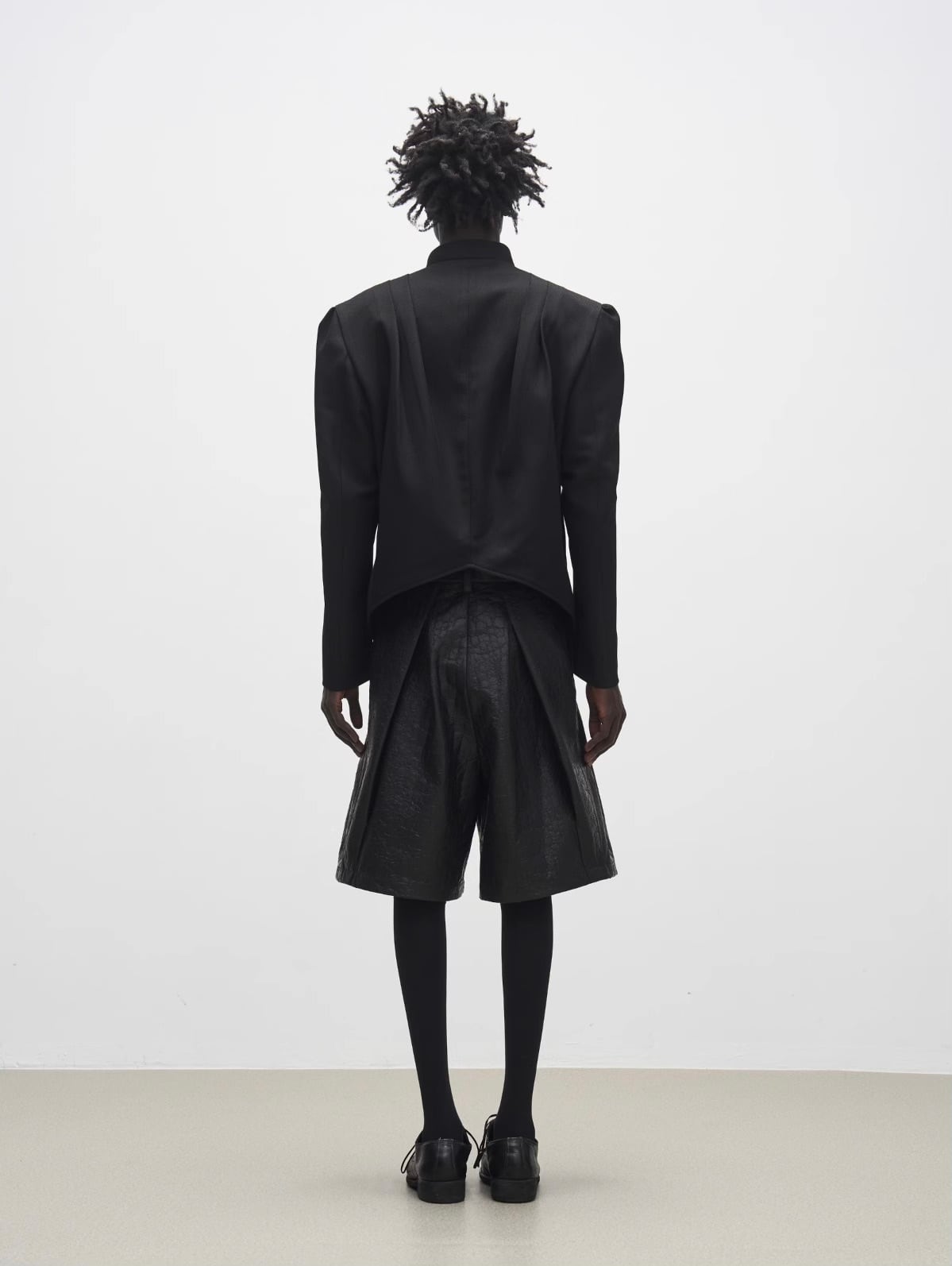 表面に施された立体感のあるシボ加工が高級感を演出し、独特の素材感が際立つ一着です。