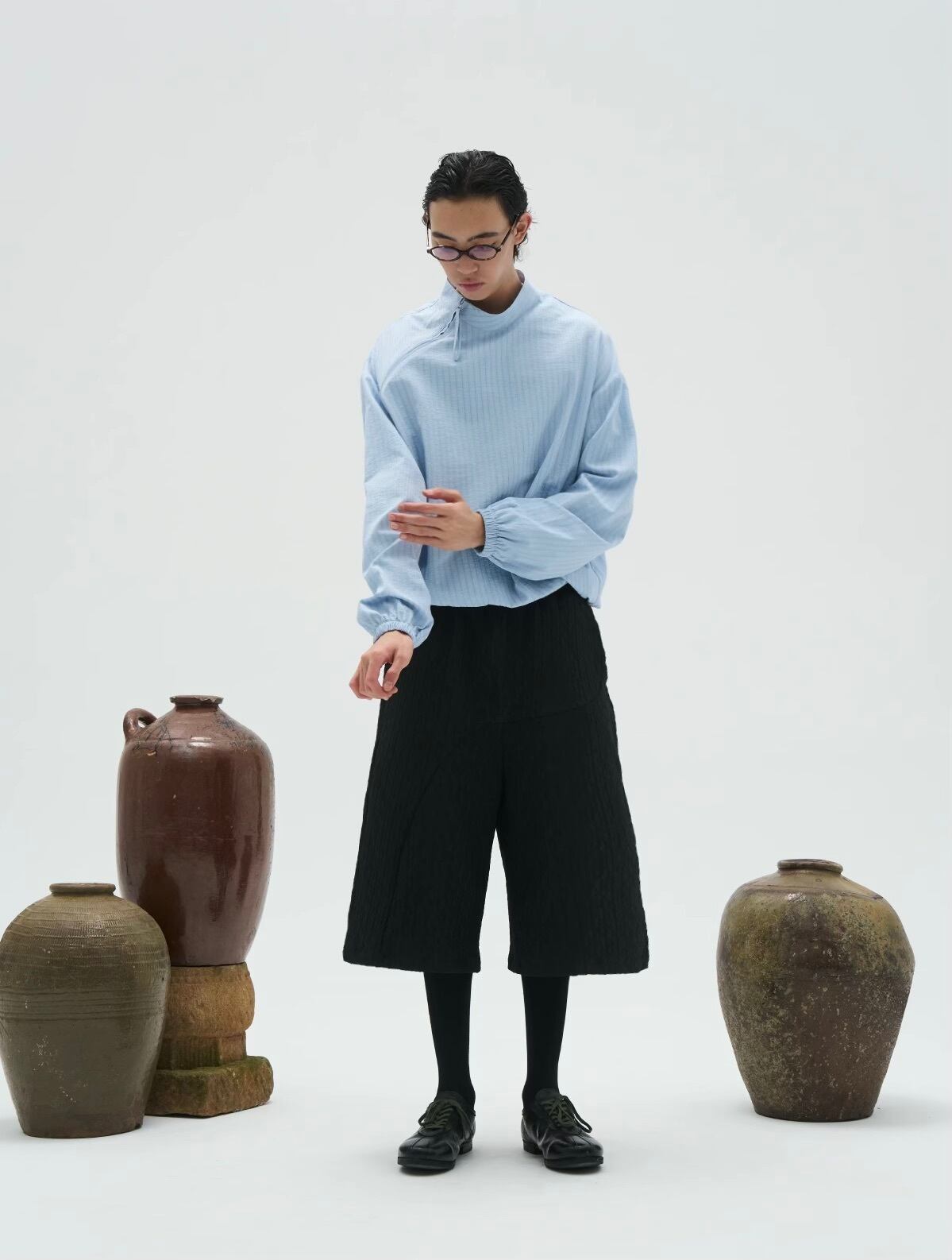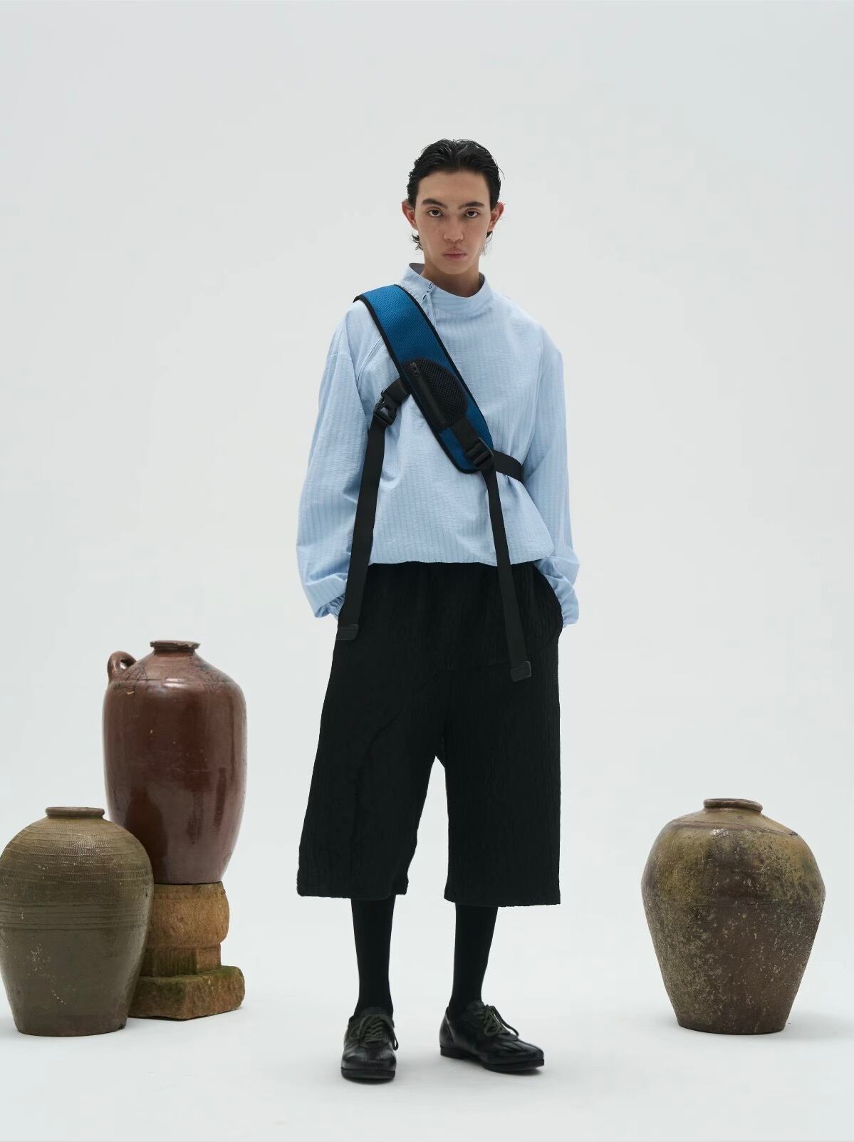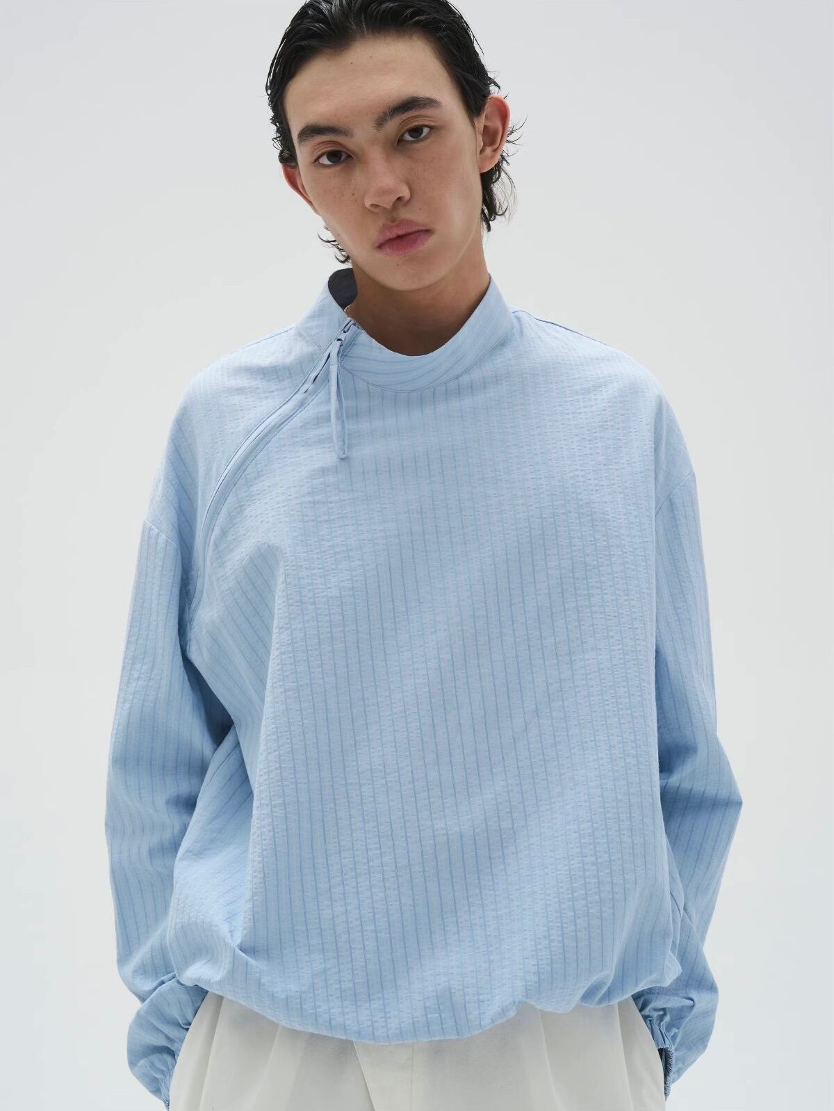 斜めに配されたジップディテールがアクセントになり、モダンな雰囲気を演出します。