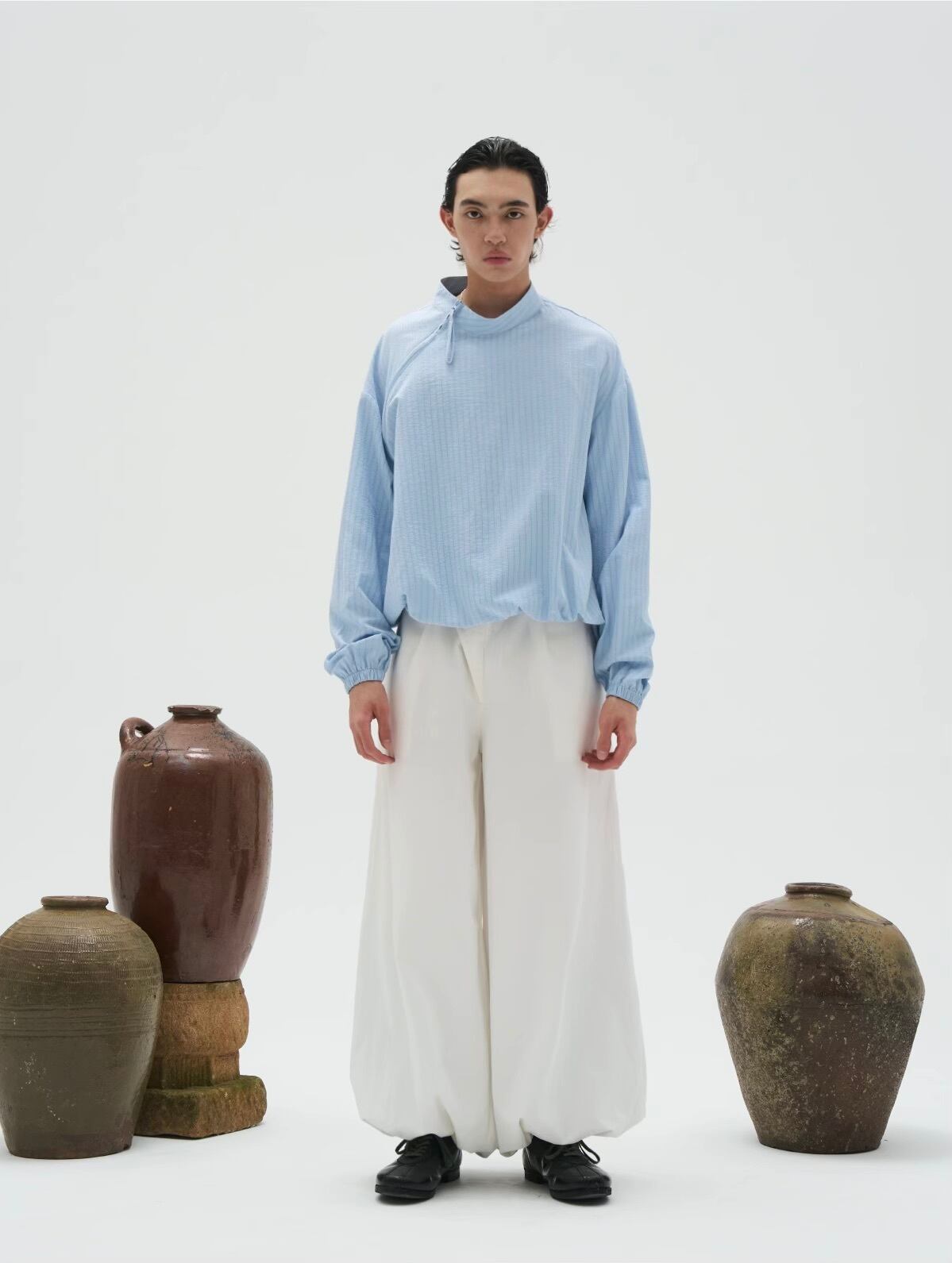 裾のドローコードでシルエットを調整でき、多様なスタイリングが可能。