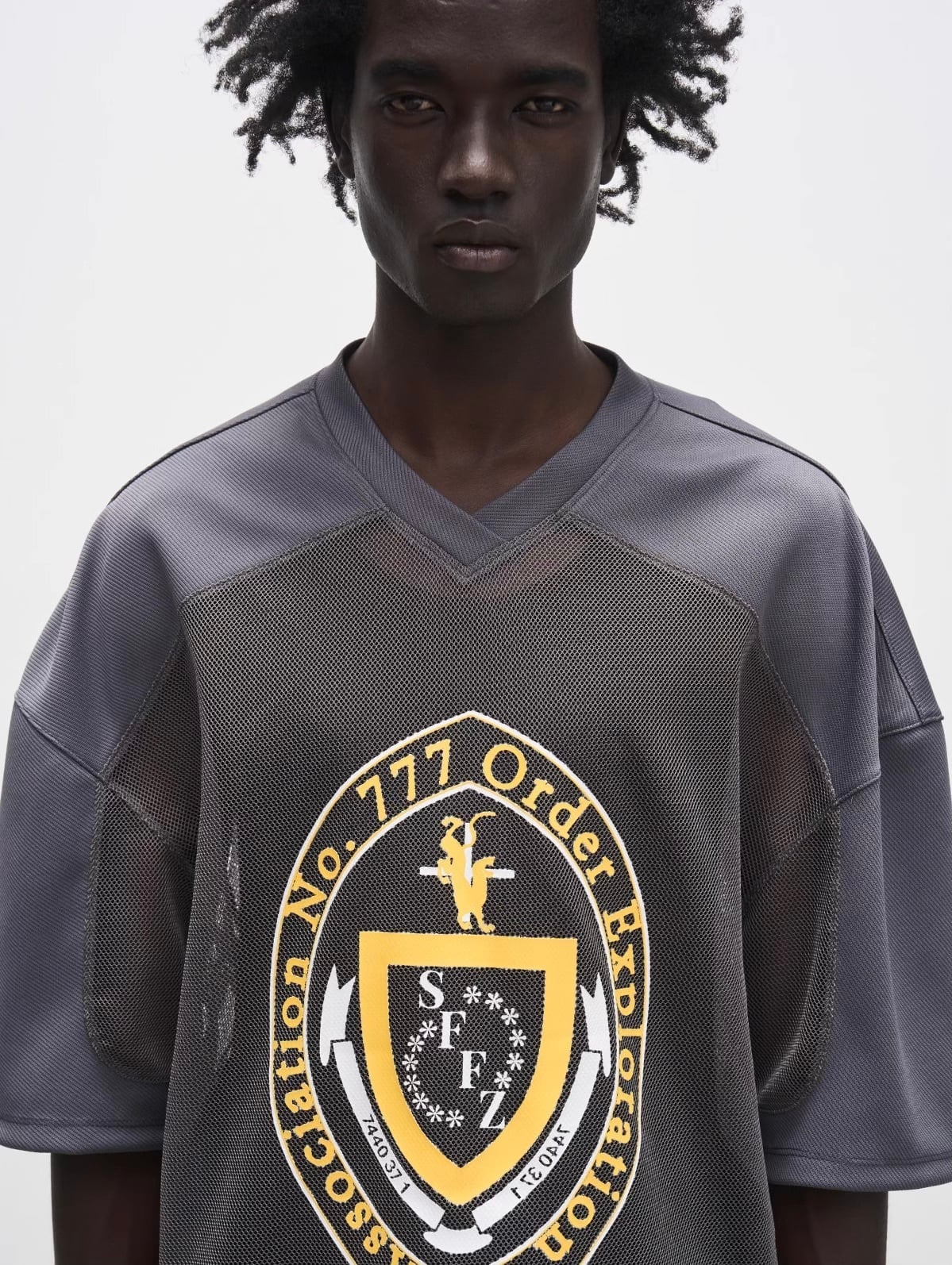 アカデミックな雰囲気が魅力のメッシュTシャツ。