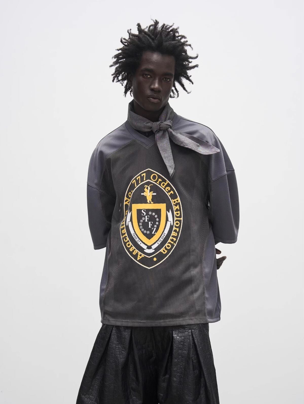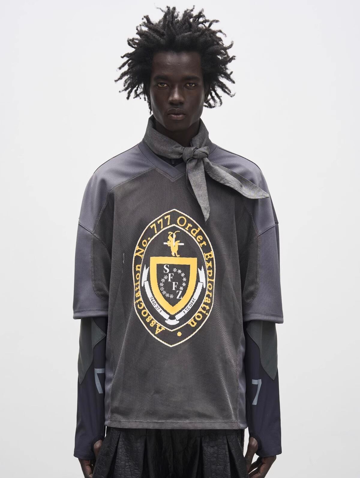 ビッグシルエットと大胆なエンブレムプリントが目を引き、