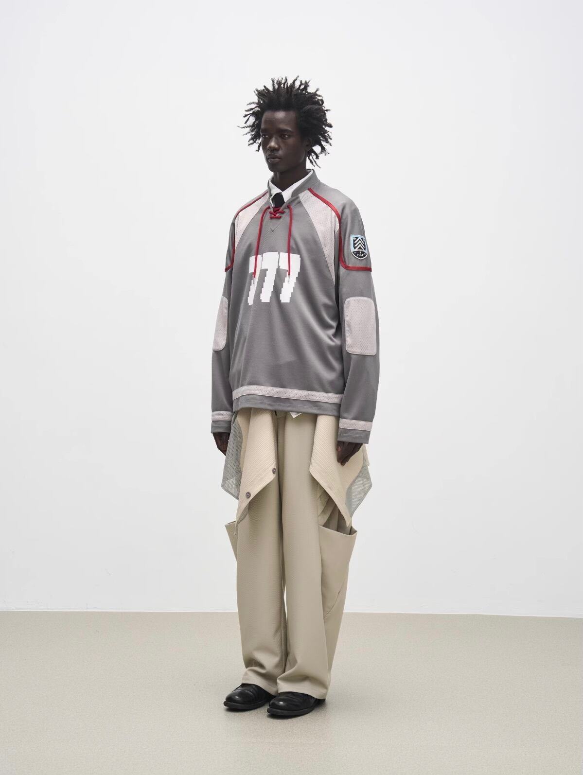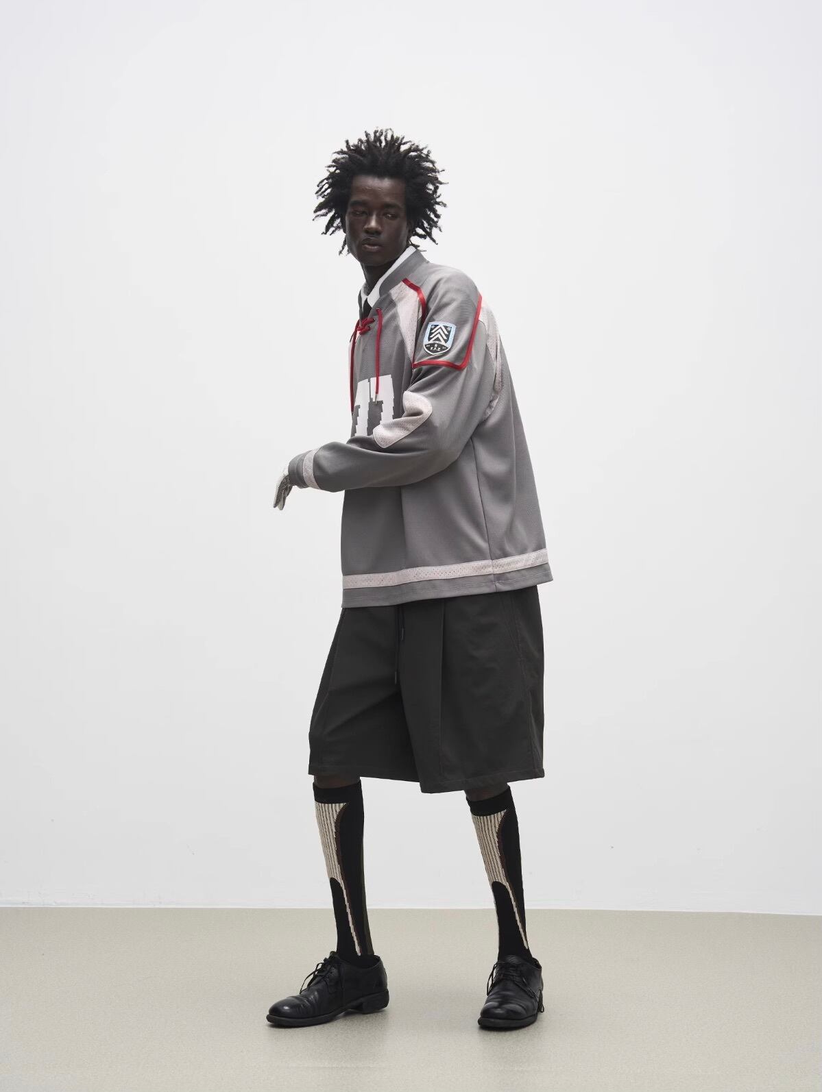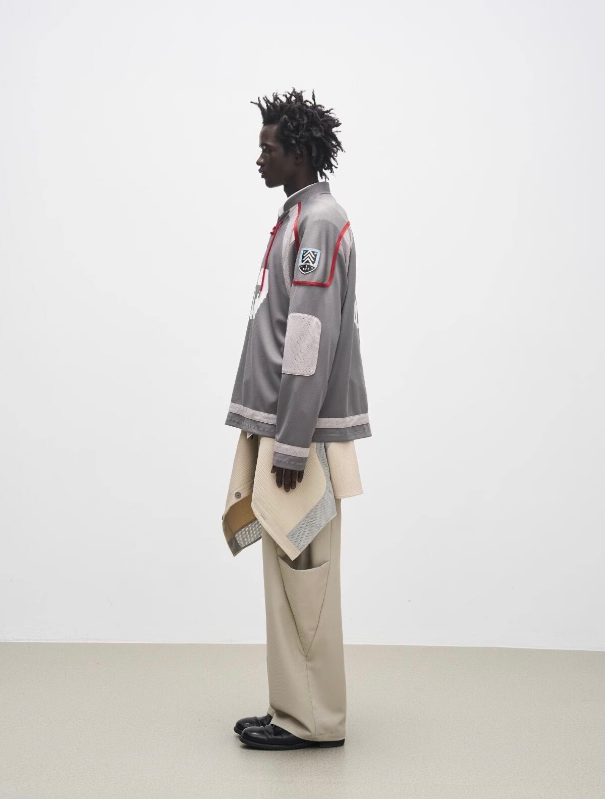 メッシュ切り替えデザインがアクセントになり、スポーティかつストリート感を演出します。
