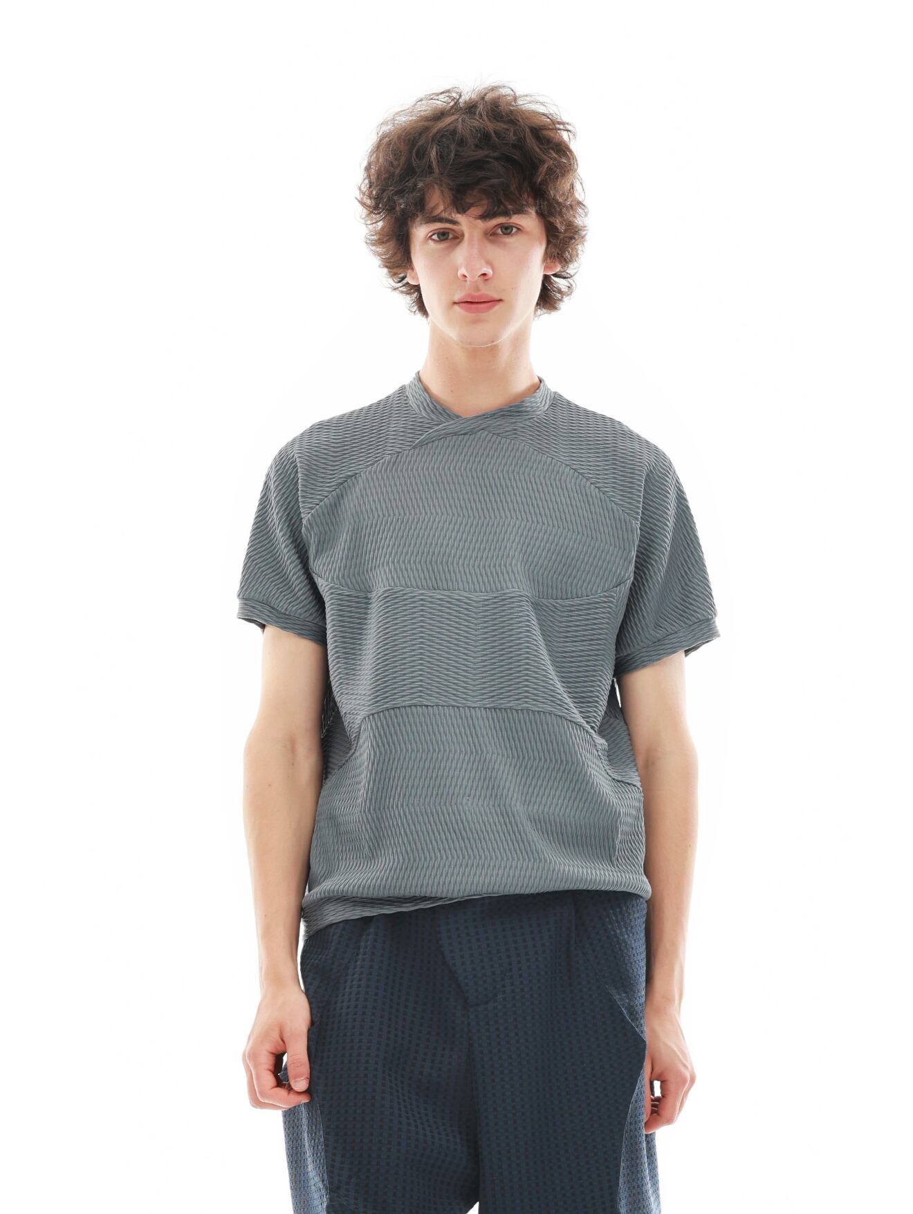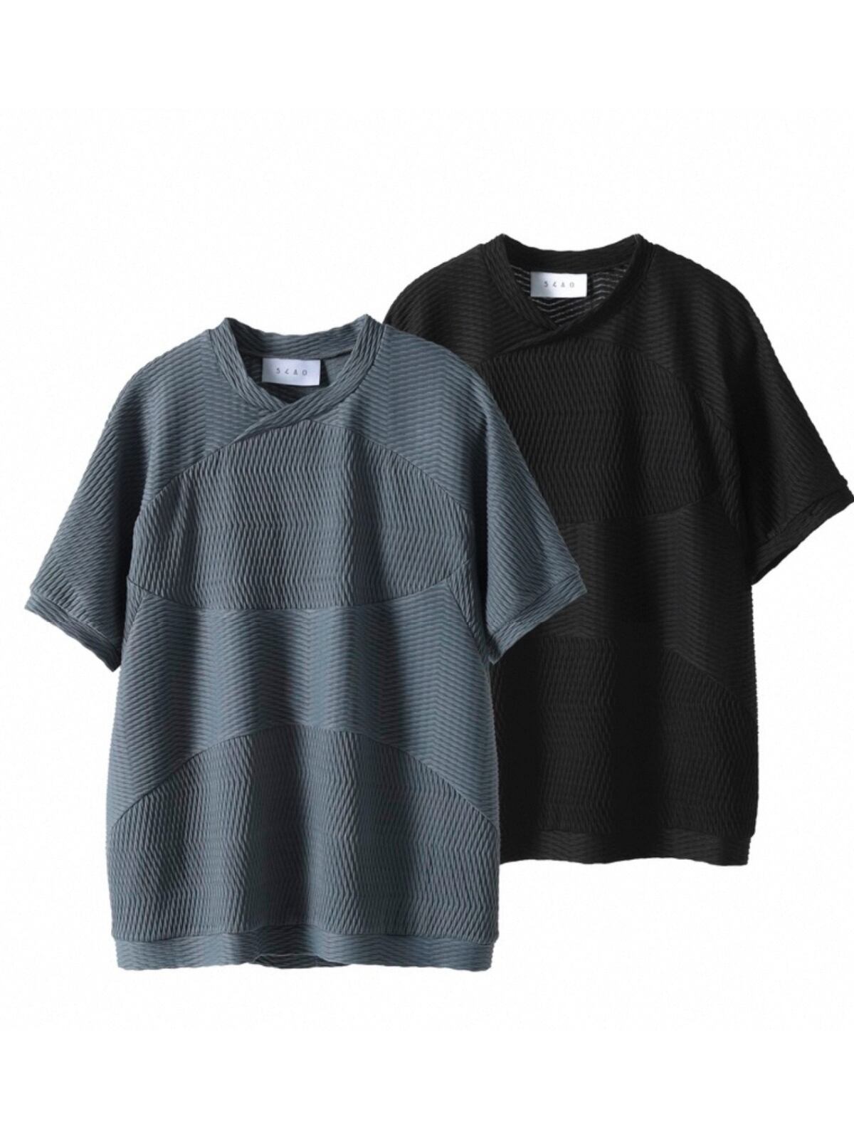 ■ 商品の特徴 波状にカットされたパターンと、首元の交差するようなデザインが特徴的なTシャツ。 ゆったりとしたボックスシルエットと短い身丈で、身体のラインを美しく見せ、バランスの取れた着こなしを演出。 波のような切り替えデザインと複数の生地を組み合わせることで、動きのある視覚的な効果を生み出し、シンプルながらも個性を際立たせる一枚。 ■ カラー ブラック / グレー ■ モデル 身長:183cm / 体重:62kg / 着用サイズ:M ■ S 着丈:60.5cm / 裄丈:34.4cm / 胸囲:104cm ■ M 着丈:62.5cm / 裄丈:35.2cm / 胸囲:108cm ■ L 着丈:64.5cm / 裄丈:36.1cm / 胸囲:112cm ■ 素材 92% テリレン / 8% スパンデックス ■ 発送・注文に関する情報 ご注文から商品到着まで、最短で7〜8日 / 通常10〜14日ほどお時間をいただいております。 ご購入前に ※SHOPPING GUIDE※ を必ずご確認ください。 ■ 追跡番号について 追跡番号は、商品が国内発送手続きに入った際にご案内いたします。 ご注文直後には追跡番号が発行されませんので、あらかじめご了承ください。 ご不明点がございましたら、いつでもお気軽にお問い合わせください。 ■ 商品に関するご注意 サイズ選びにご不安な場合は、サイズガイドをご参照ください。 撮影環境やモニターによって、実際の色味が異なることがあります。 (※商品は手作業で測定されており、2〜3cmの誤差がある場合があります。あくまで参考としてください。)
