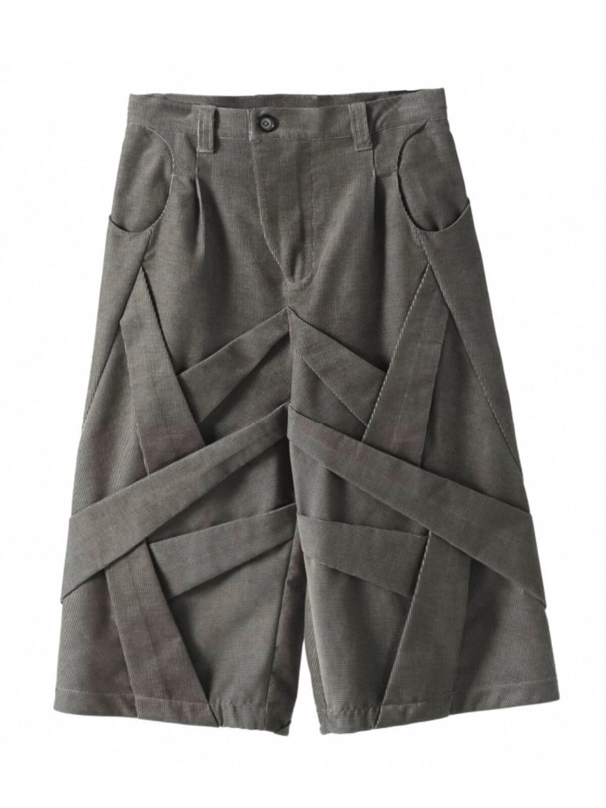 幾何学的なカッティングと複雑に折り重ねられたデザインが特徴的なパンツ。