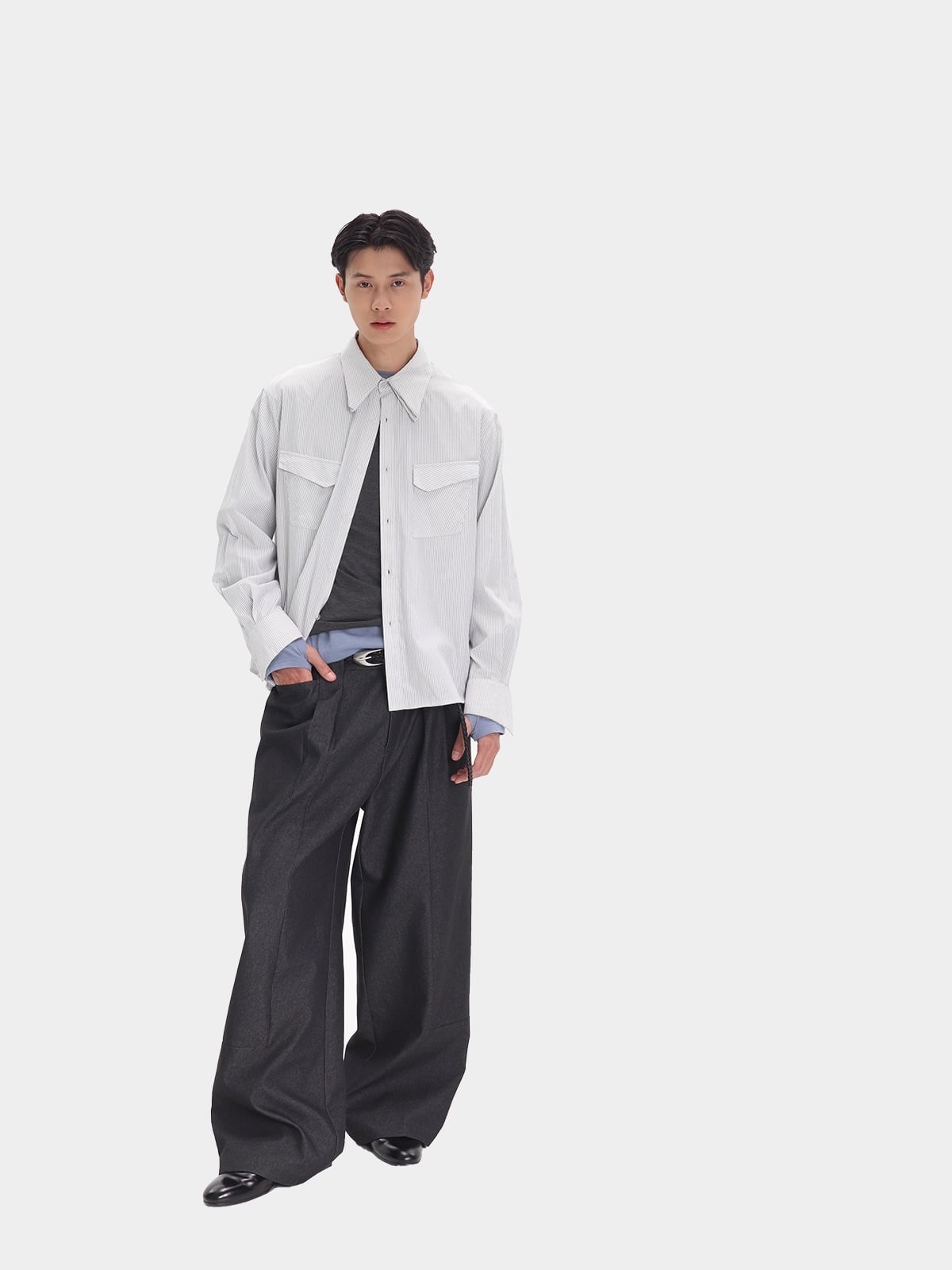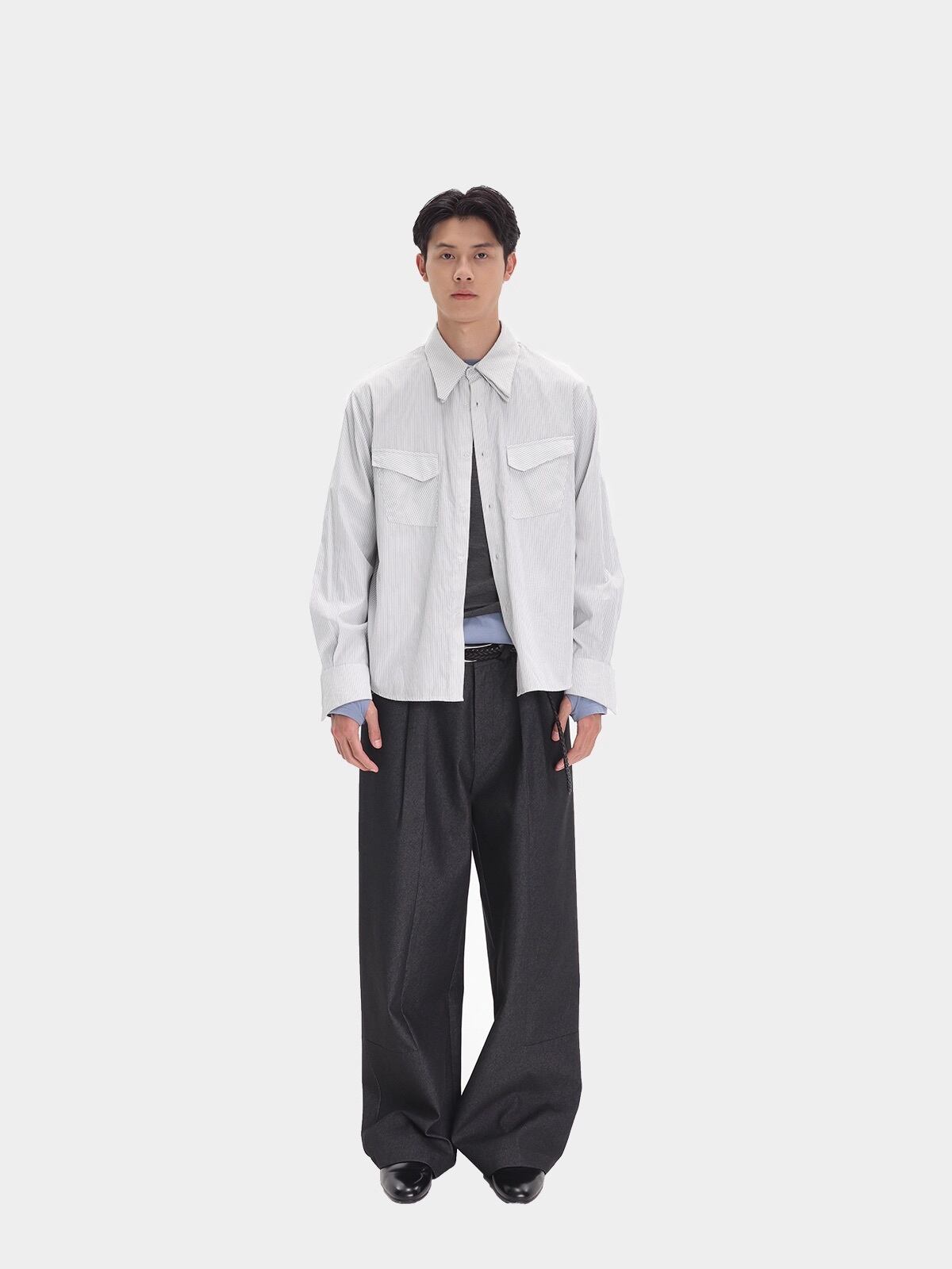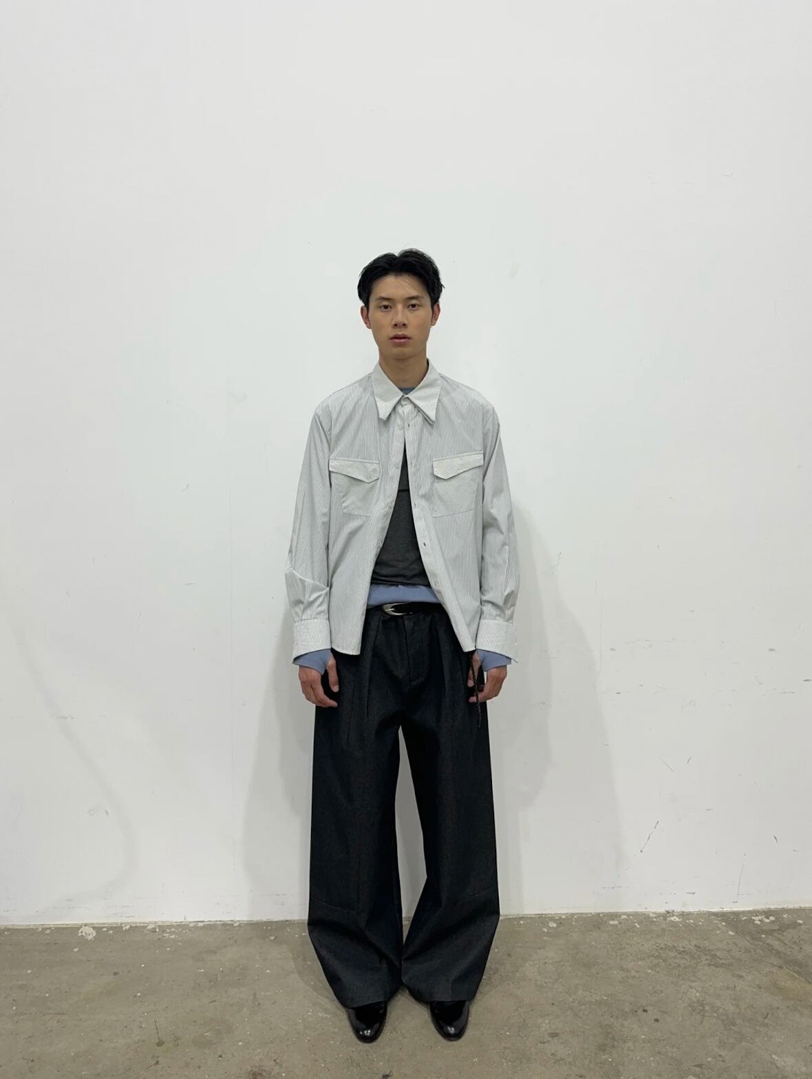 Nothingnoth 25AW Paper Collar Striped Shirt