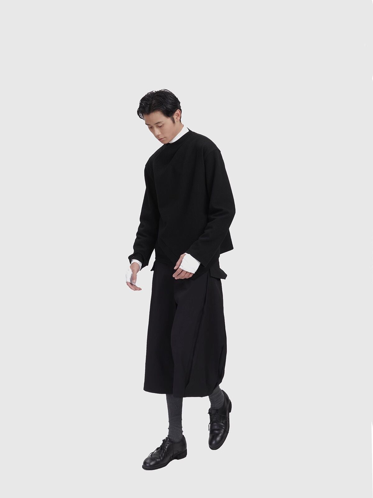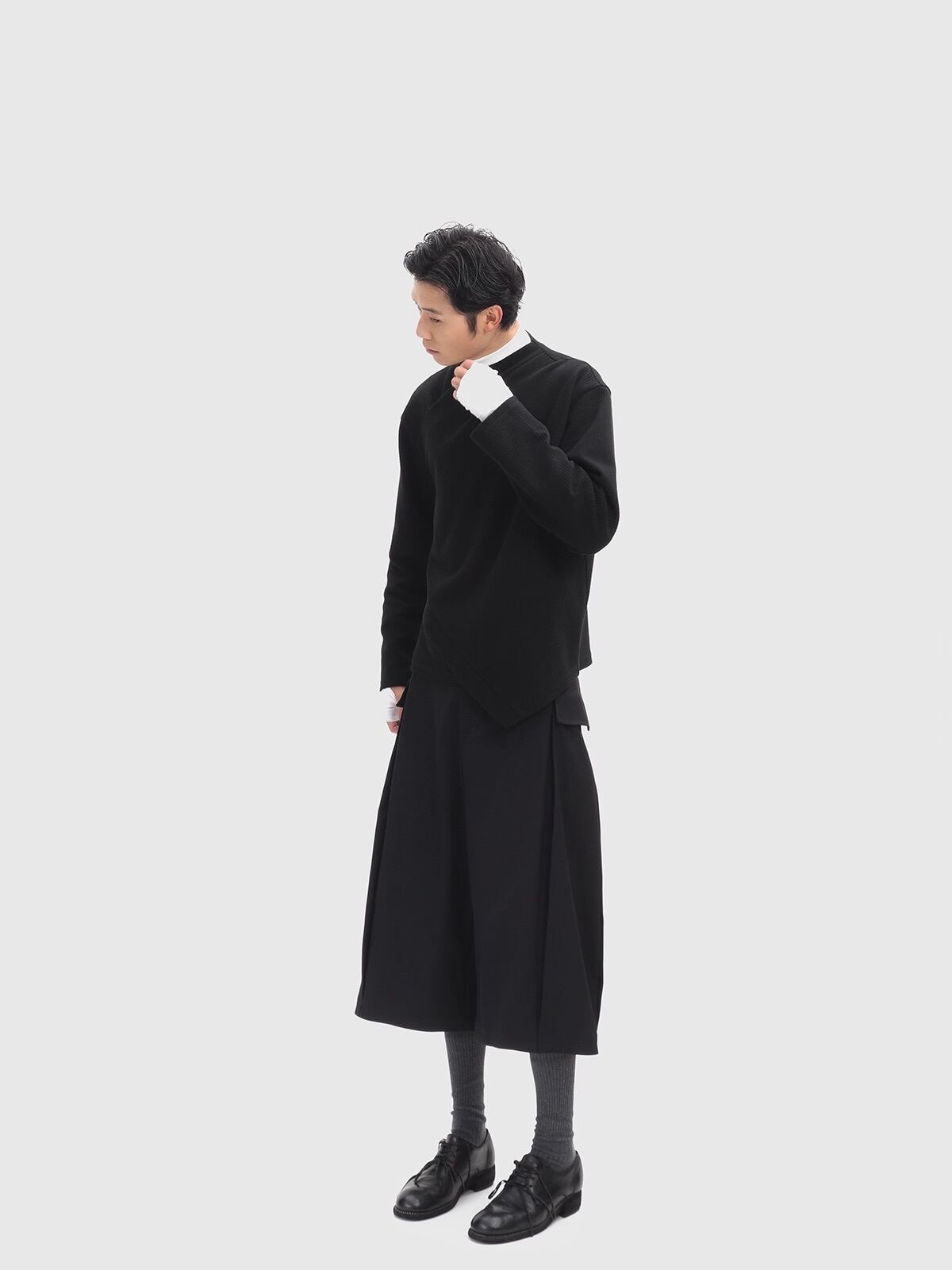 裾は前後の長さが異なるアシンメトリーなヘムラインで、動きのあるレイヤードスタイルを演出。シンプルな中にも個性とスタイルが光る一枚。