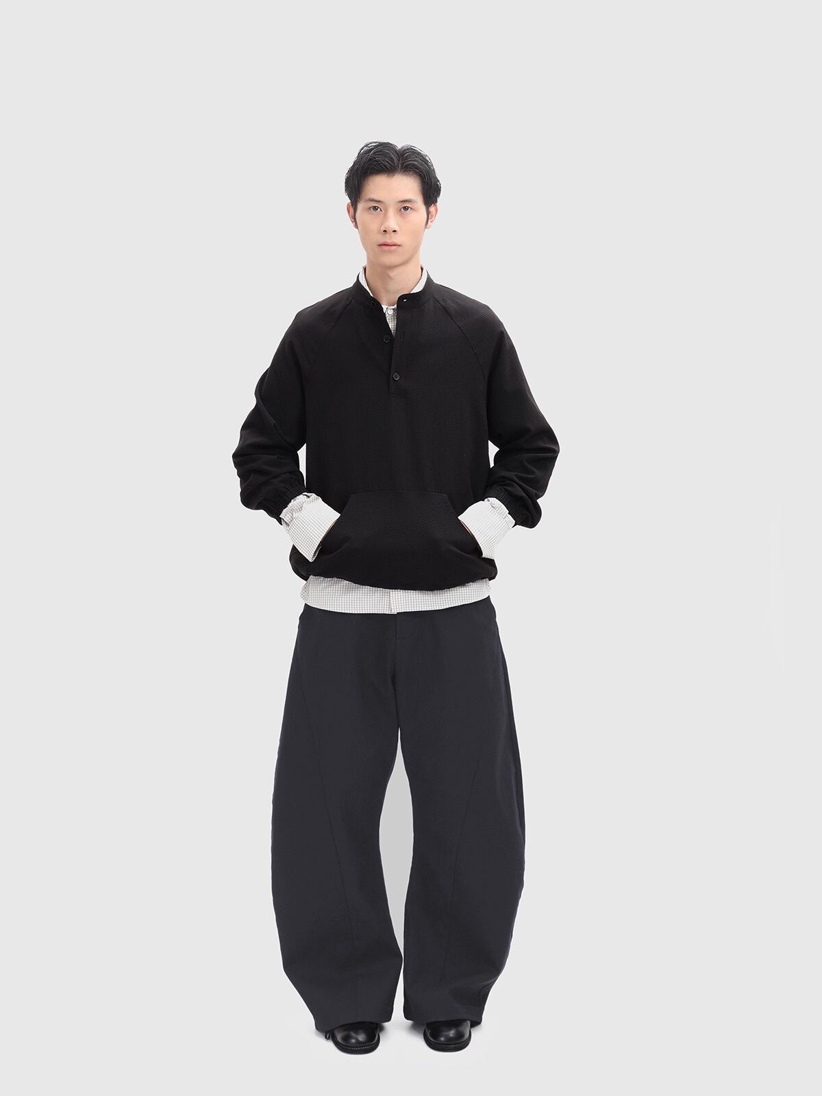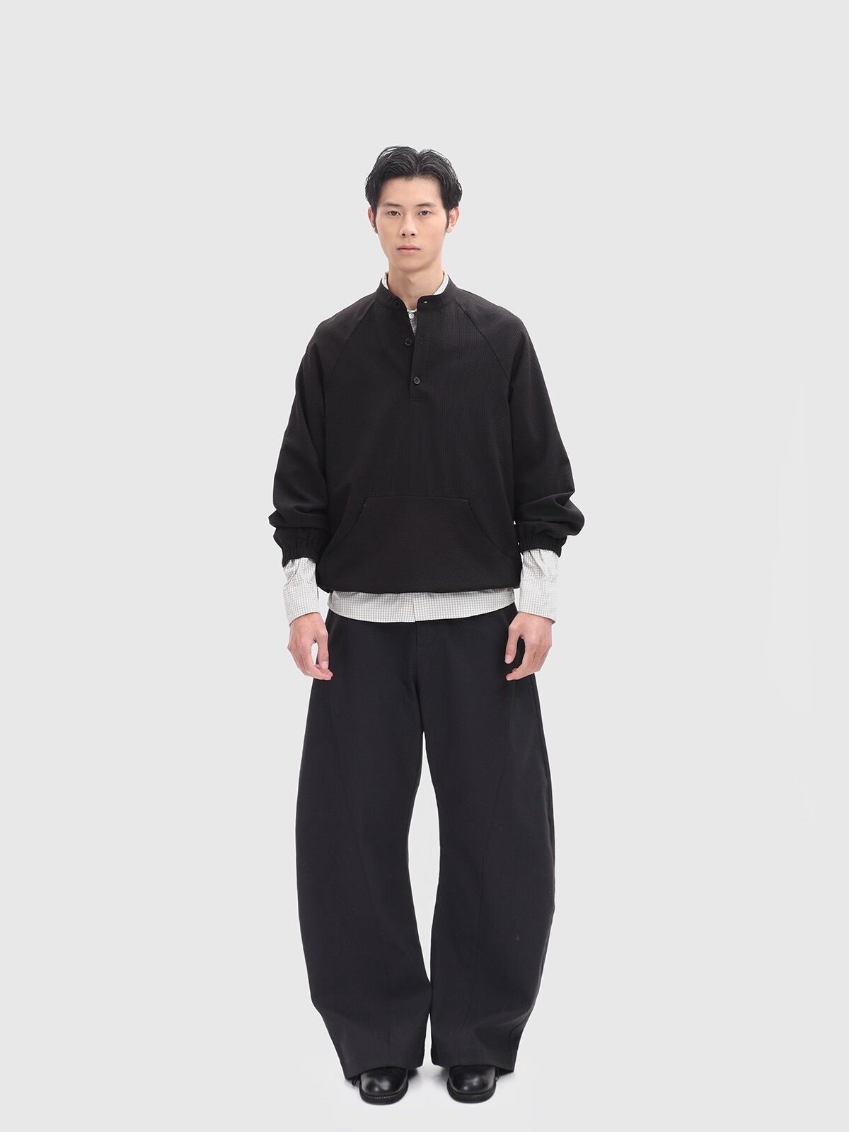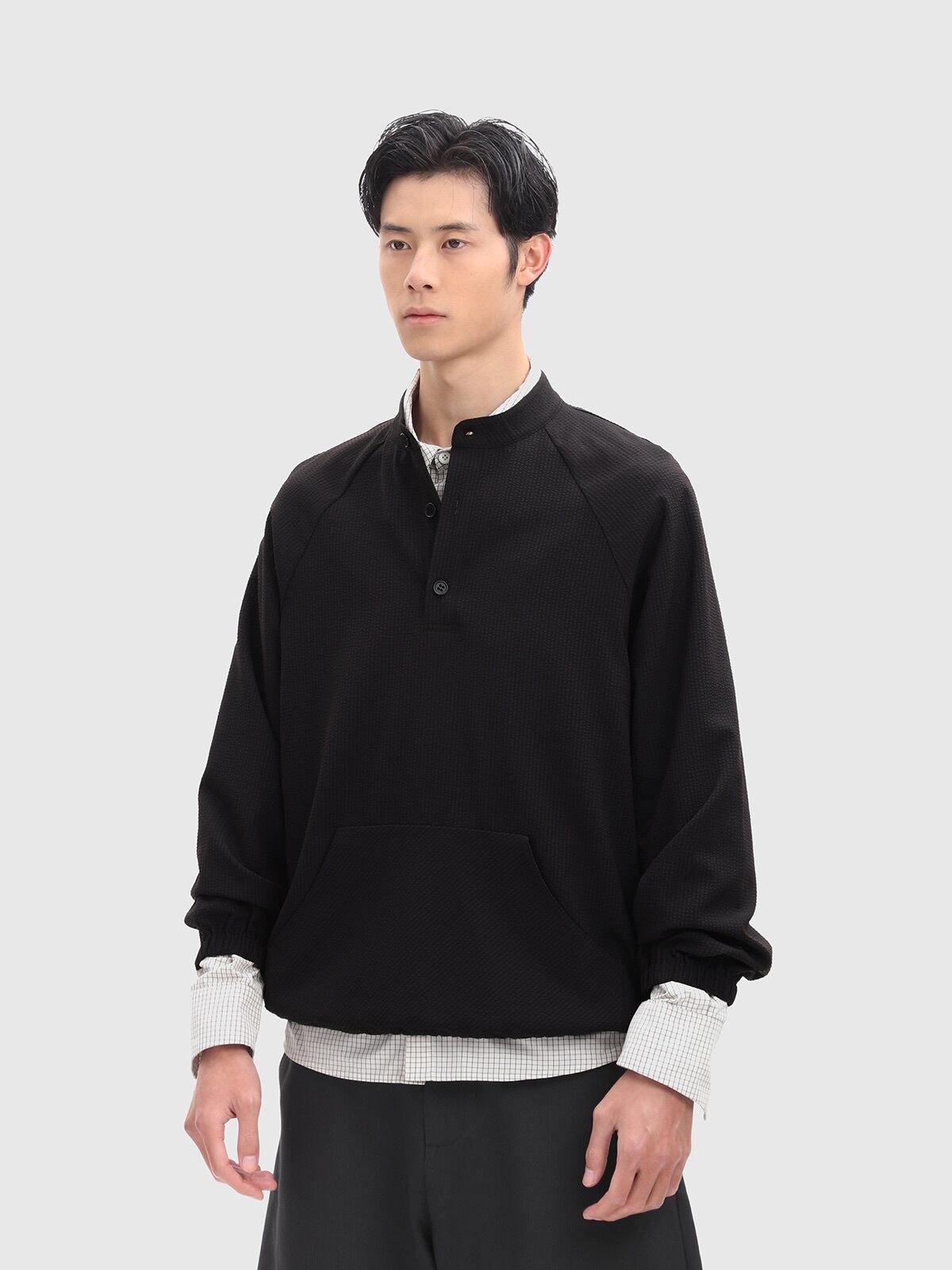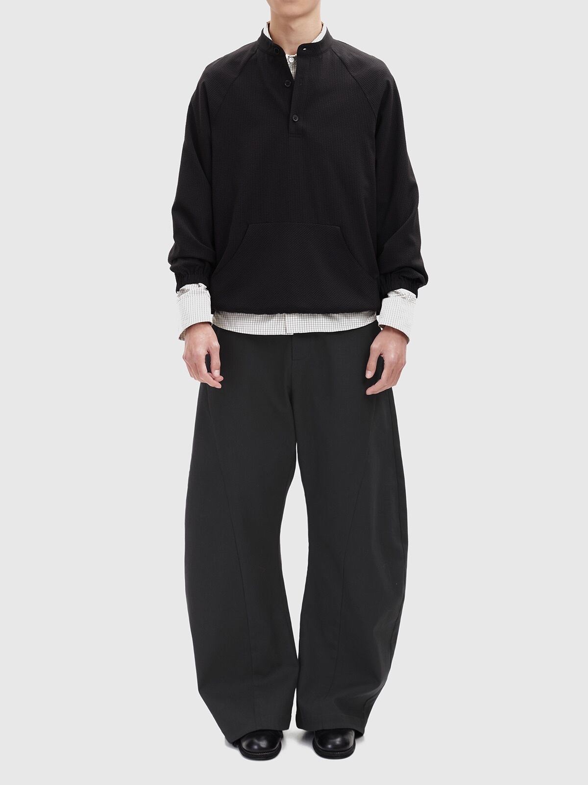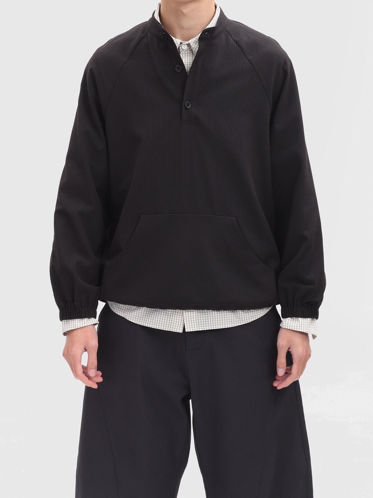 ユニークな凹凸感を持つバブル生地を使用したプルオーバーシャツ。