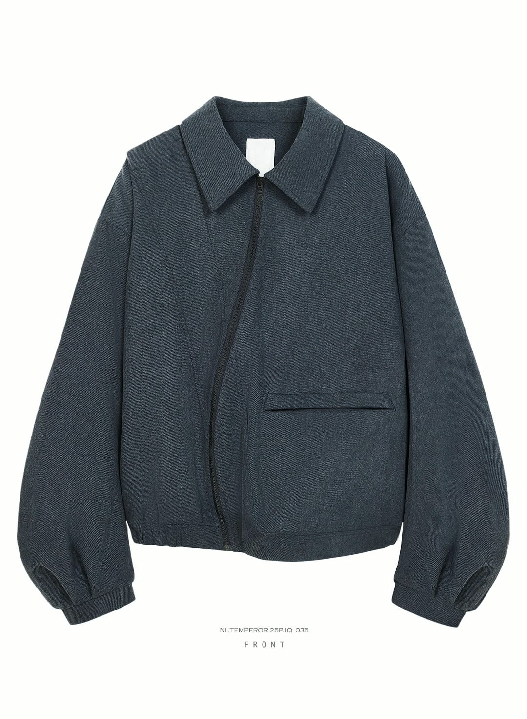 ラフな質感の厚手ウール混紡生地を使用した、ショート丈のブルゾン。