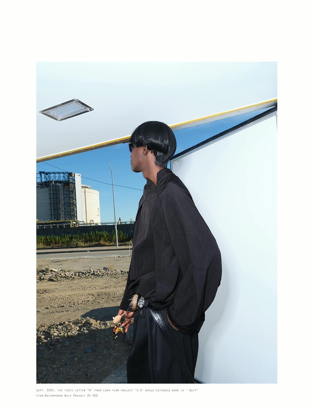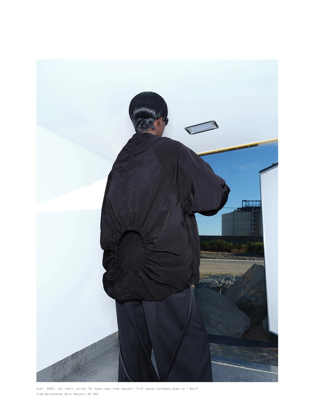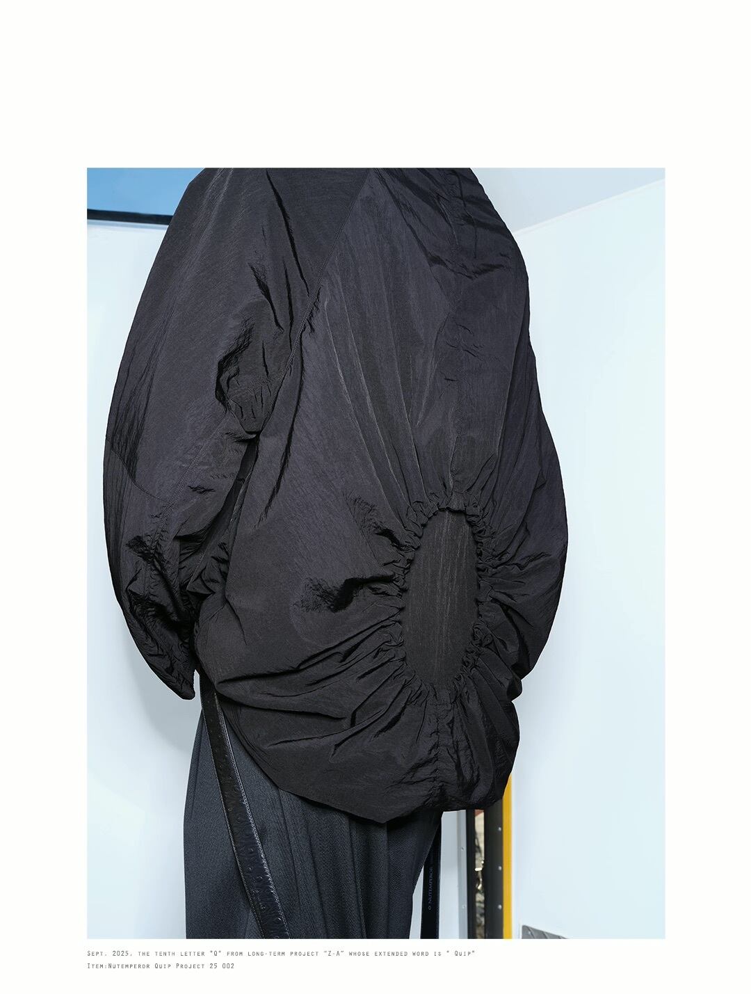 ゆったりとしたオーバーサイズのシルエットと、ポリエステル・ナイロン混紡のしなやかな生地が、ドレープ感のあるモードなスタイルを演出します。