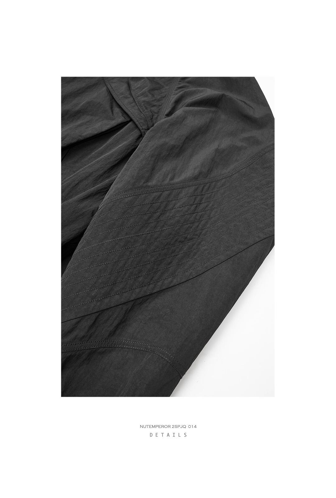 背中側に配されたドローストリングを絞ることで、シルエットに変化をつけ、独創的なスタイルを演出。