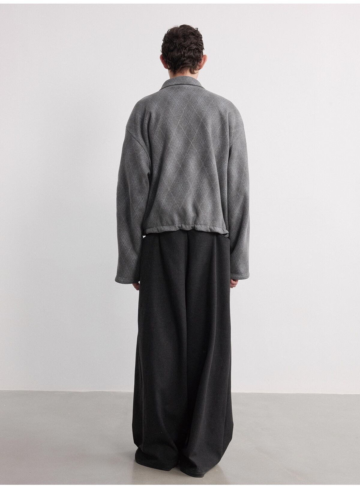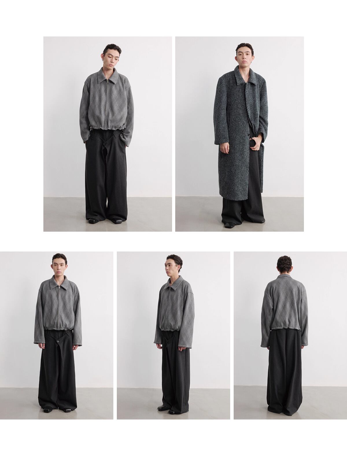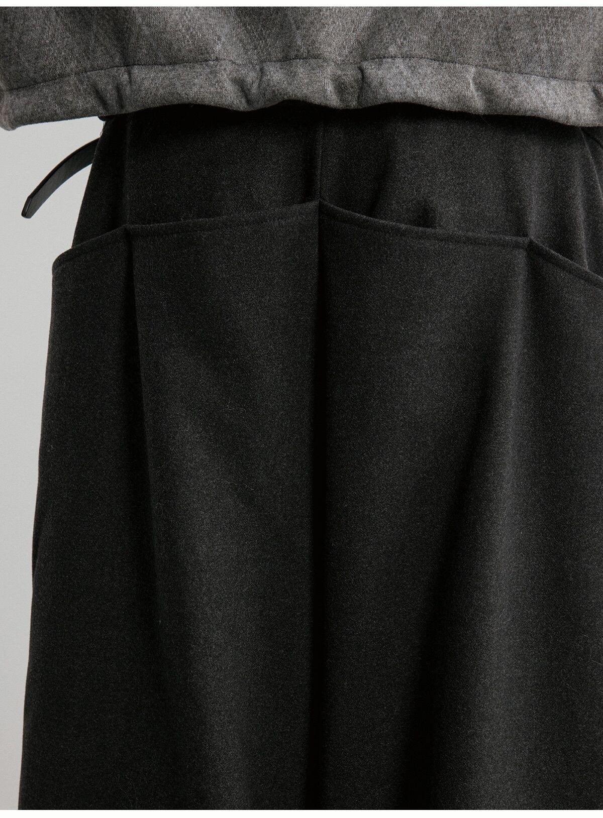 ウエスト部分に施された二重のダブルウエストデザインと、裾に向かって広がるワイドストレートシルエットが、着用時にスカートのようなダイナミックなボリューム感を演出。