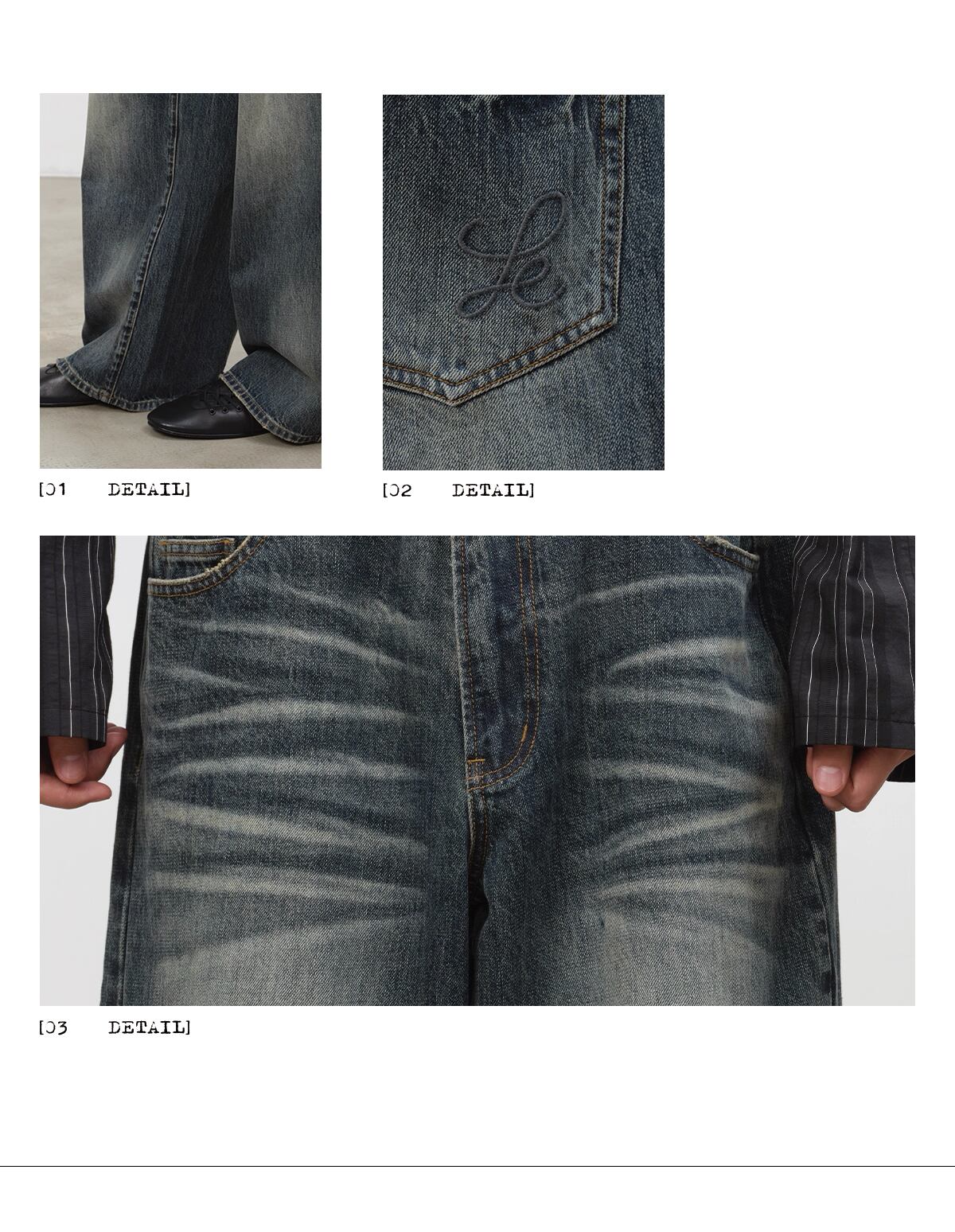特別なヴィンテージウォッシュ加工と泥染めのような加工を施すことで、独特な風合いと色落ち感を表現。