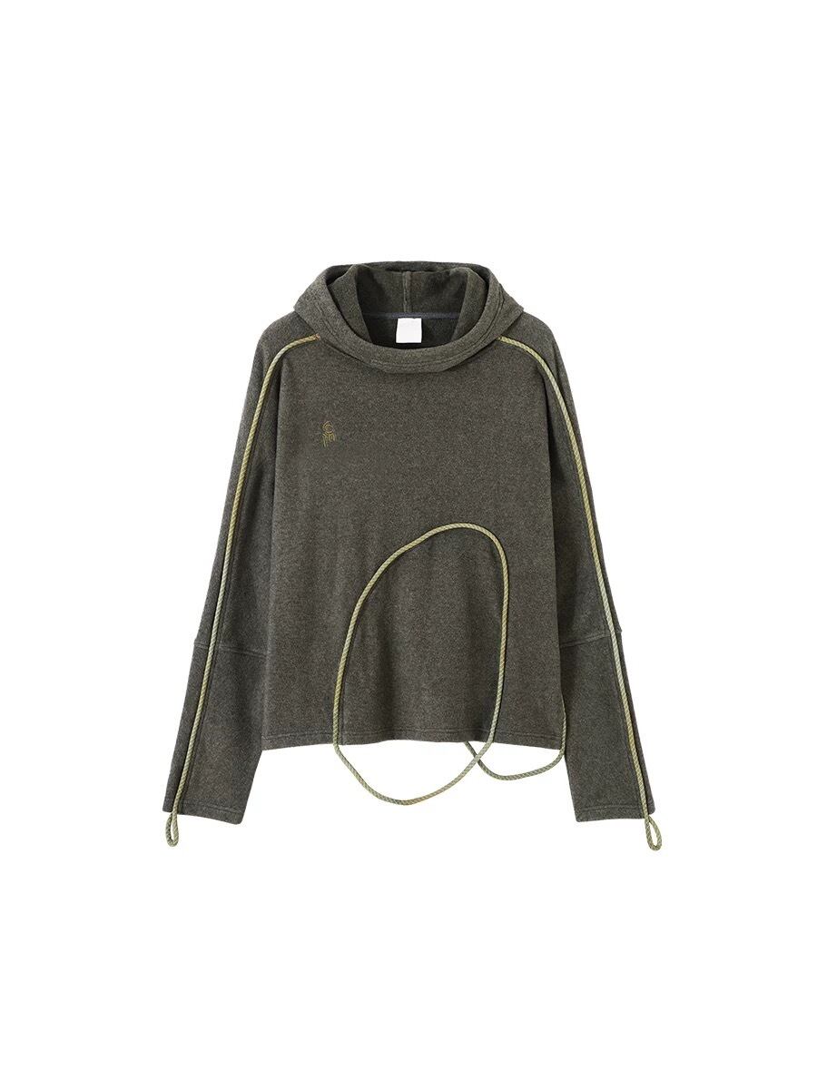 フードから襟元にかけて配されたドローストリング(絞り紐)や、大きなラウンドポケットが、アヴァンギャルドでスポーティーなスタイルを構築します。