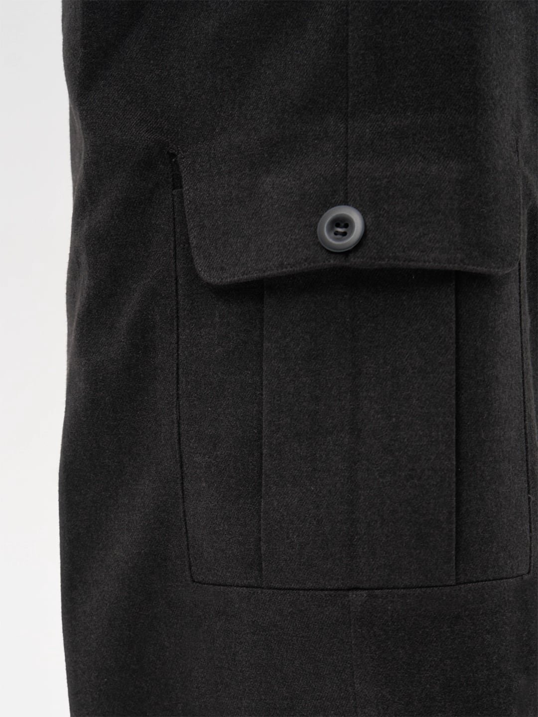 サイドのポケットデザインは、後ろ身頃から一枚の布地で切り替えられ、ワークウェアの要素を洗練されたスタイルに融合。