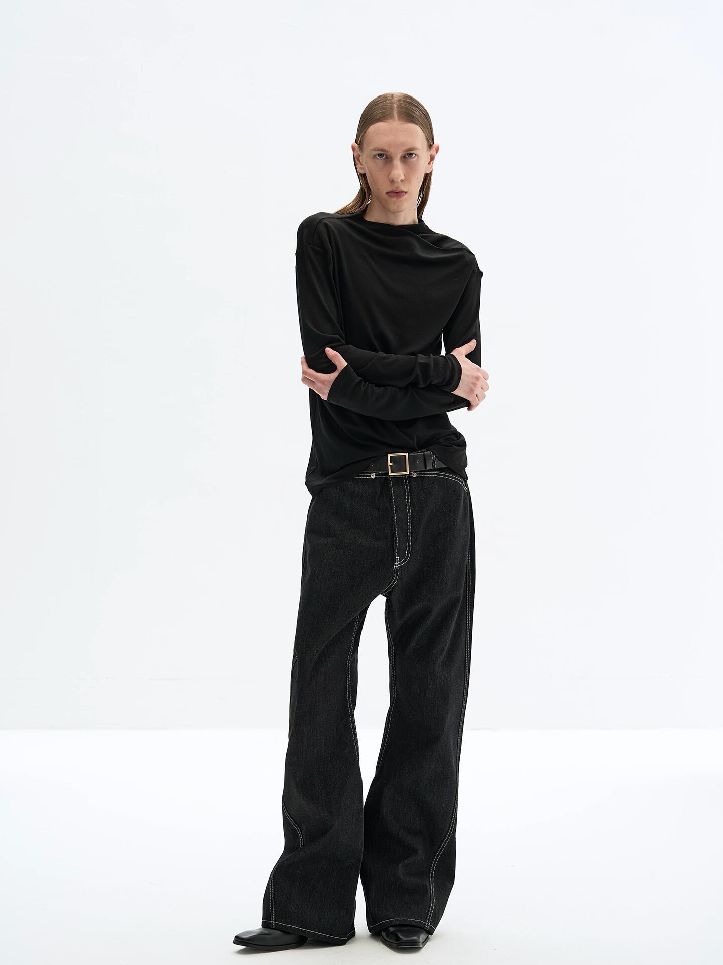 身体に沿うスリムなシルエットと長めの袖丈が、洗練されたスタイルを演出します。