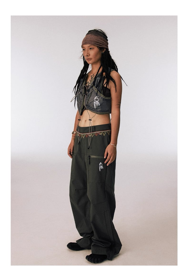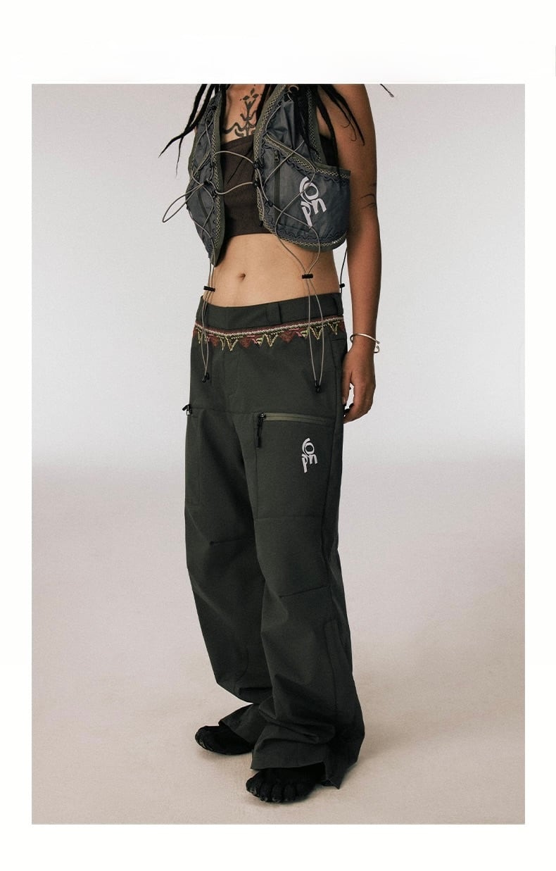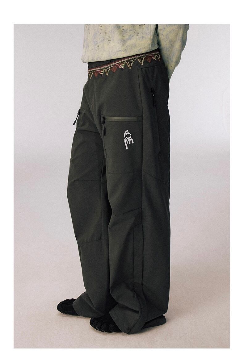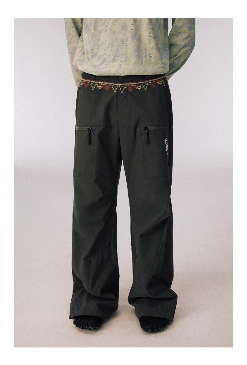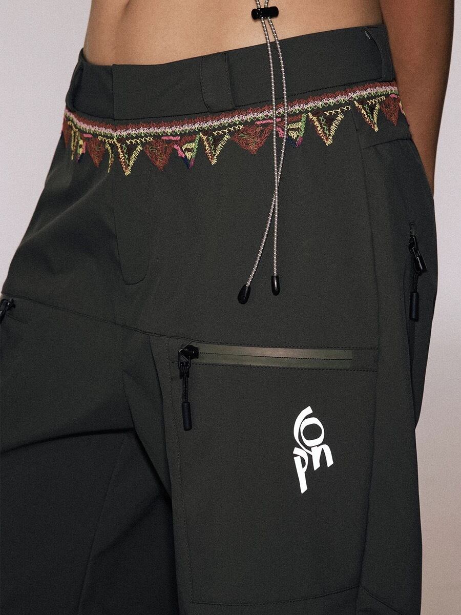 防水機能を備えたタフな素材と、刺繍が施されたウエストバンドのディテールが、オリジナリティとクラフトマンシップを表現。