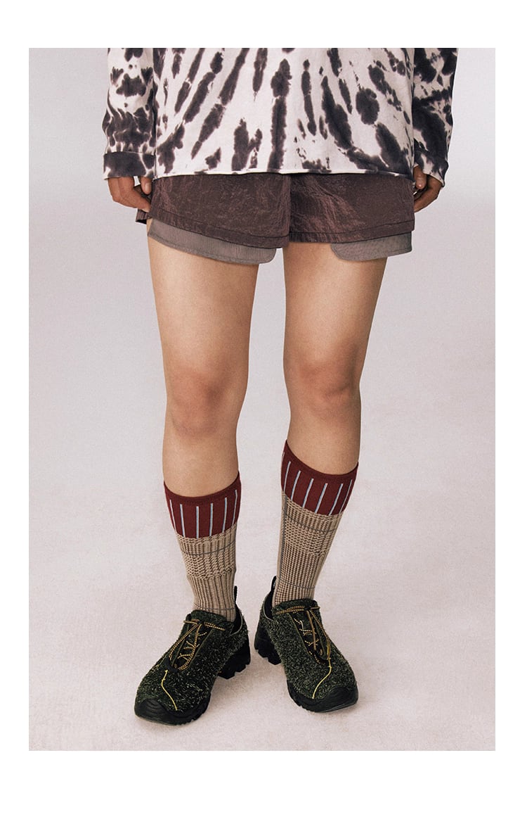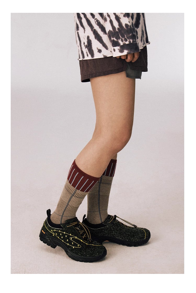 ラウンドトゥとシューレースで締め上げるクラシカルな構造をベースに、アッパーには独特の織りや素材感を施すことで、単なるカジュアルシューズとは一線を画すアーバン・アウトドアなスタイルを確立。