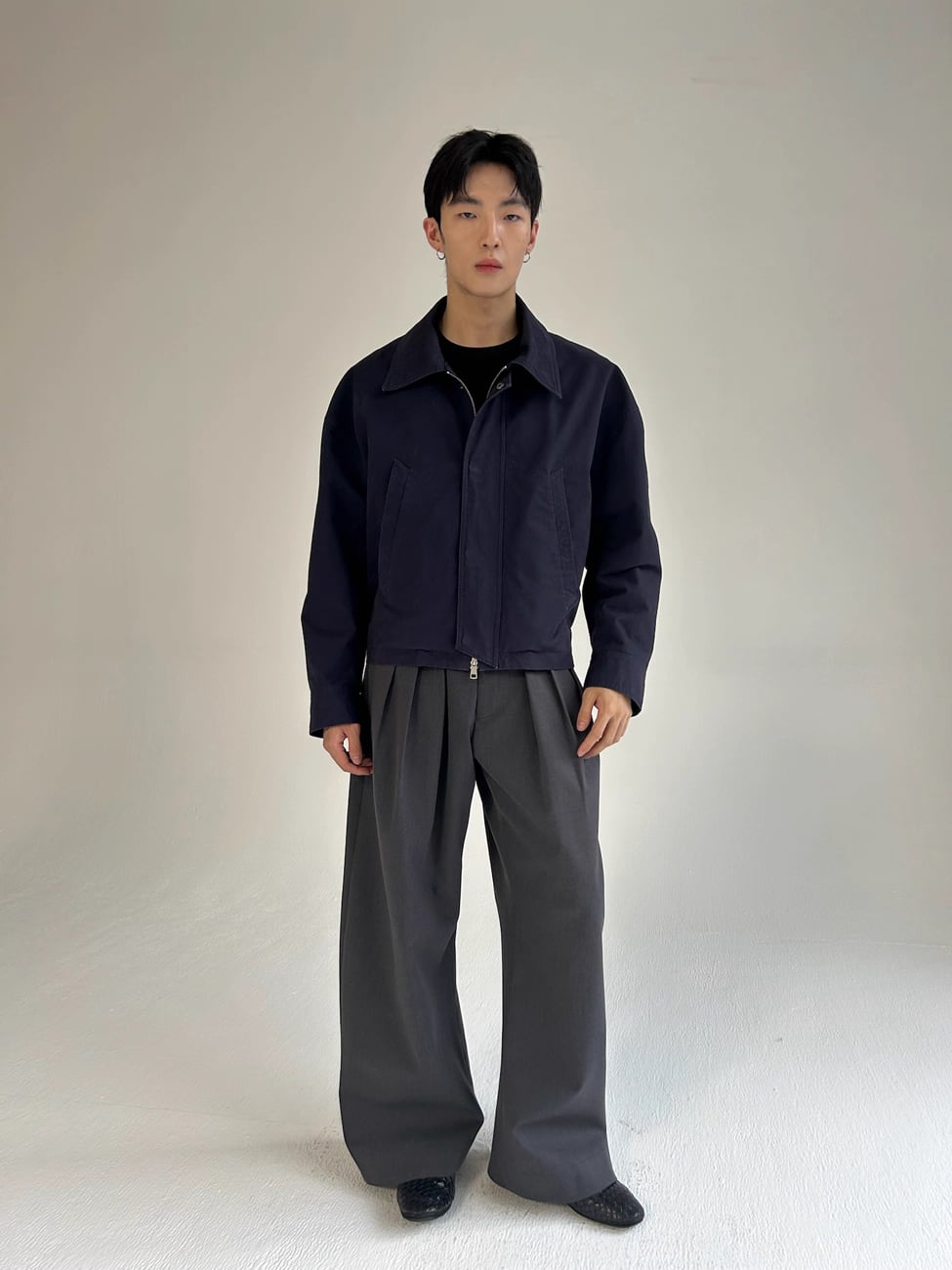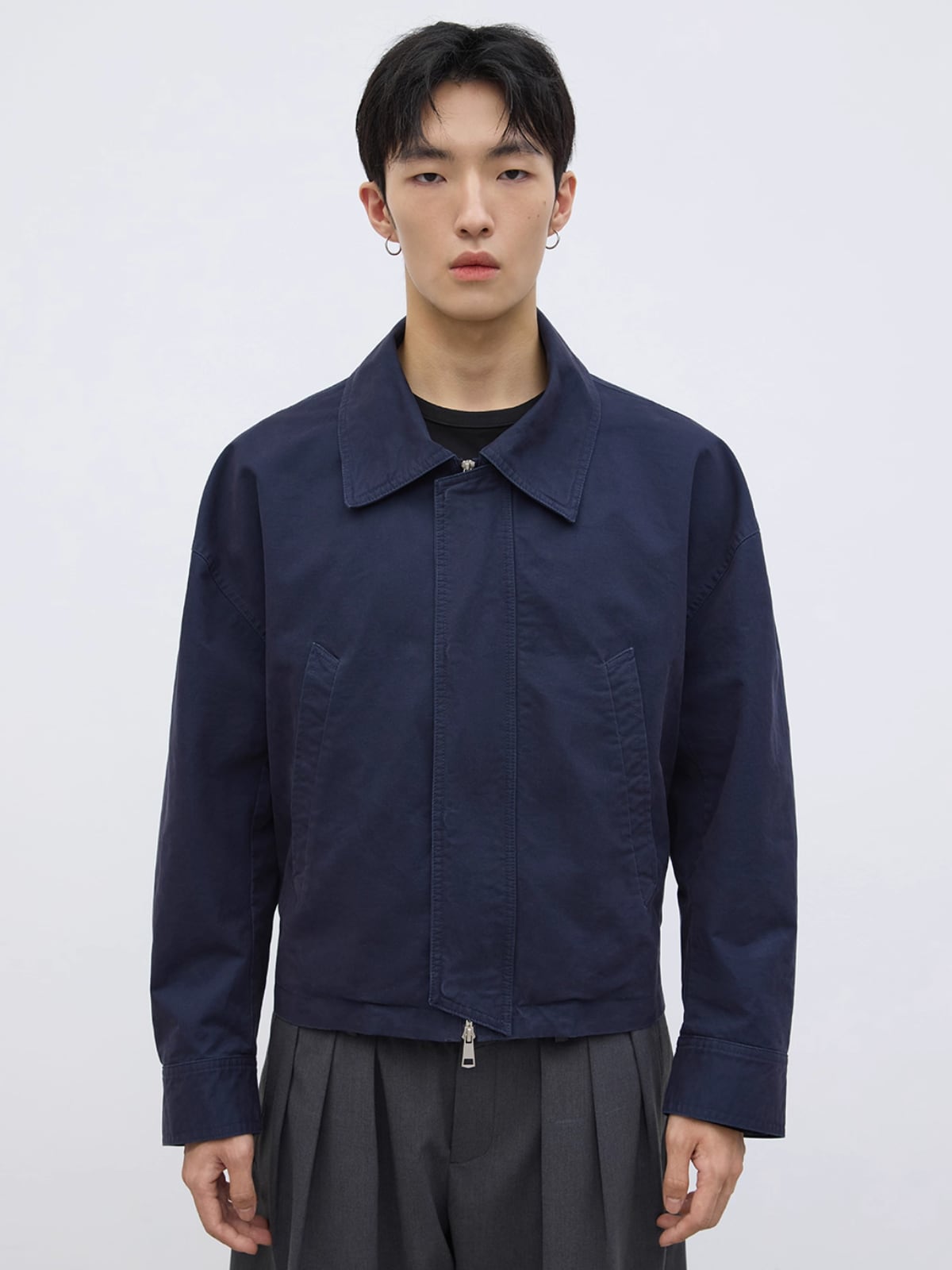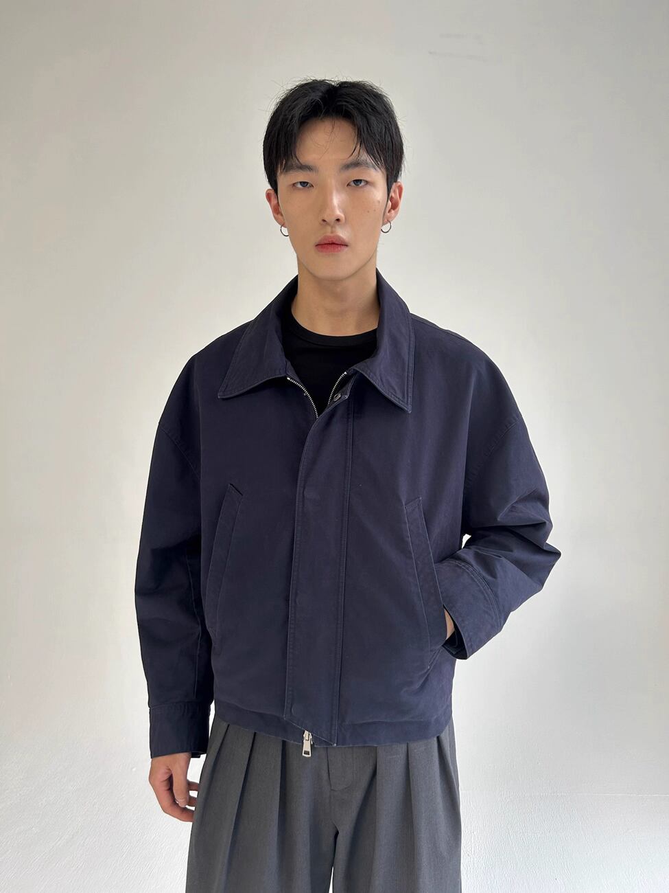 短めの丈とゆったりとしたドロップショルダーのシルエットが、着るだけで洗練されたバランスを構築します。