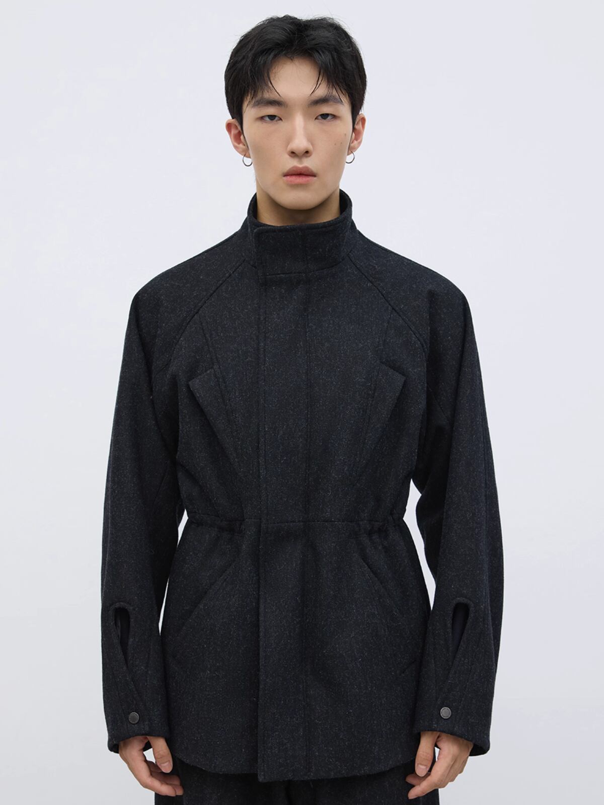 厚手のウール混紡フリース生地を使用し、保温性に優れたミドル丈のジャケット。