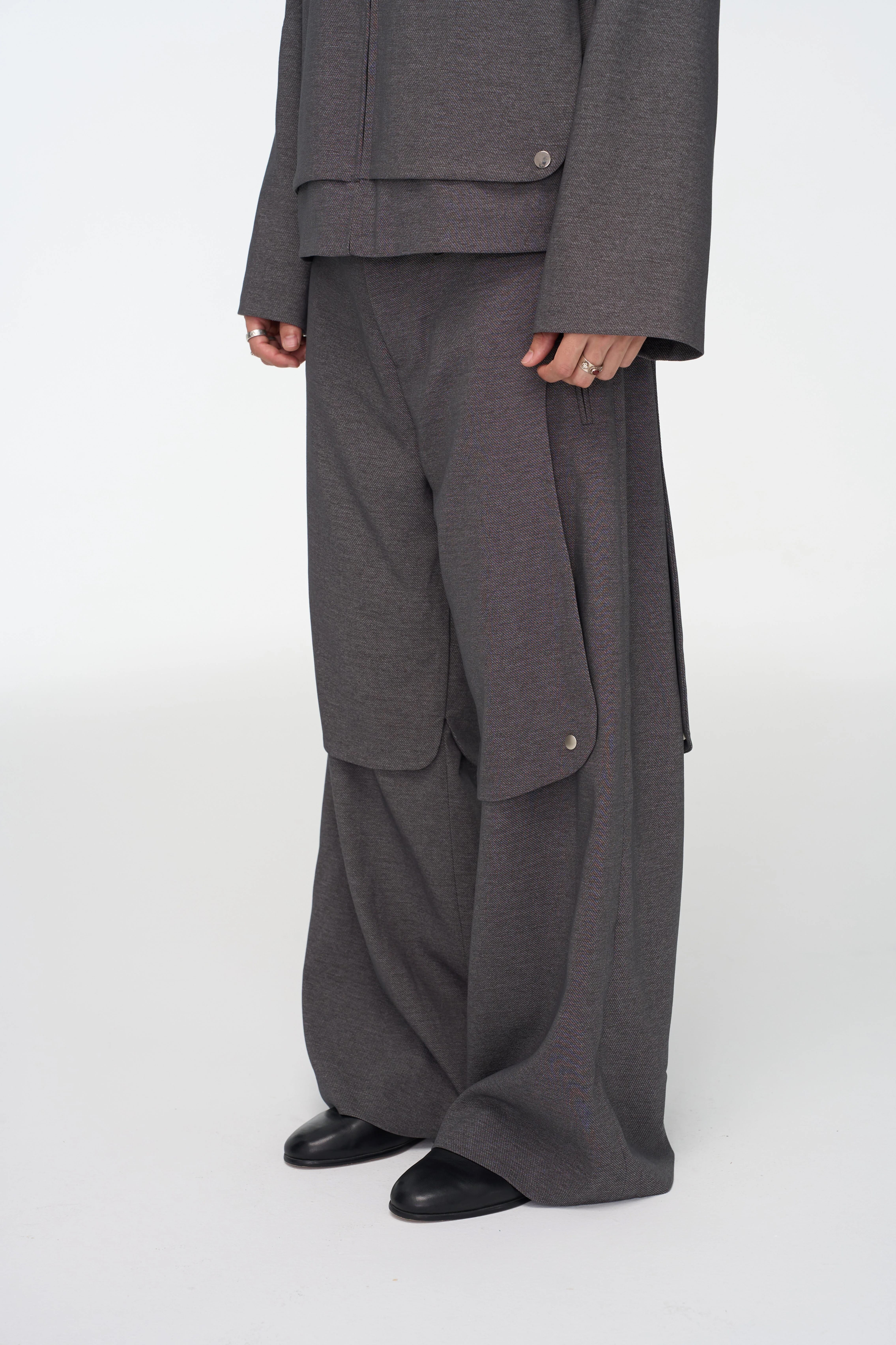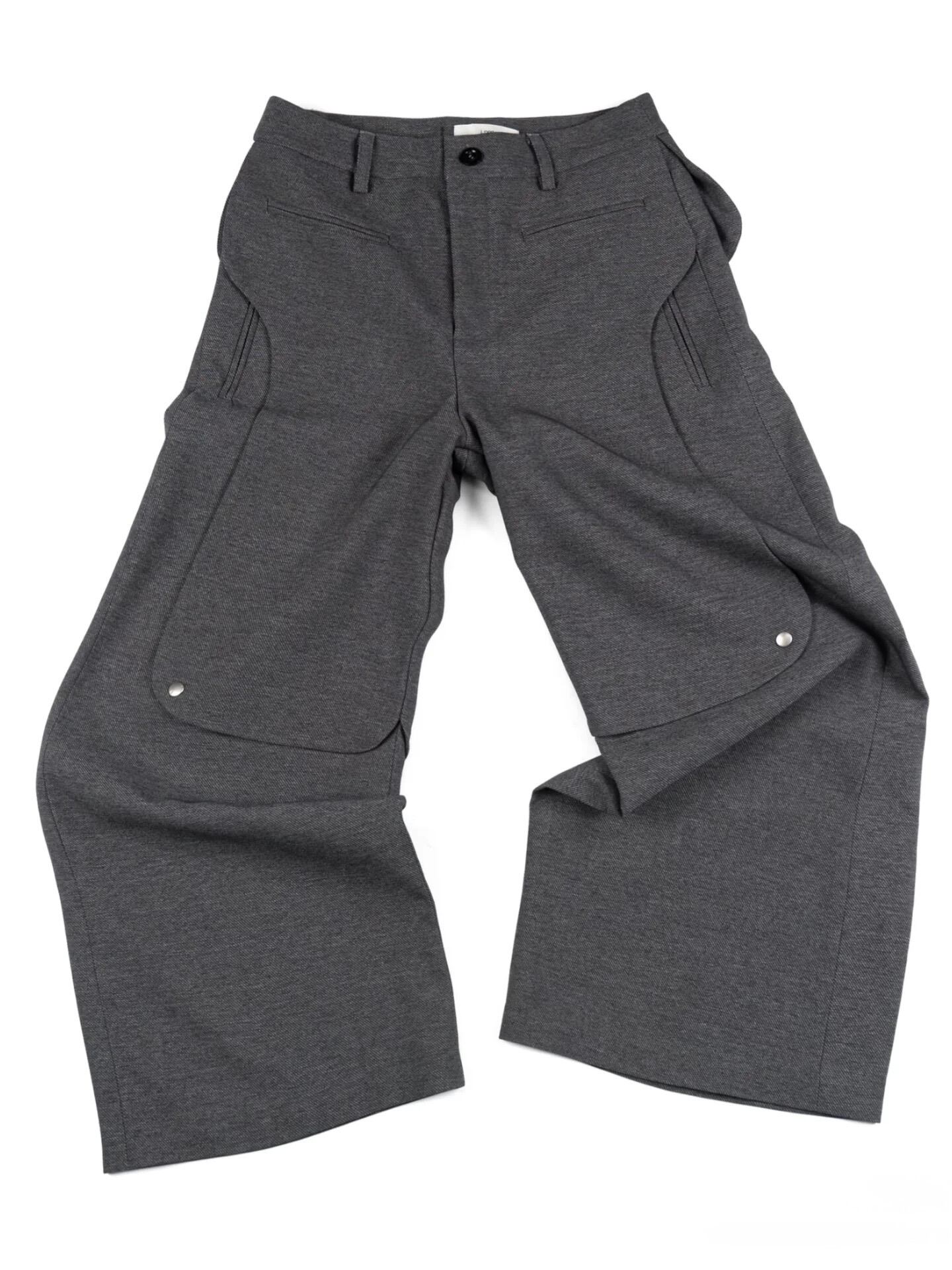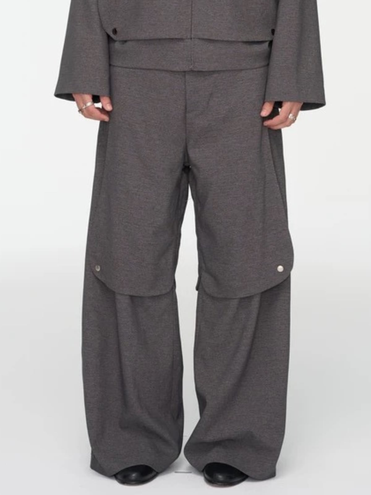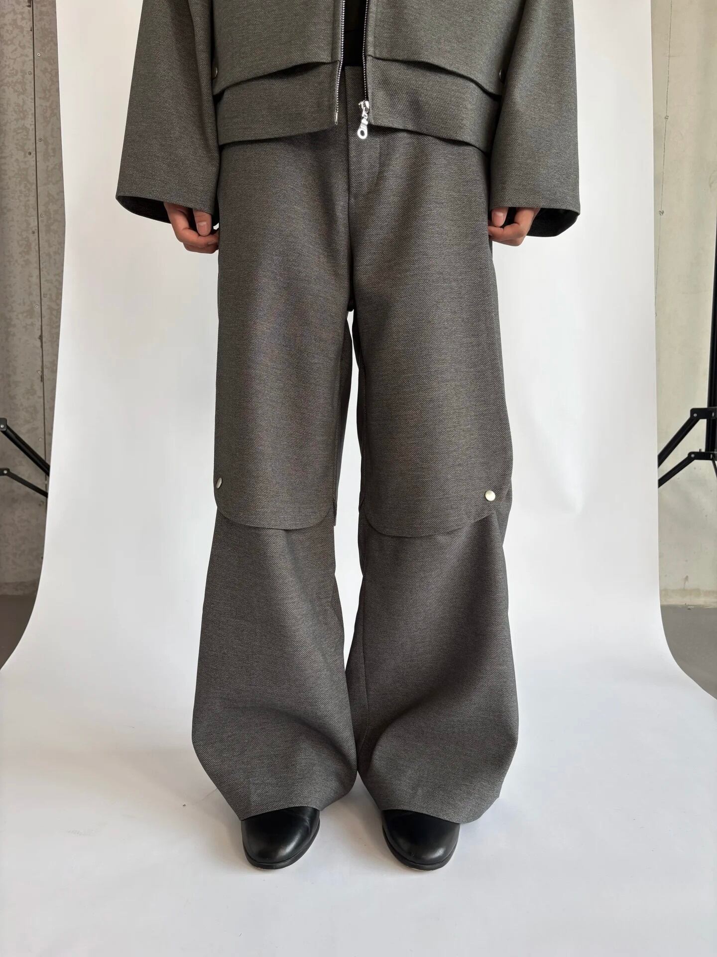 これにより、着用時に他にはない彫刻的なボリュームと造形美を生み出し、普通のワイドパンツにはないハイエンドな存在感を放ちます。