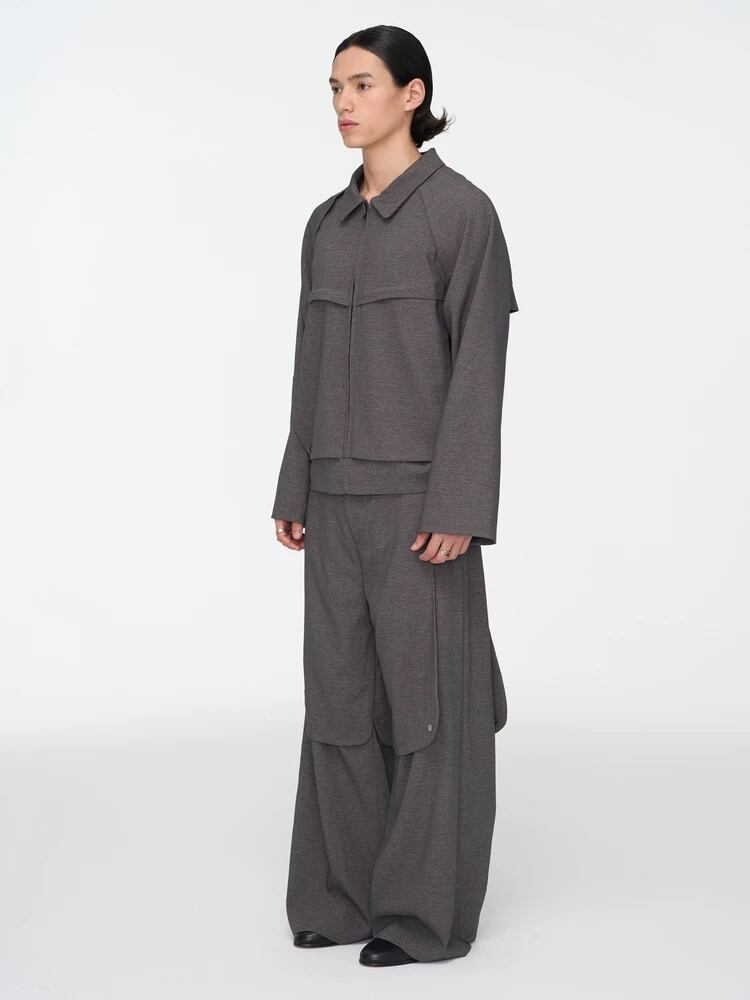 複雑なカッティング構造ながら、計算されたルーズフィットにより着回しやすく、日常のスタイリングを格上げする、ファッション感度の高い層に向けた一本です。