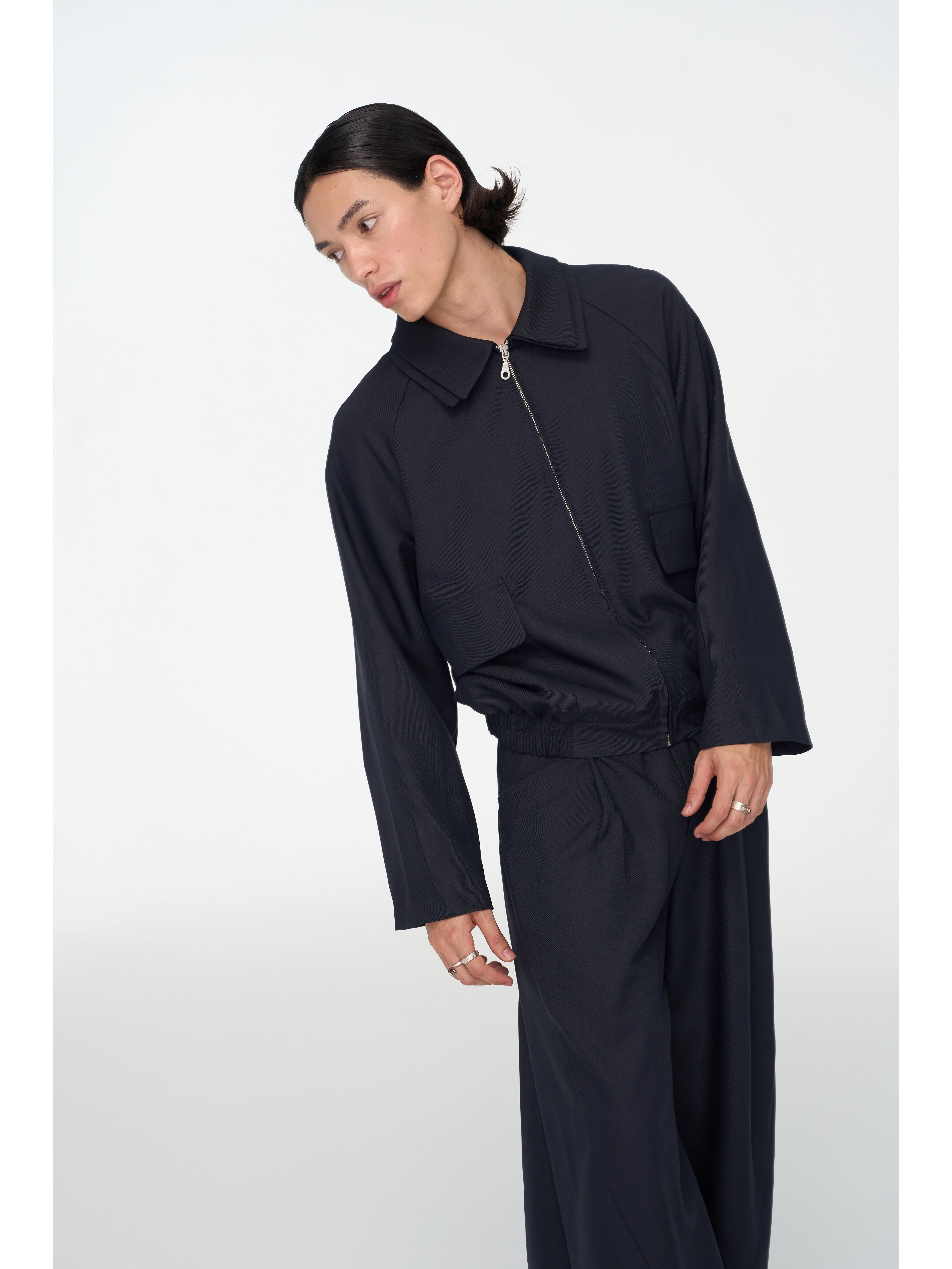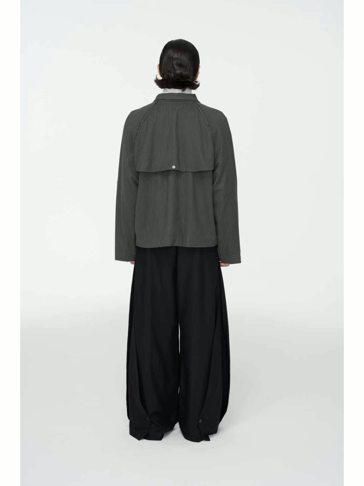 広がるストレートシルエットと、計算されたボリューム感がジェンダーレスで洗練されたムードを強調。
