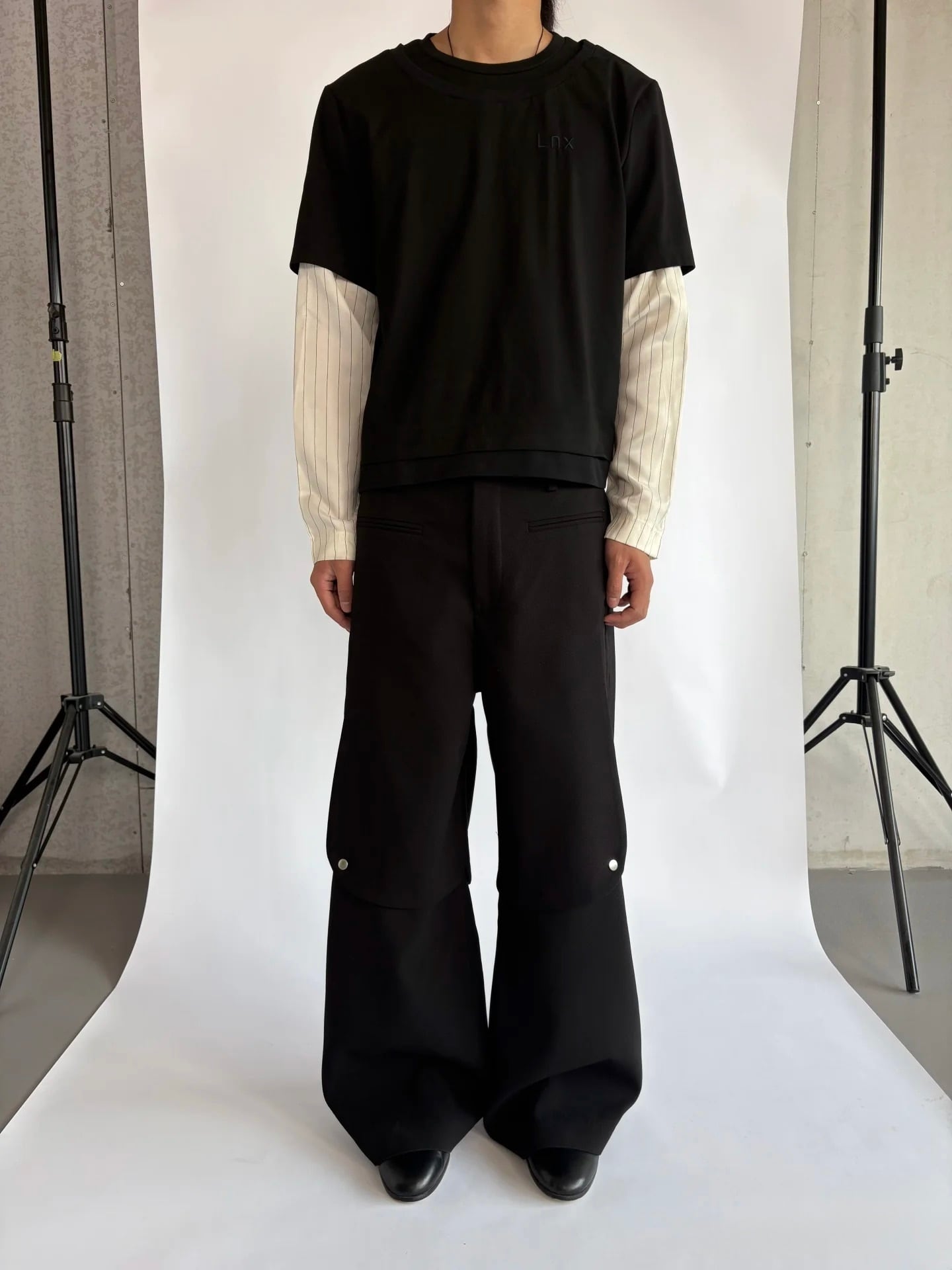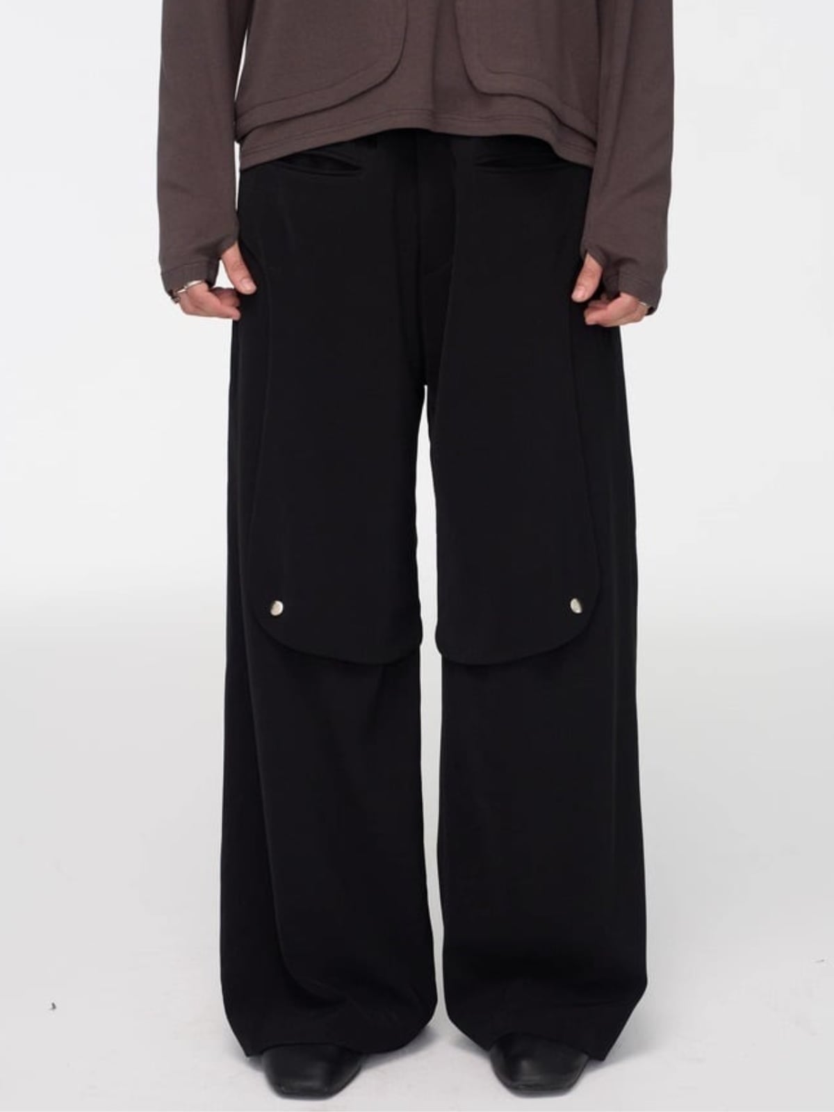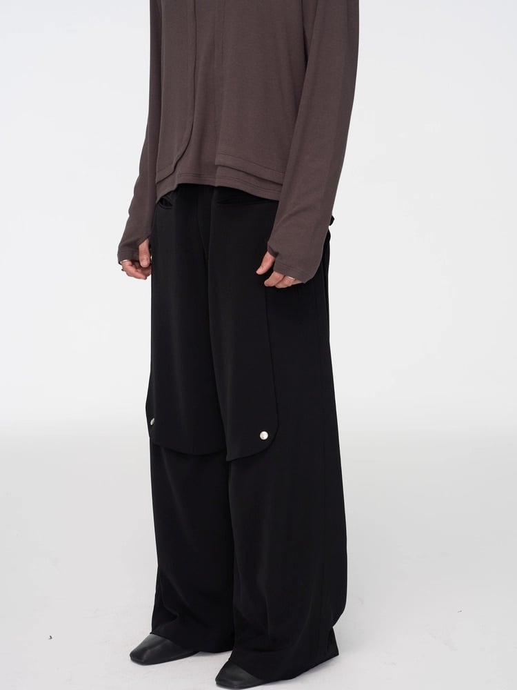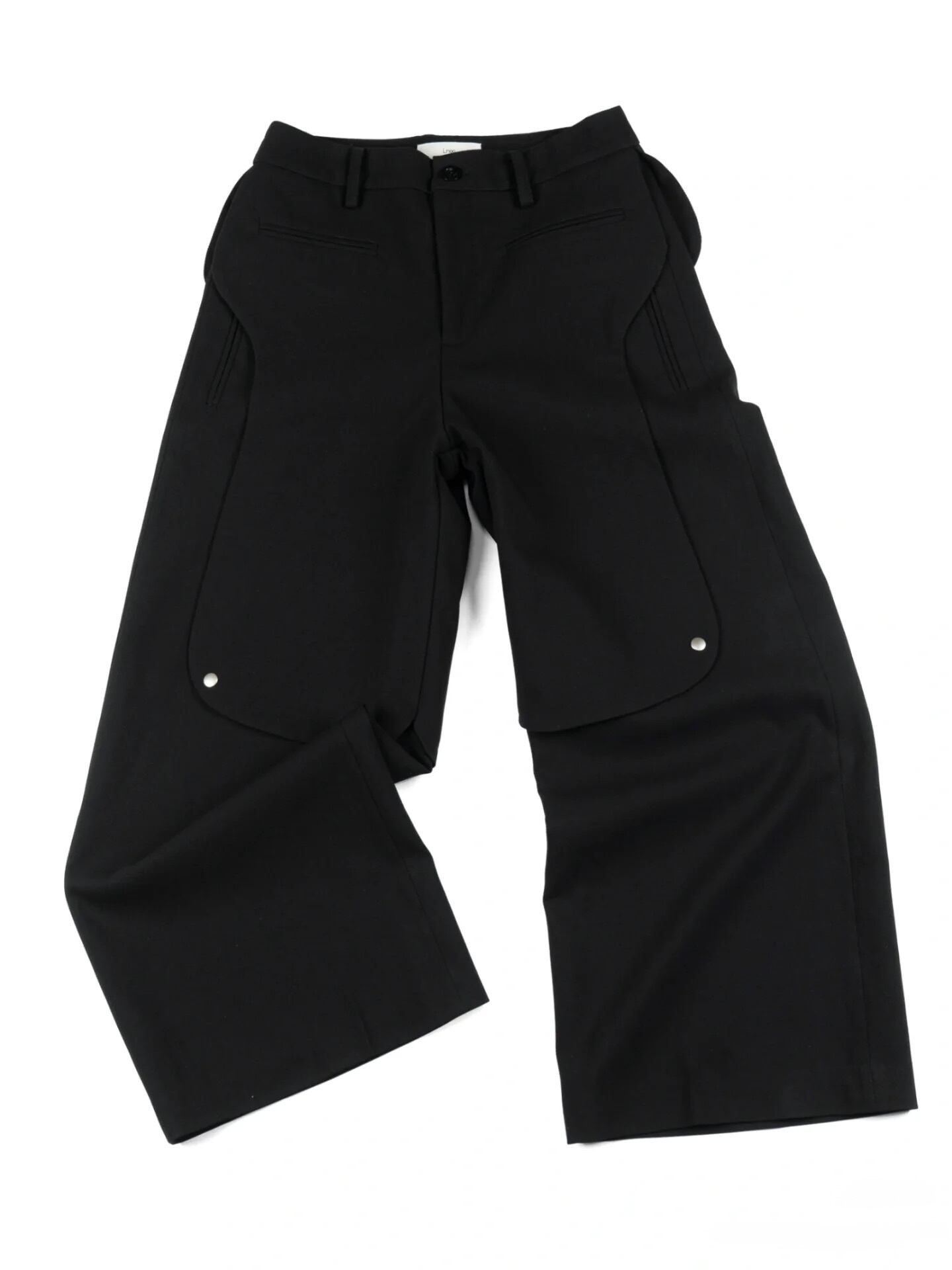 これにより、着用時に他にはない彫刻的なボリュームと造形美を生み出し、普通のワイドパンツにはないモードな存在感を放ちます。