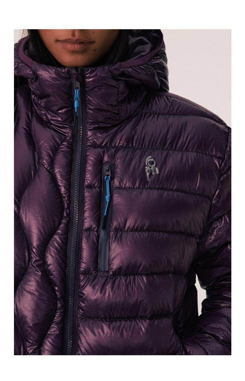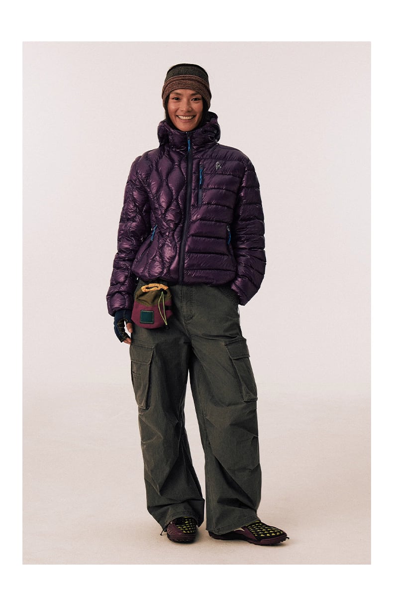 素材には高品質なダックダウン90%を使用し、50〜80gの充填量でしっかりと保温性を確保しつつも、ごわつかない適度な厚みを実現しています。
