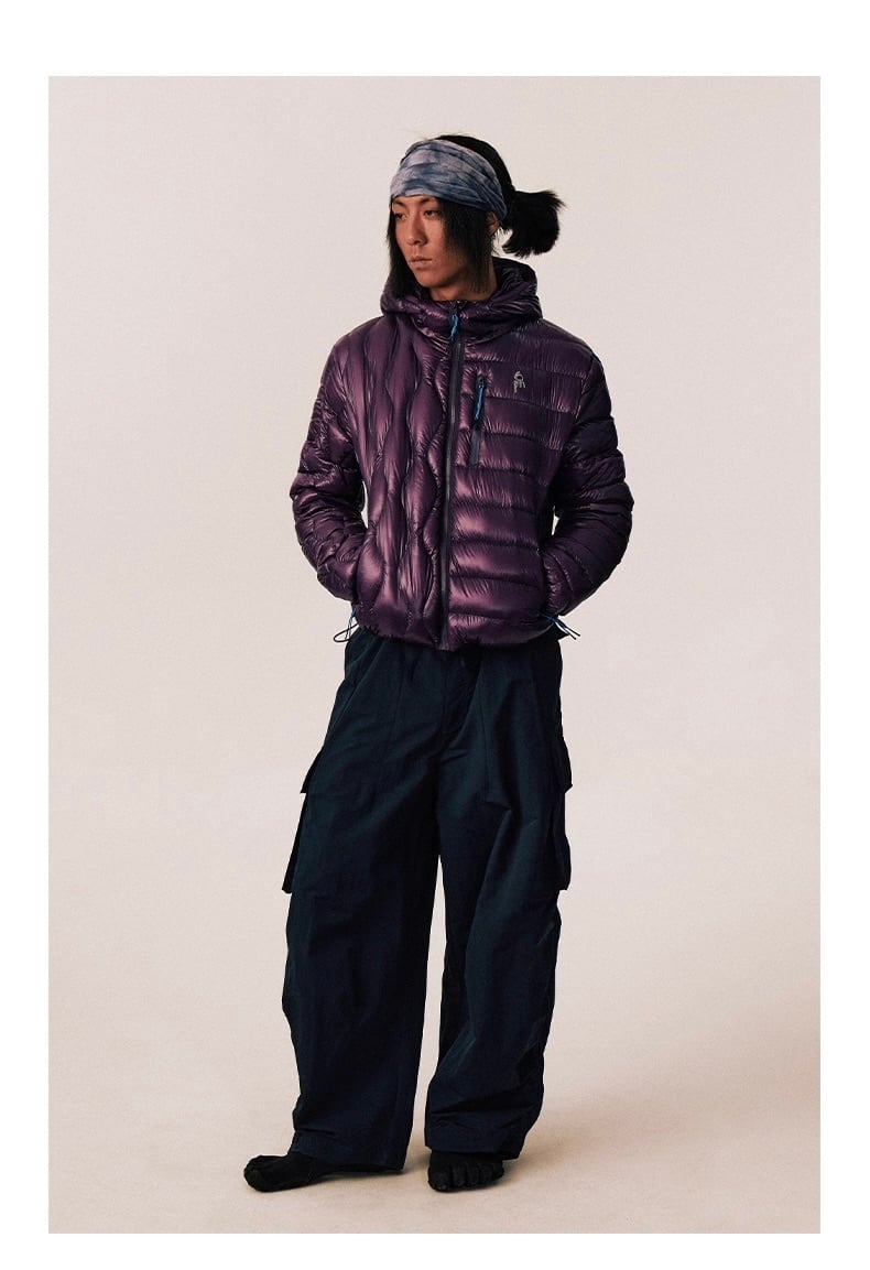 立体的なパッチワーク縫製により、スタイリッシュな見た目と高い断熱性を両立。