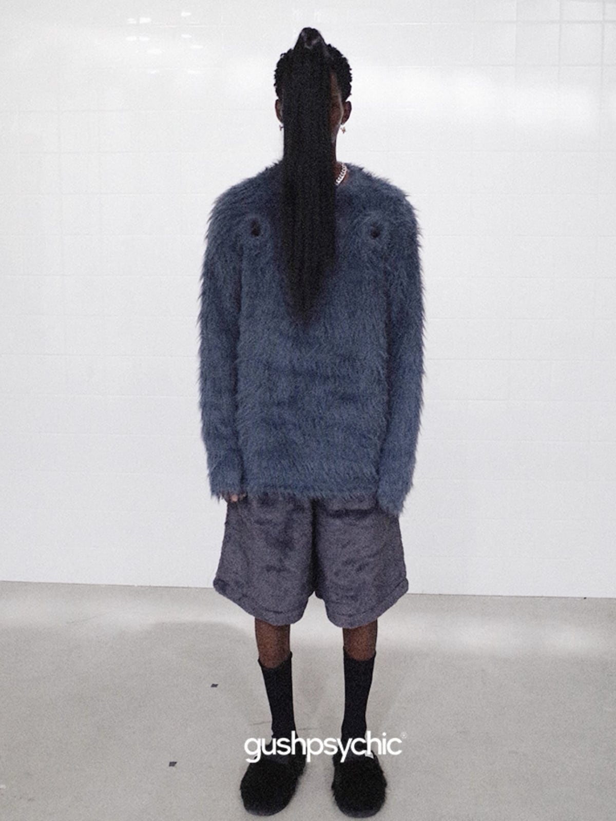 gushpsychicから、触れるだけで感動する超ロングなフェイクミンクファーを贅沢に使用したクルーネックセーターが登場。