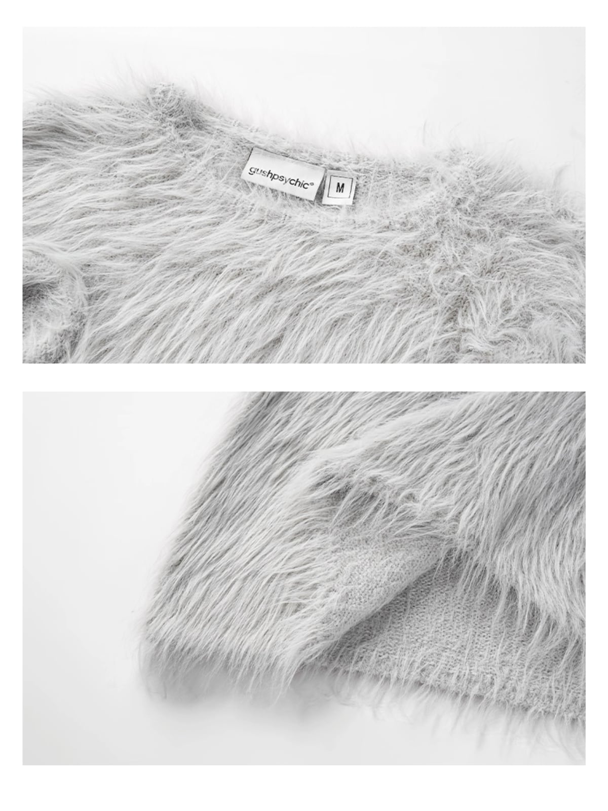 gushpsychic Hole Design Long Mink Hair Crewneck Sweater