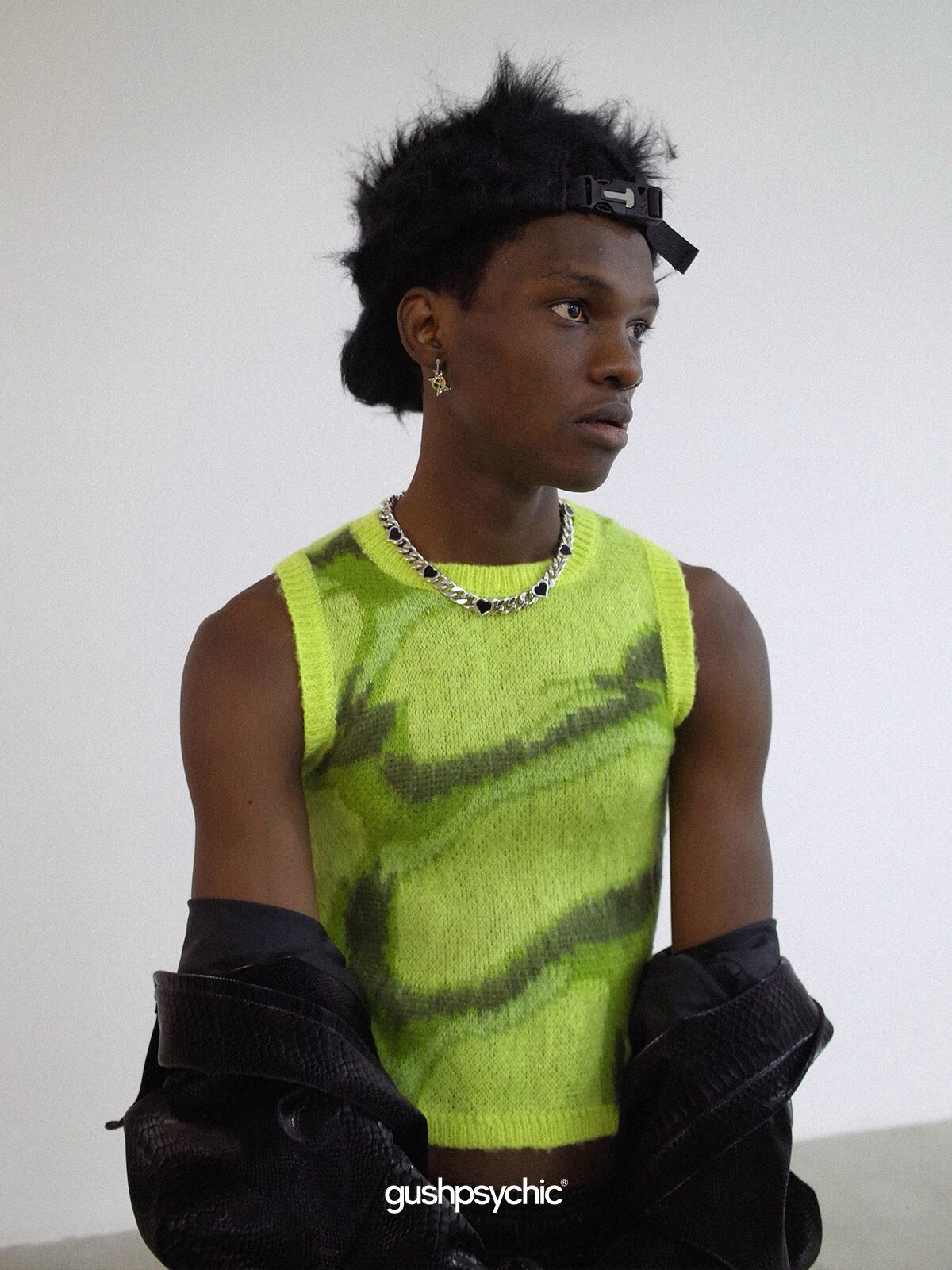 全周にわたり長く密集したファーが、圧倒的な存在感とストリート感を放ちます。