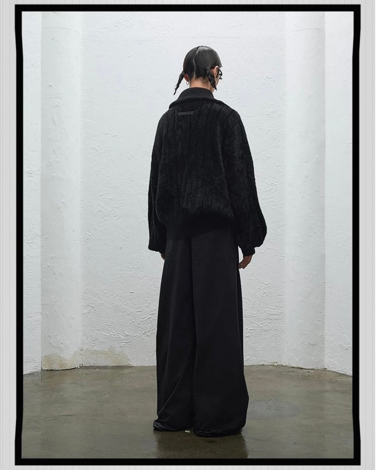 抗ピリング性や高弾性など機能性にも優れ、日常使いに最適。さらに、後ろ襟のカスタムレザーラベルが、細部にまで品質へのこだわりを物語ります。一枚で主役級の存在感を放つ、高感度なアイテムです。