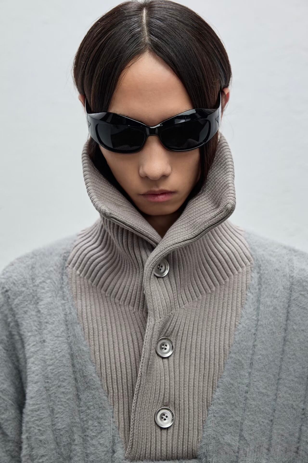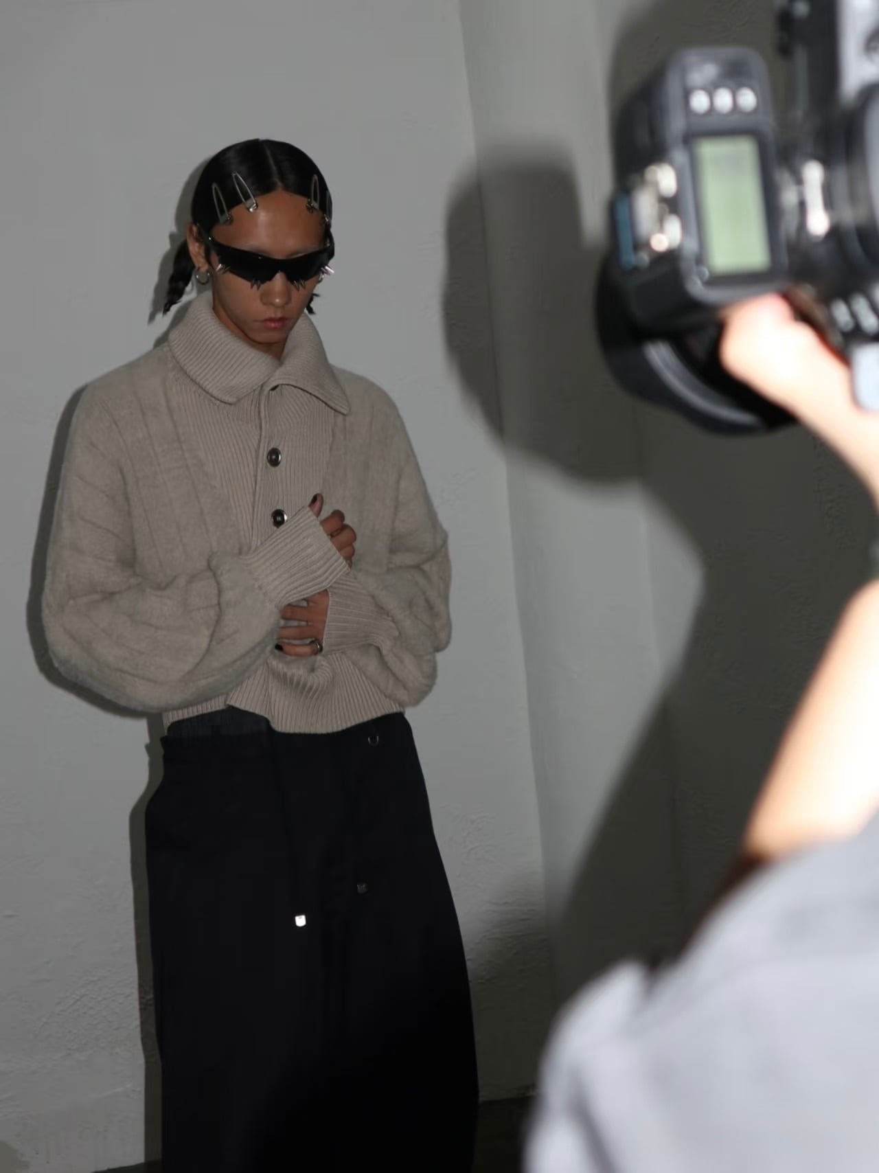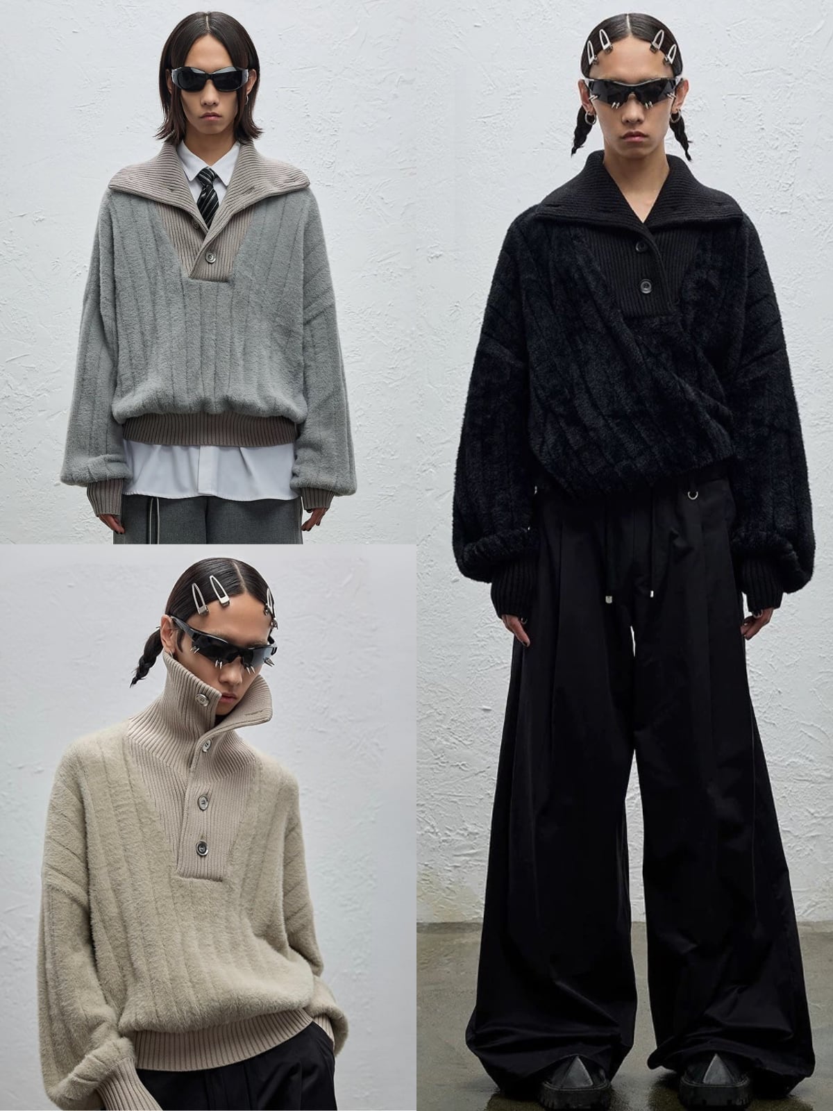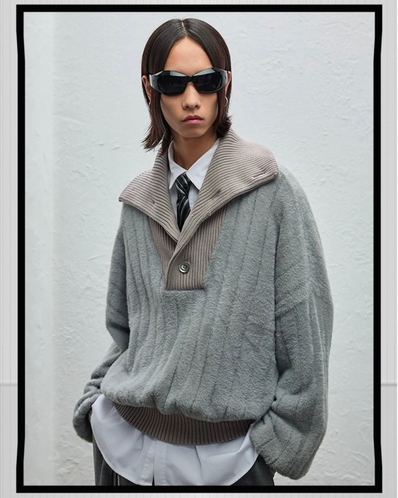 シャツやタートルネックとのレイヤードを、これまでになくモードかつ立体的に際立たせます。