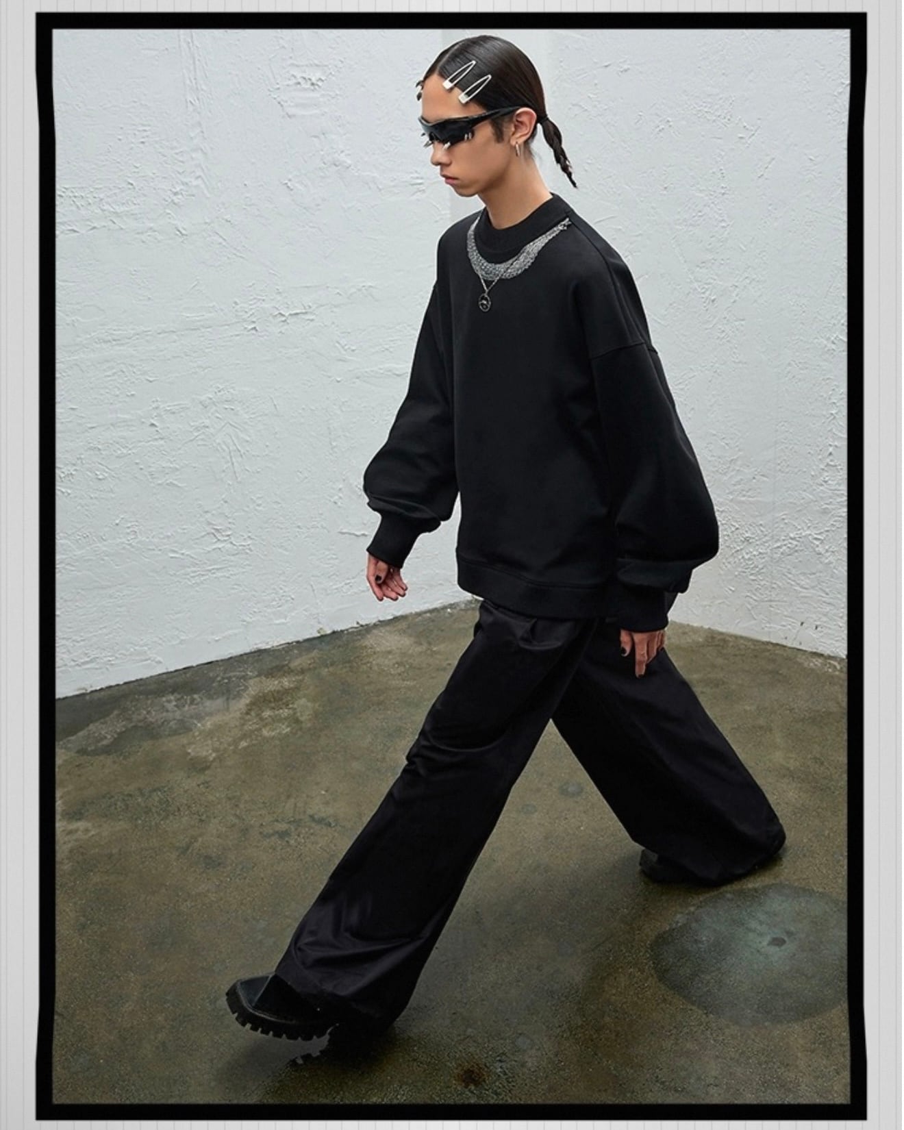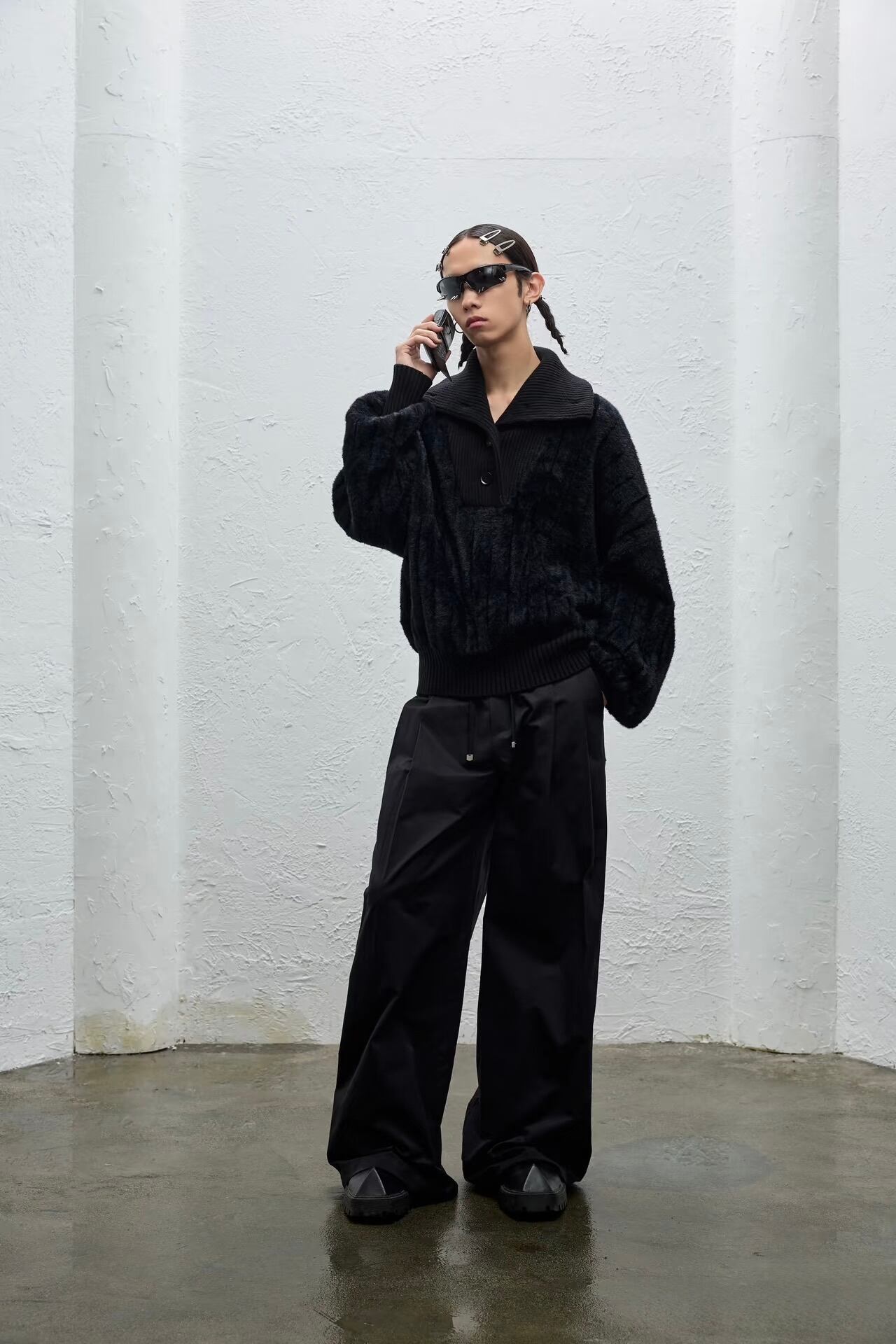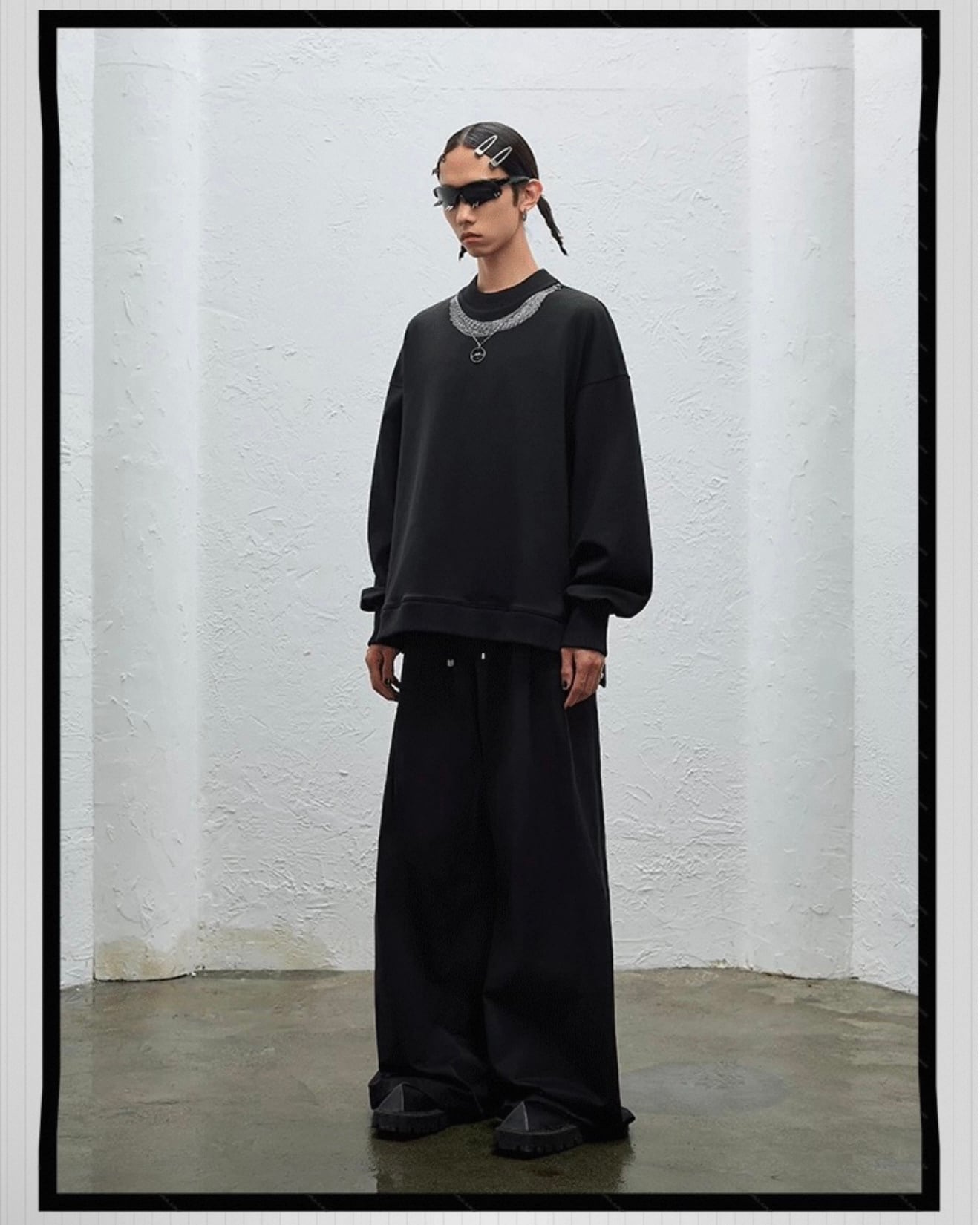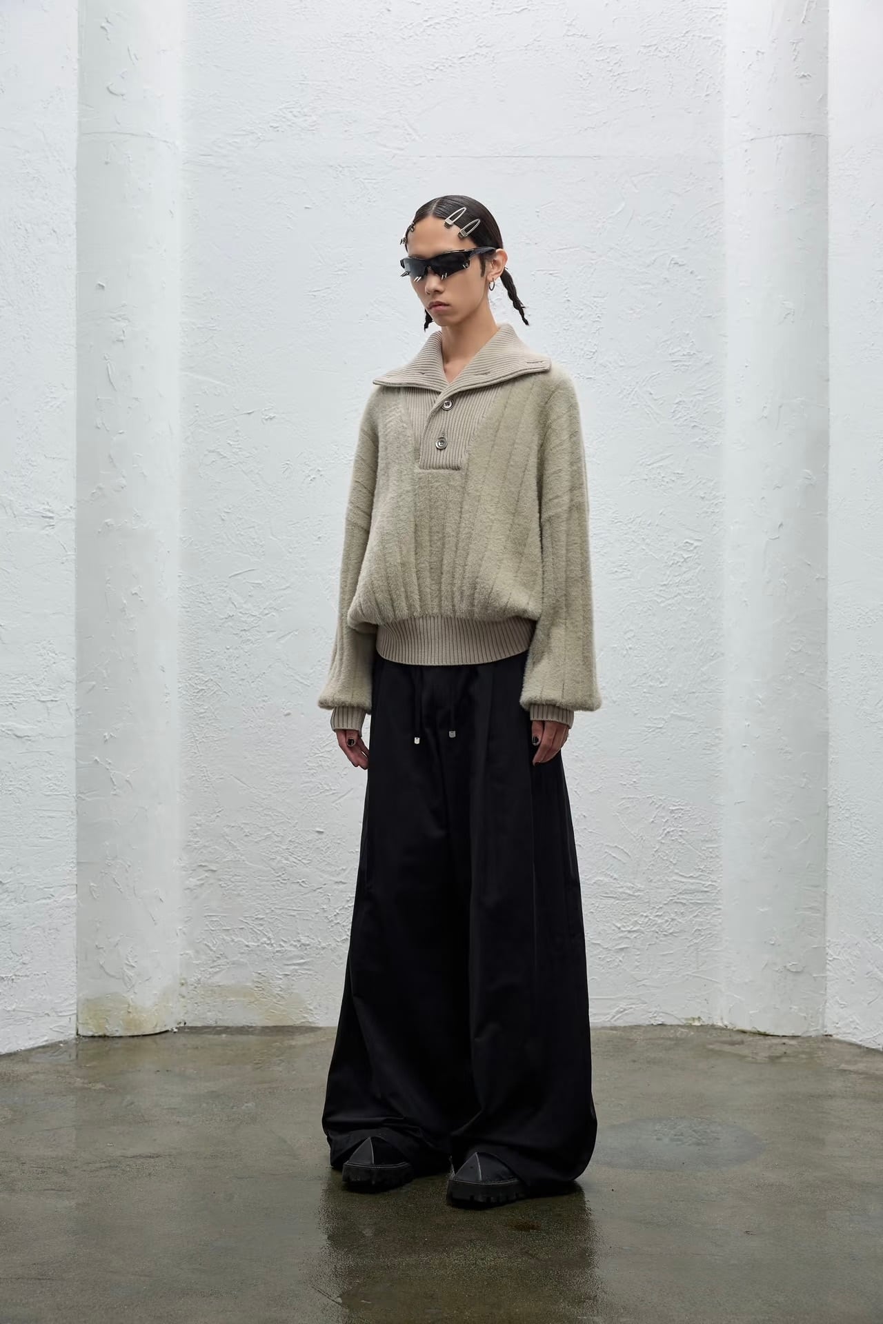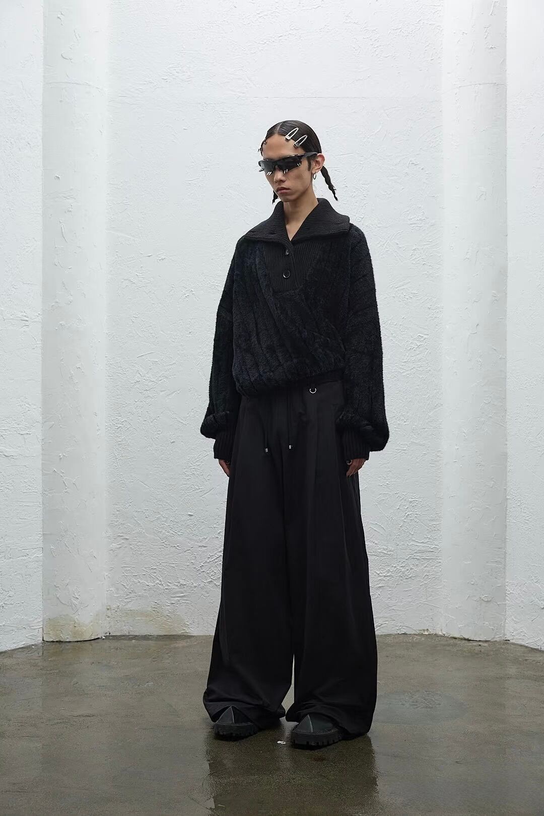 圧倒的な迫力を放つ極太ワイドシルエットとハイウエストが、スタイルアップとモードな存在感を両立。