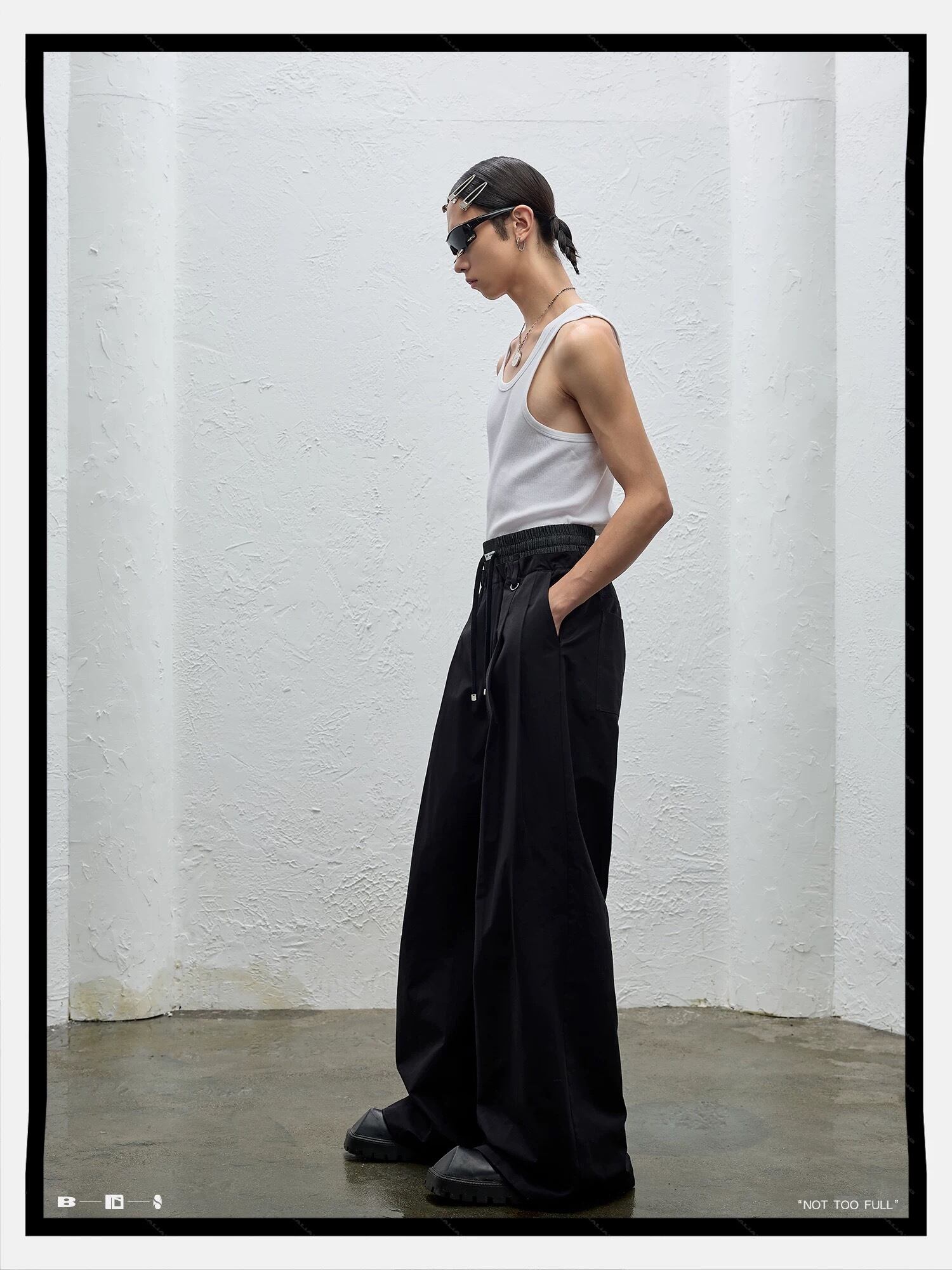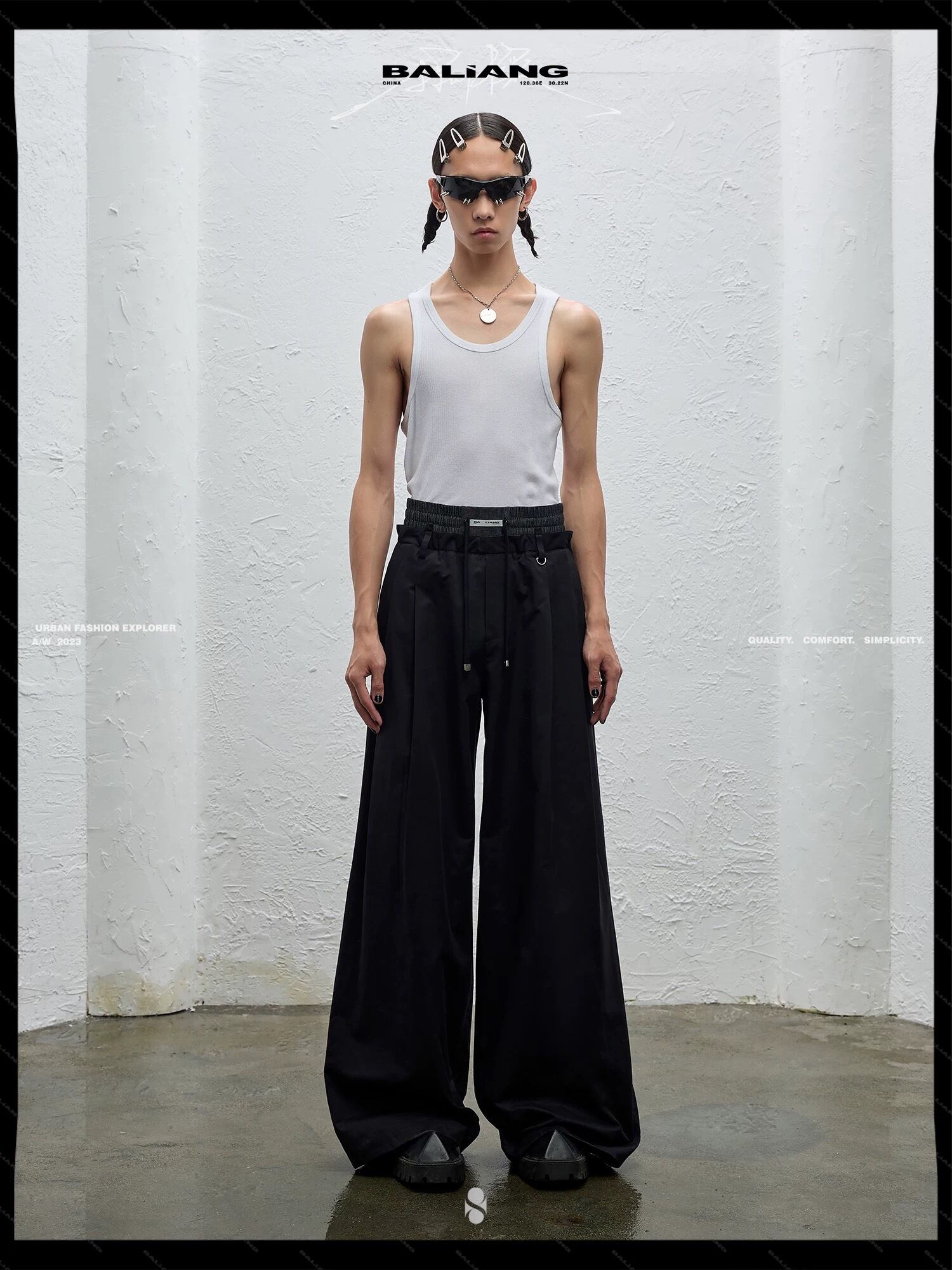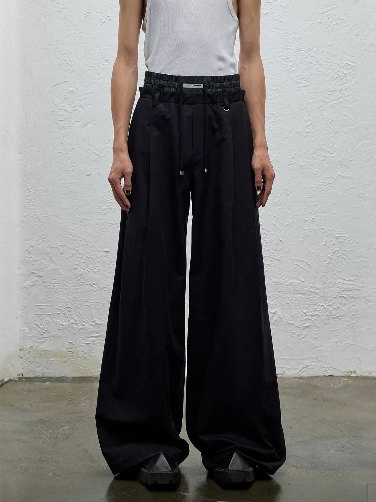 BALIANG Double Waist Drawstring Wide Trousers