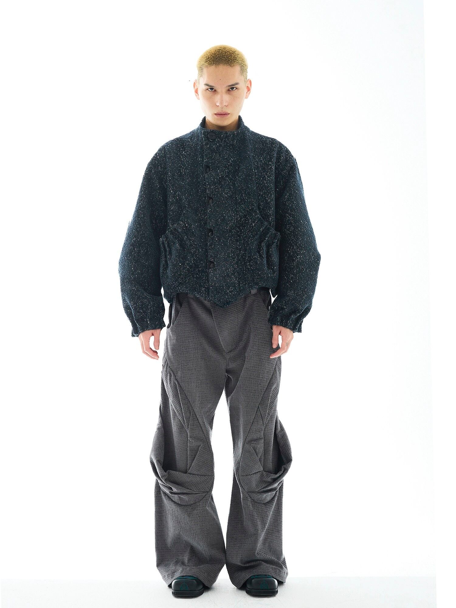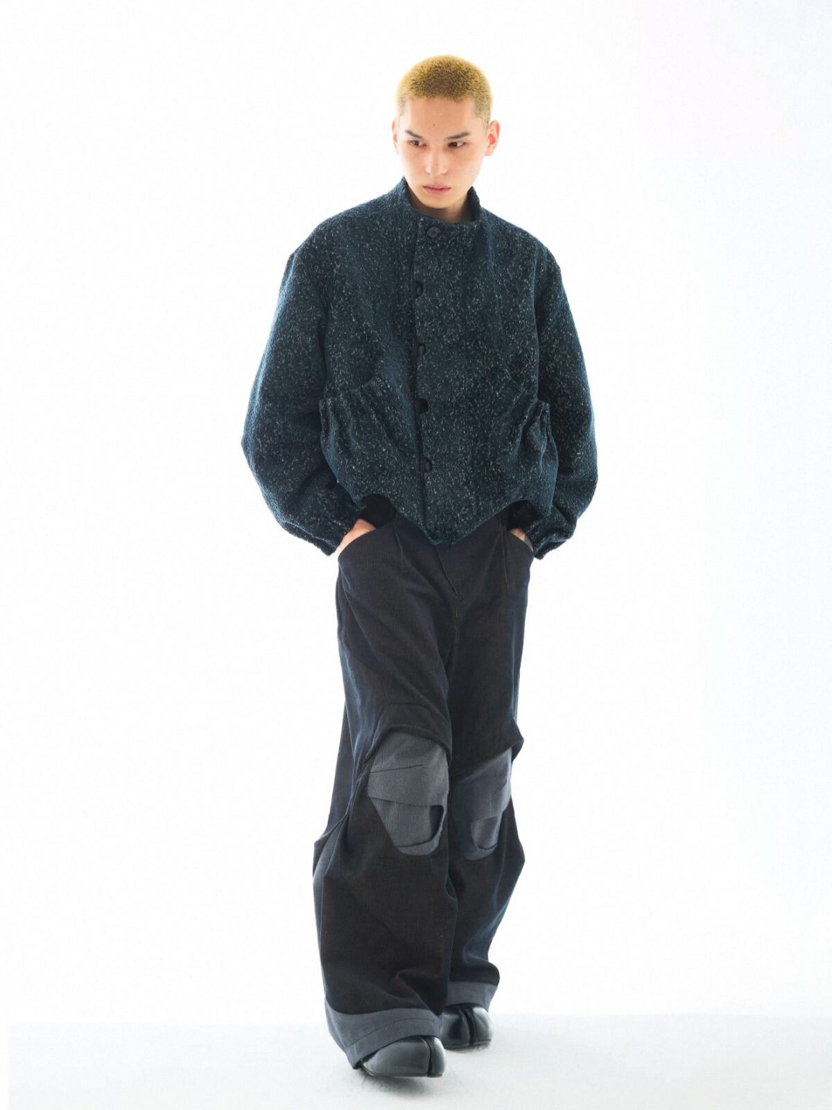 袖口やポケットの立体的なギャザー加工が、ボクシーなシルエットに浮遊感のあるモダンな表情を加えます。
