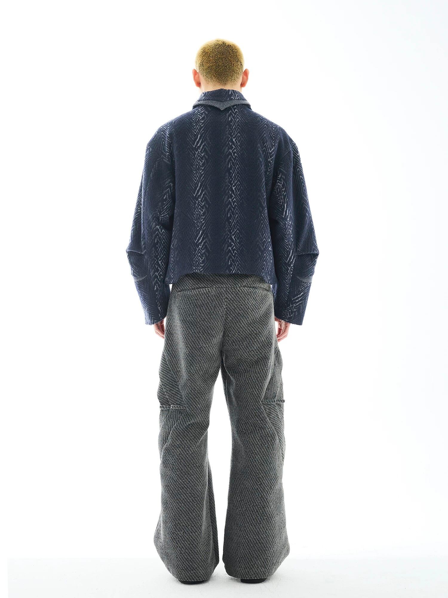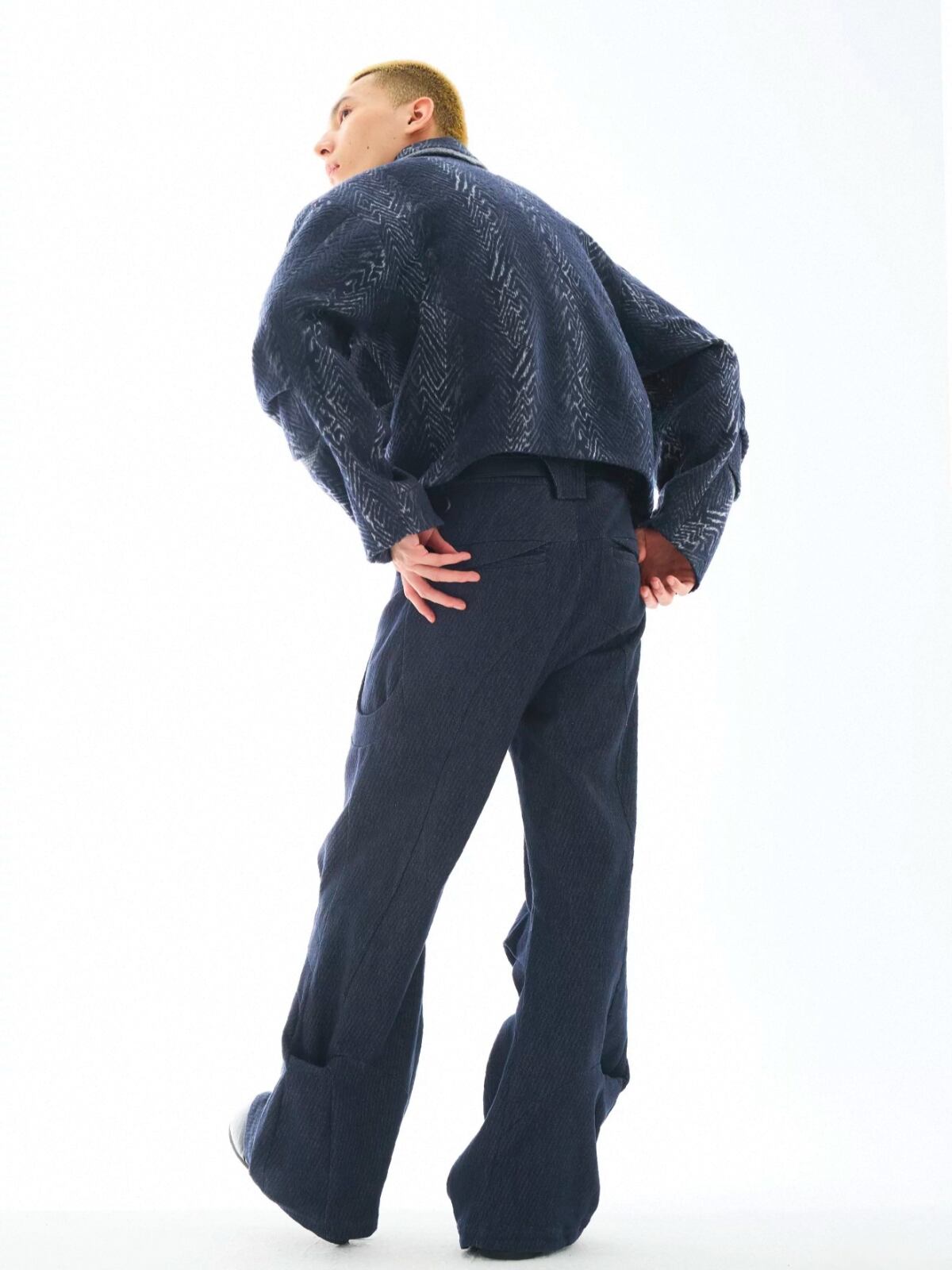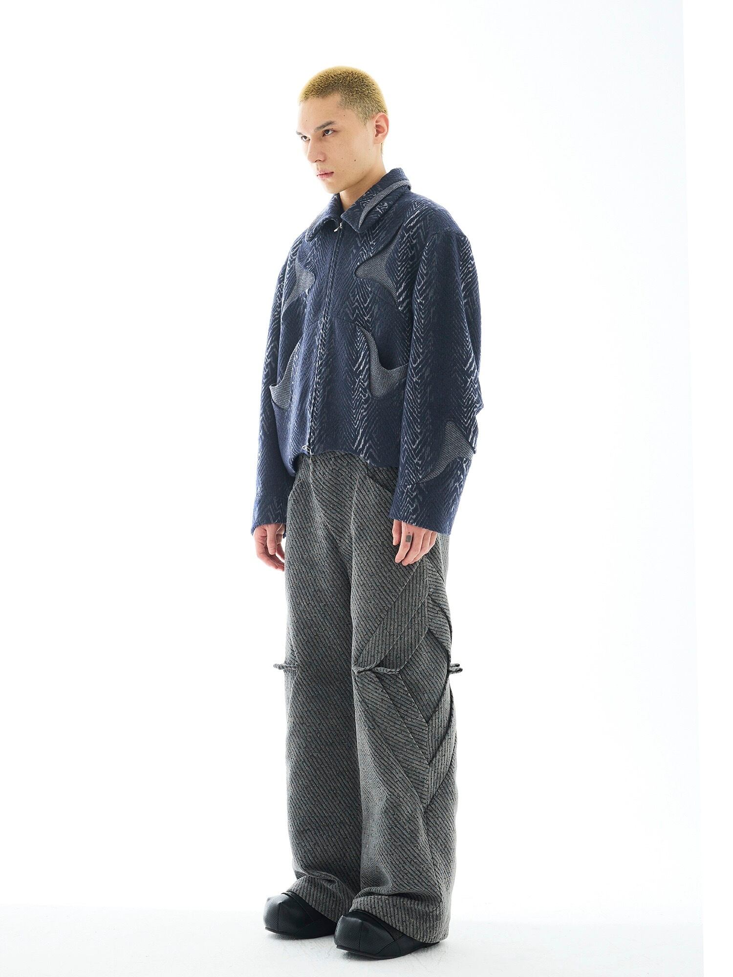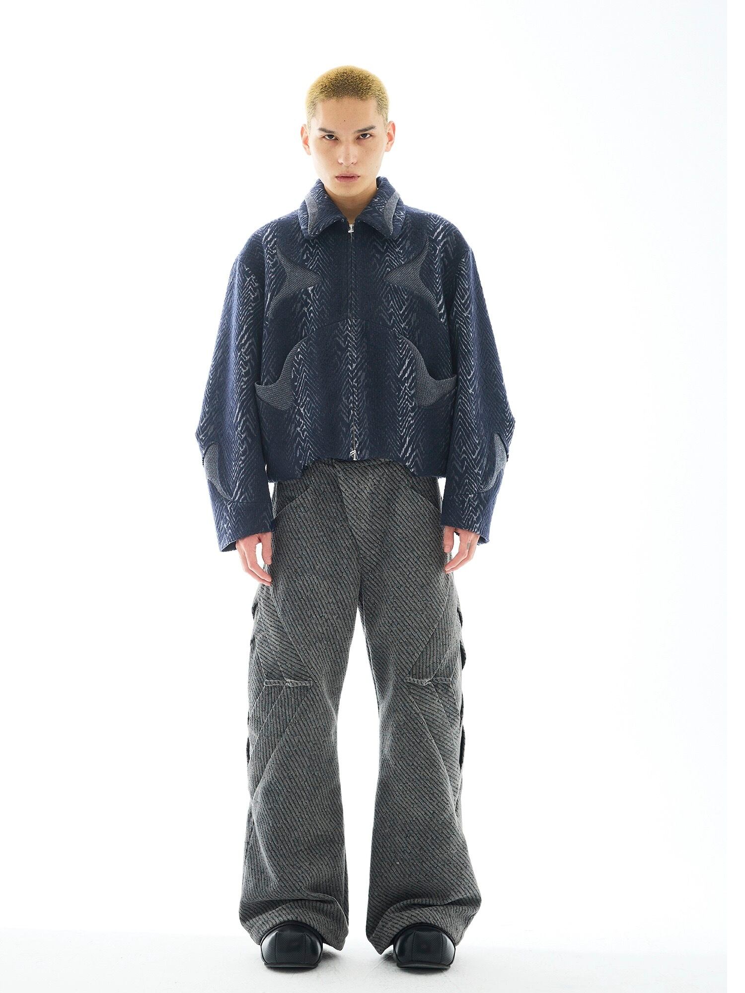 幾何学的なカッティングで「三日月」を再構築し、身頃に縫い合わせた、解体的なデザインが魅力のショートジャケット。