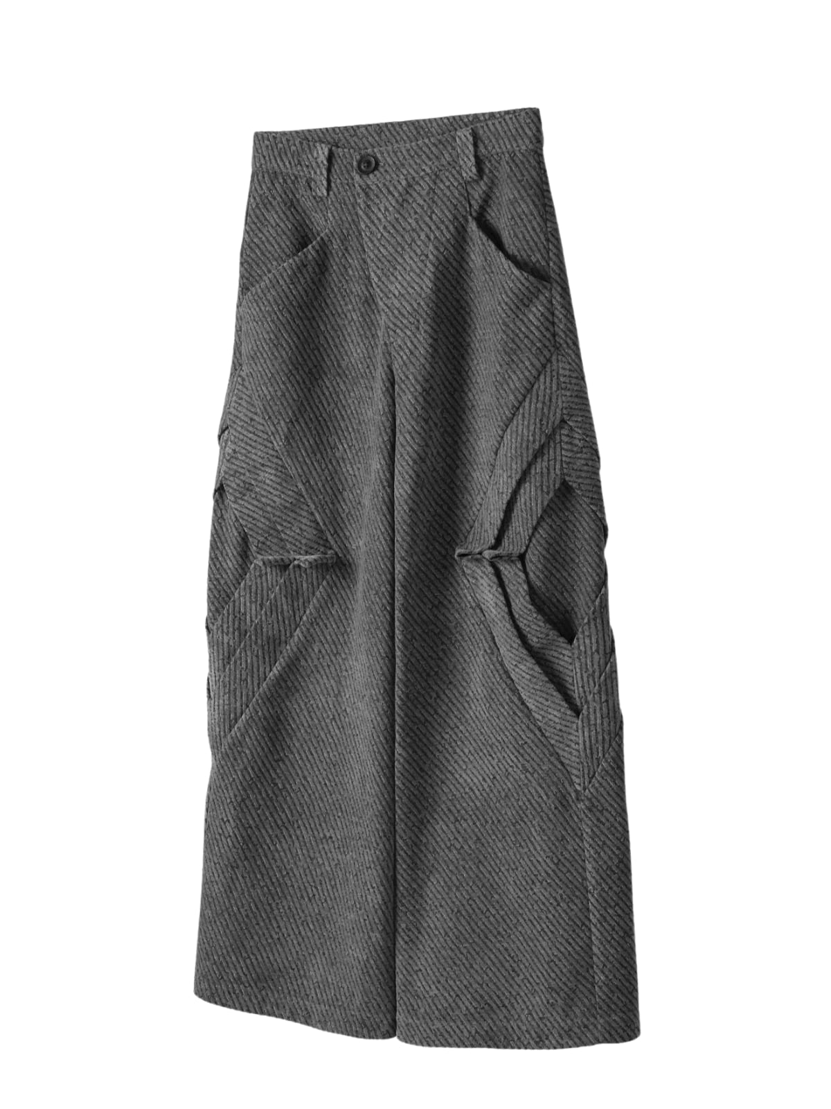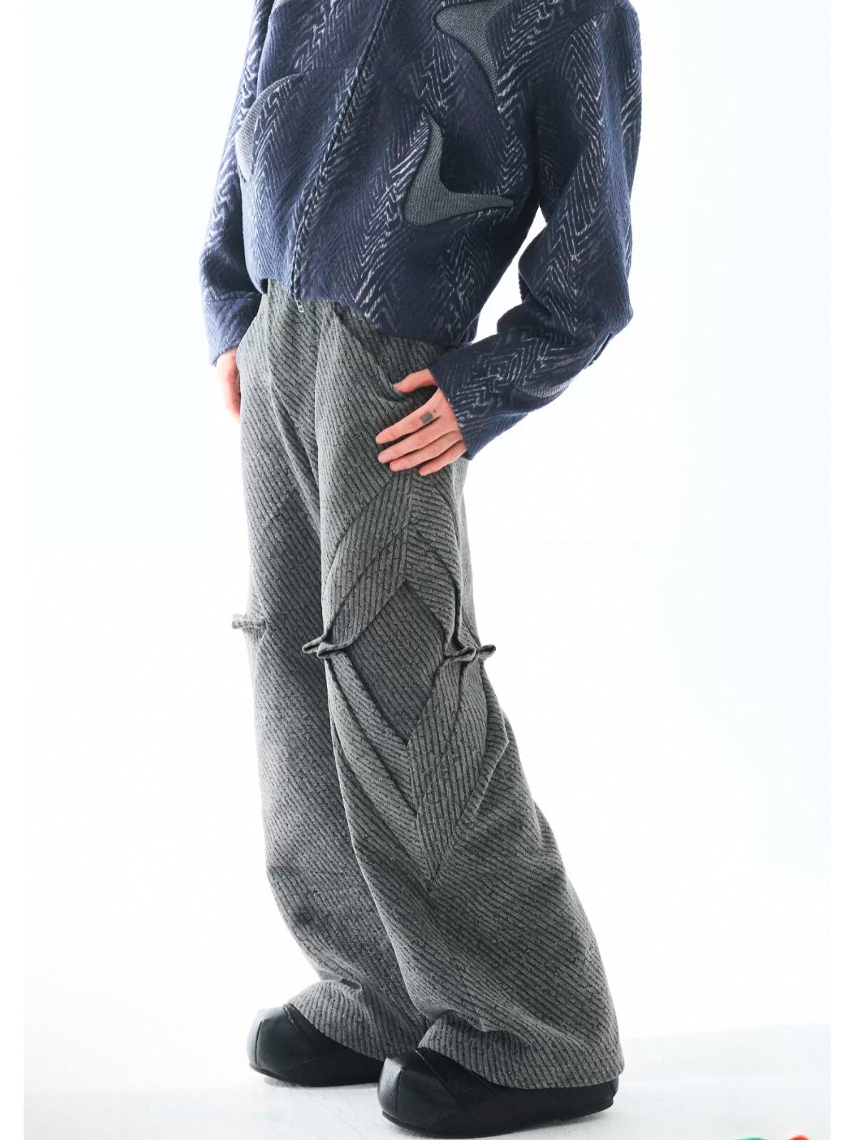 折り畳み式プリーツ加工により、浮遊感のあるユニークな立体構造を実現したワイドパンツ。