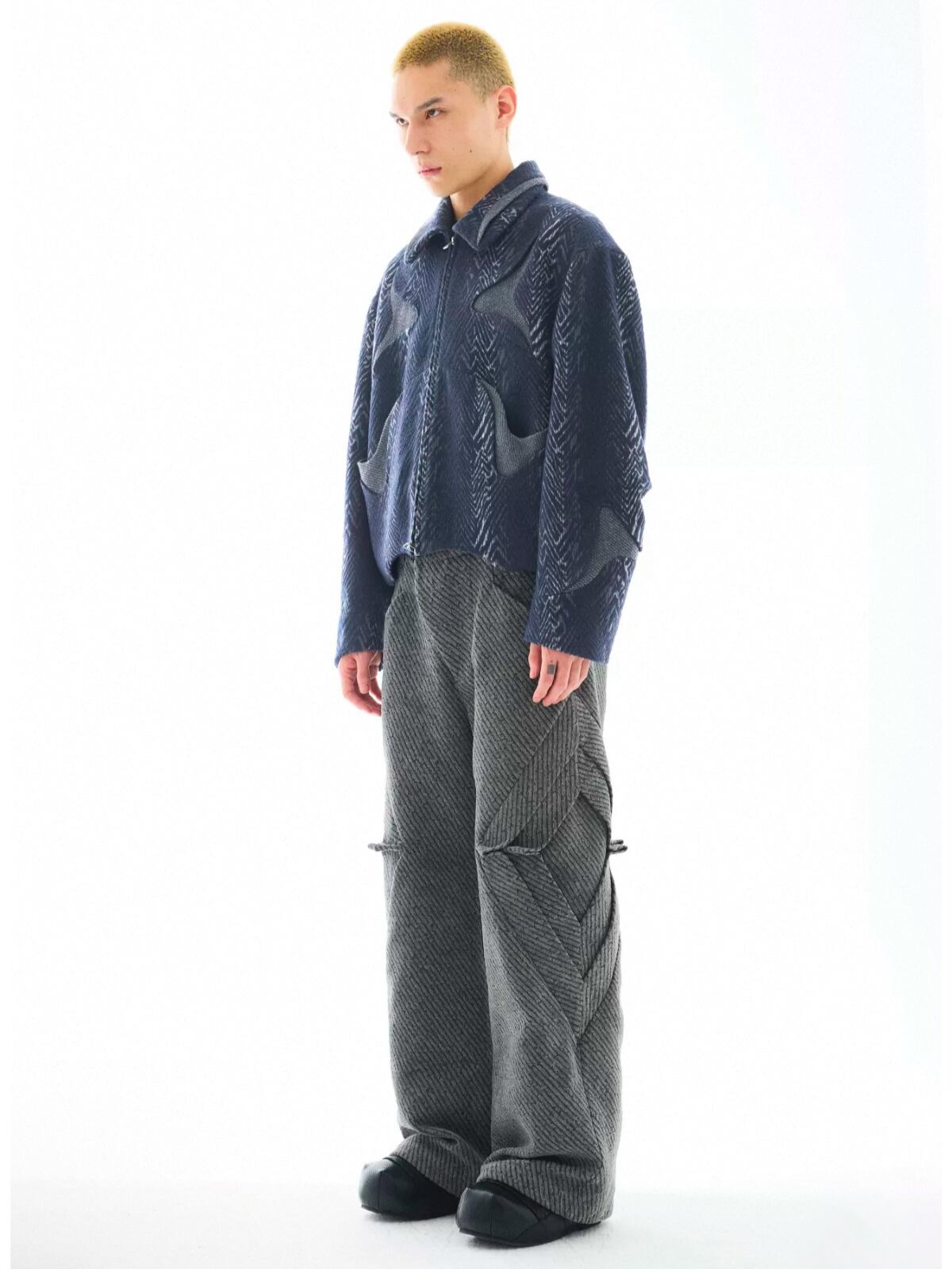 54A0 Pleated Trousers Geometric Texture