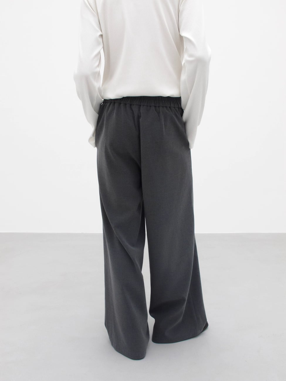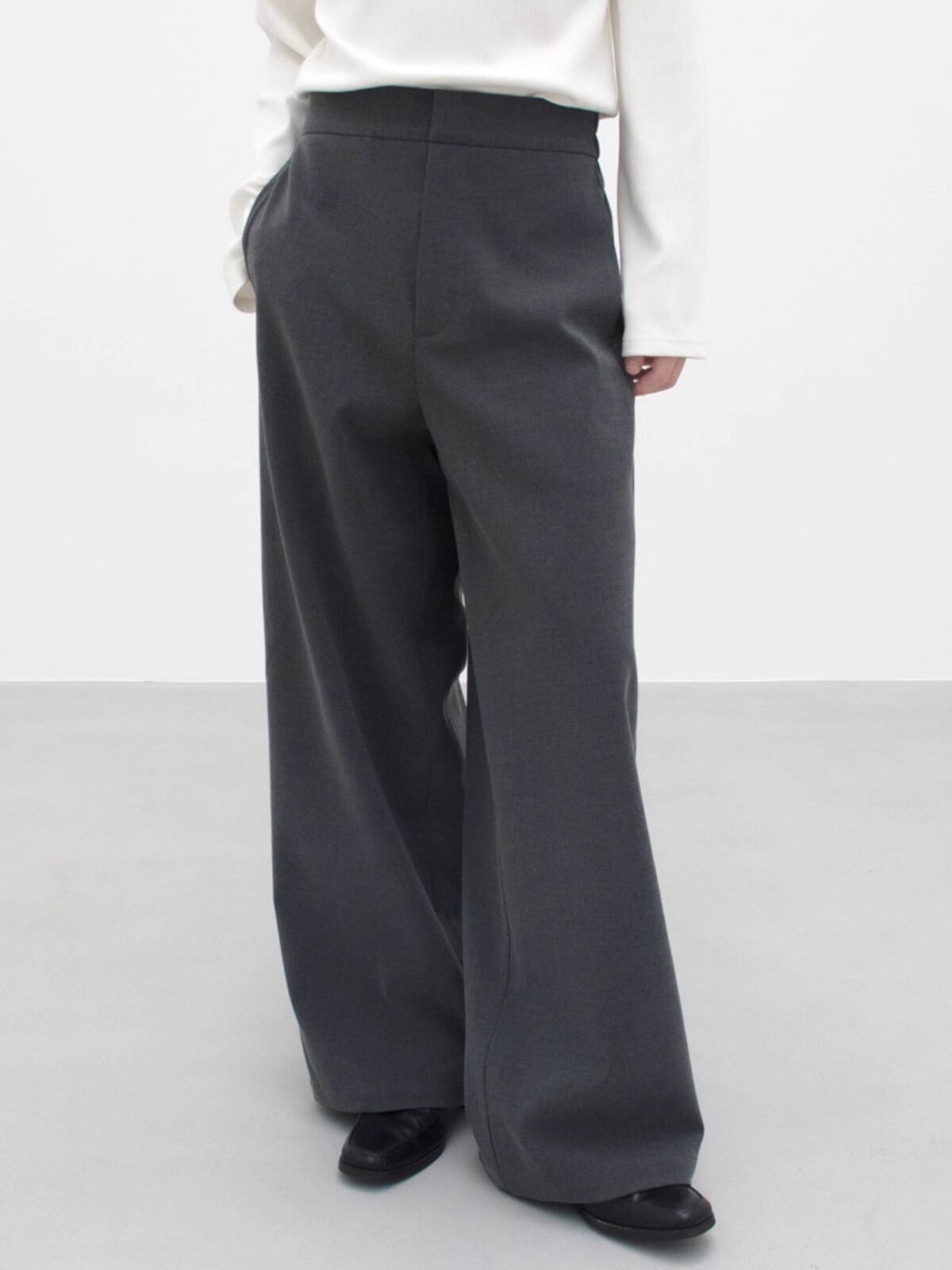 裾に向かって優雅に広がるAラインシルエットが特徴のワイドトラウザーズ。