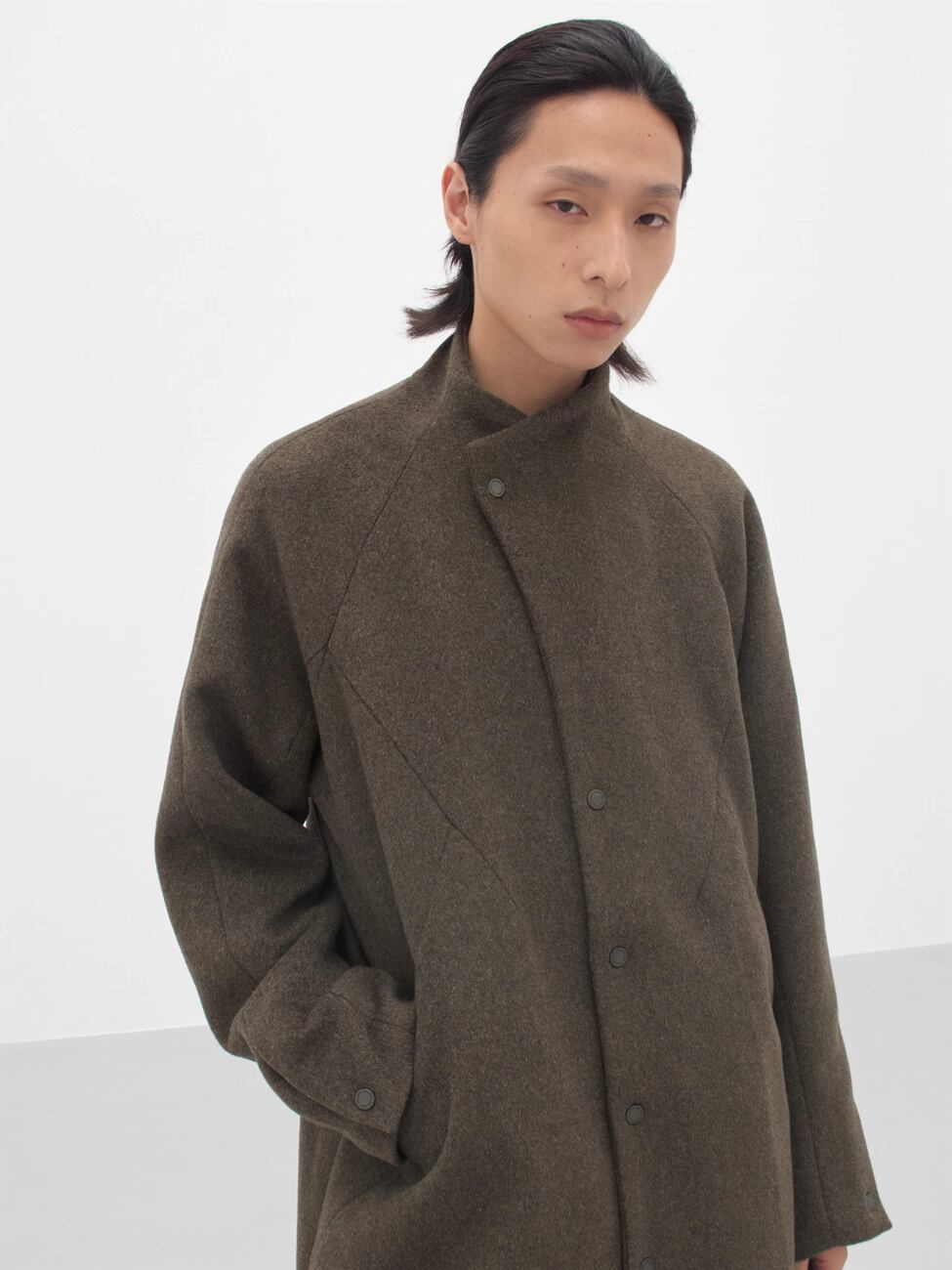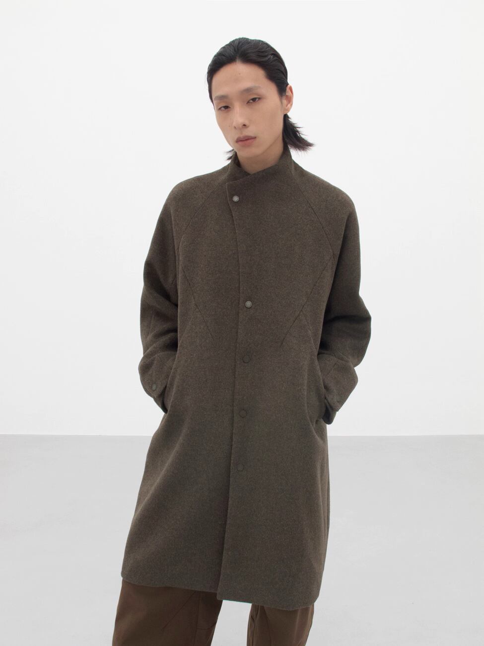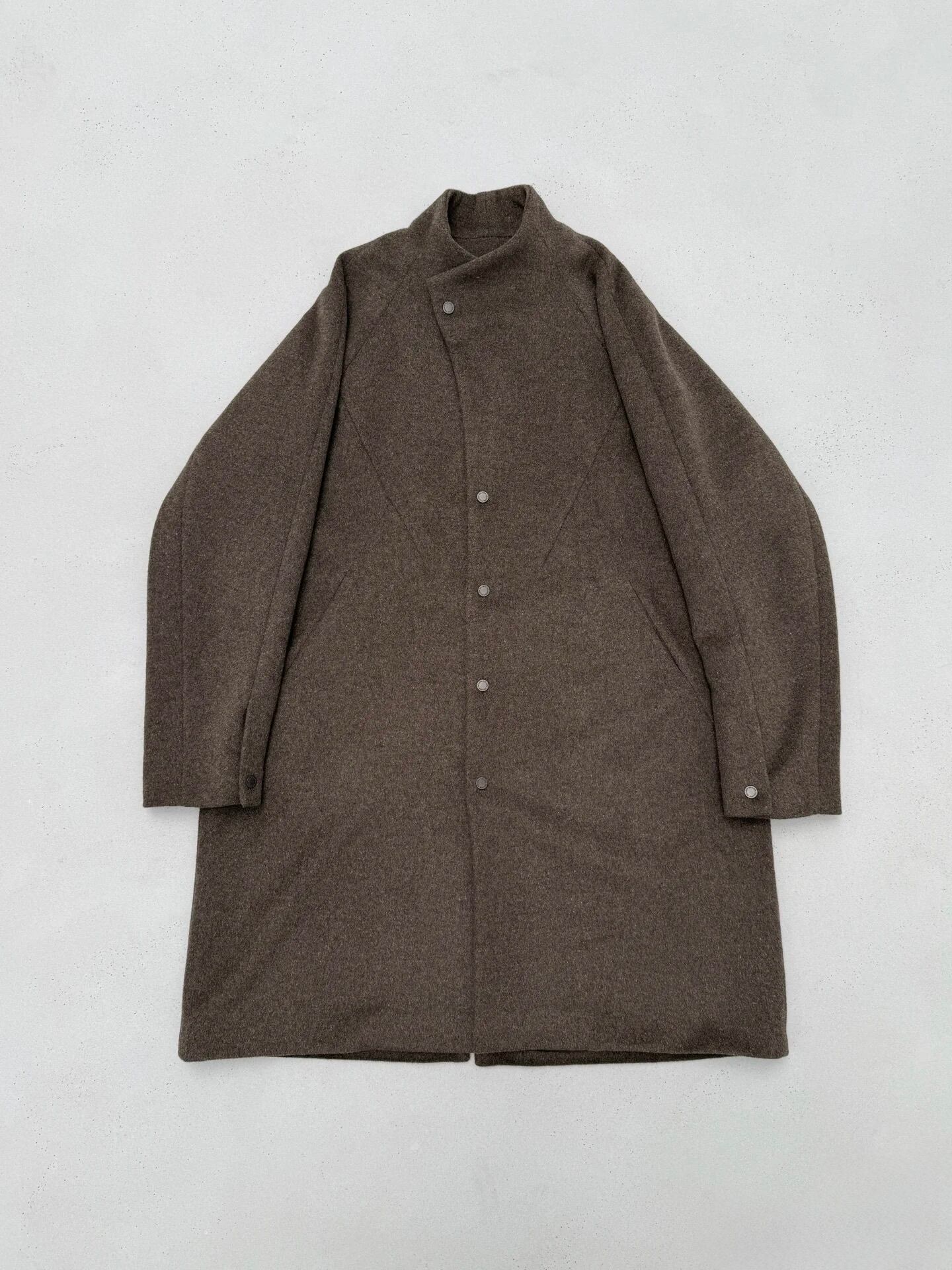 730gの高密度ウール混紡生地をを纏う、構築的なAラインロングコート
