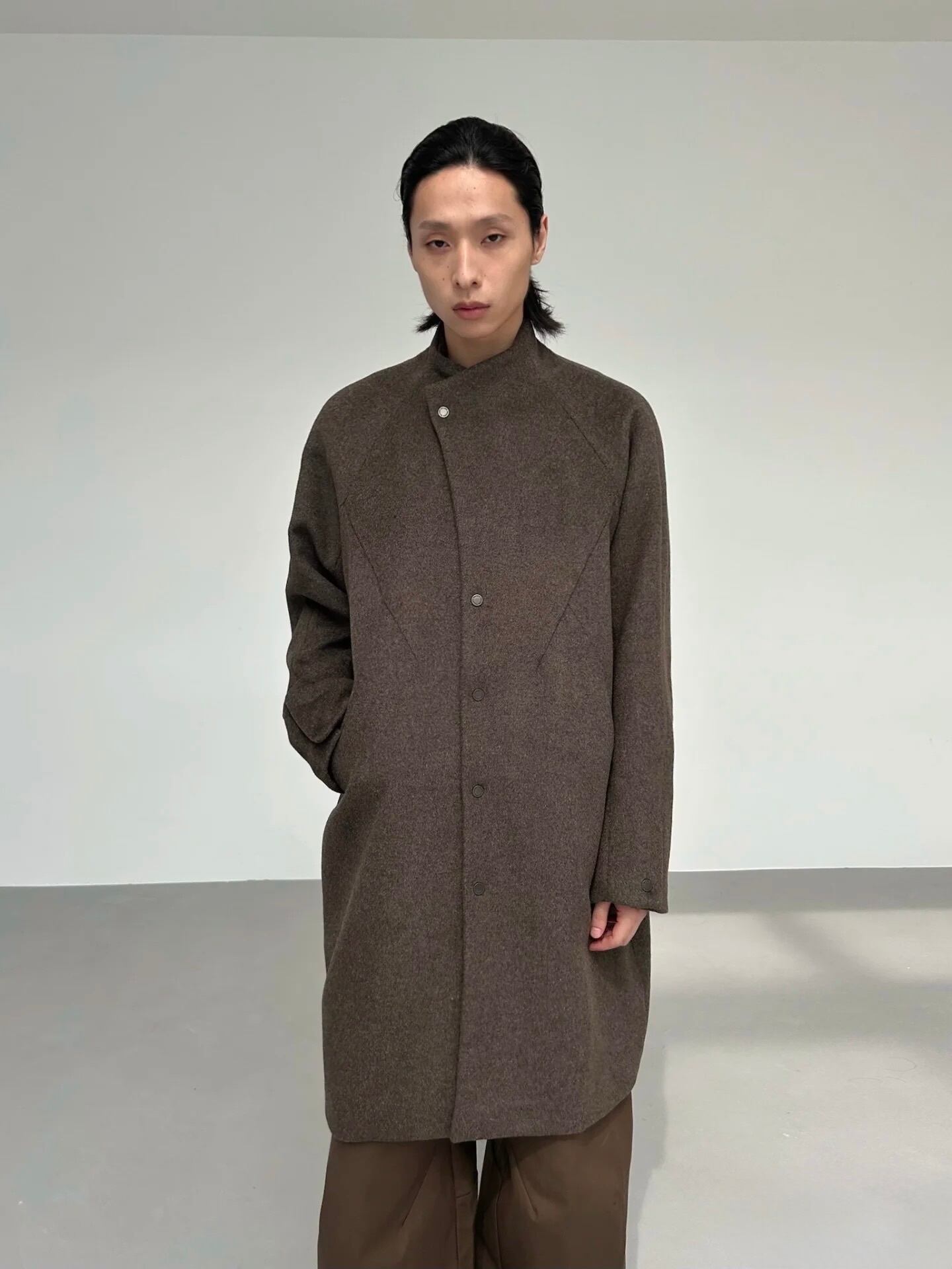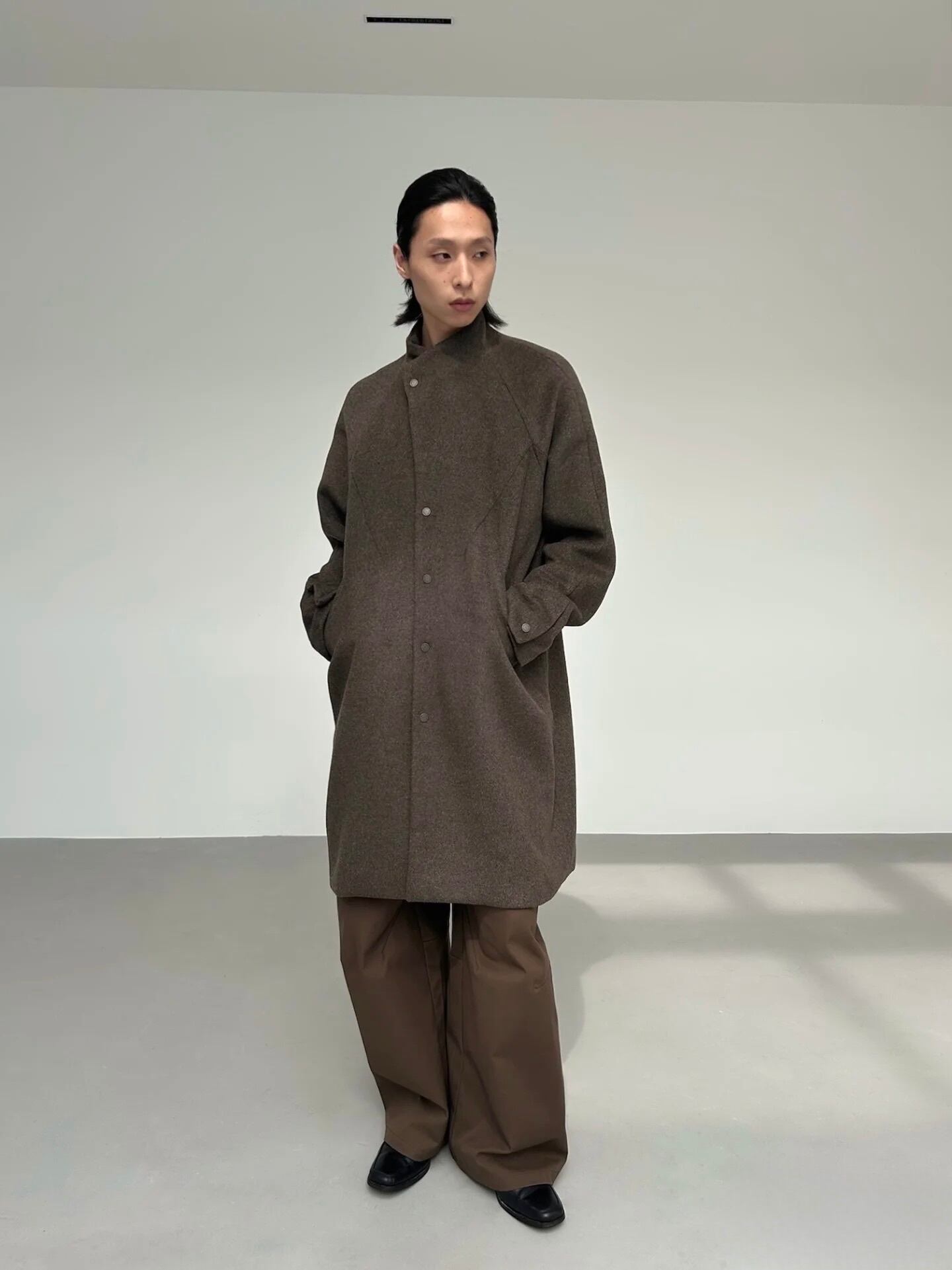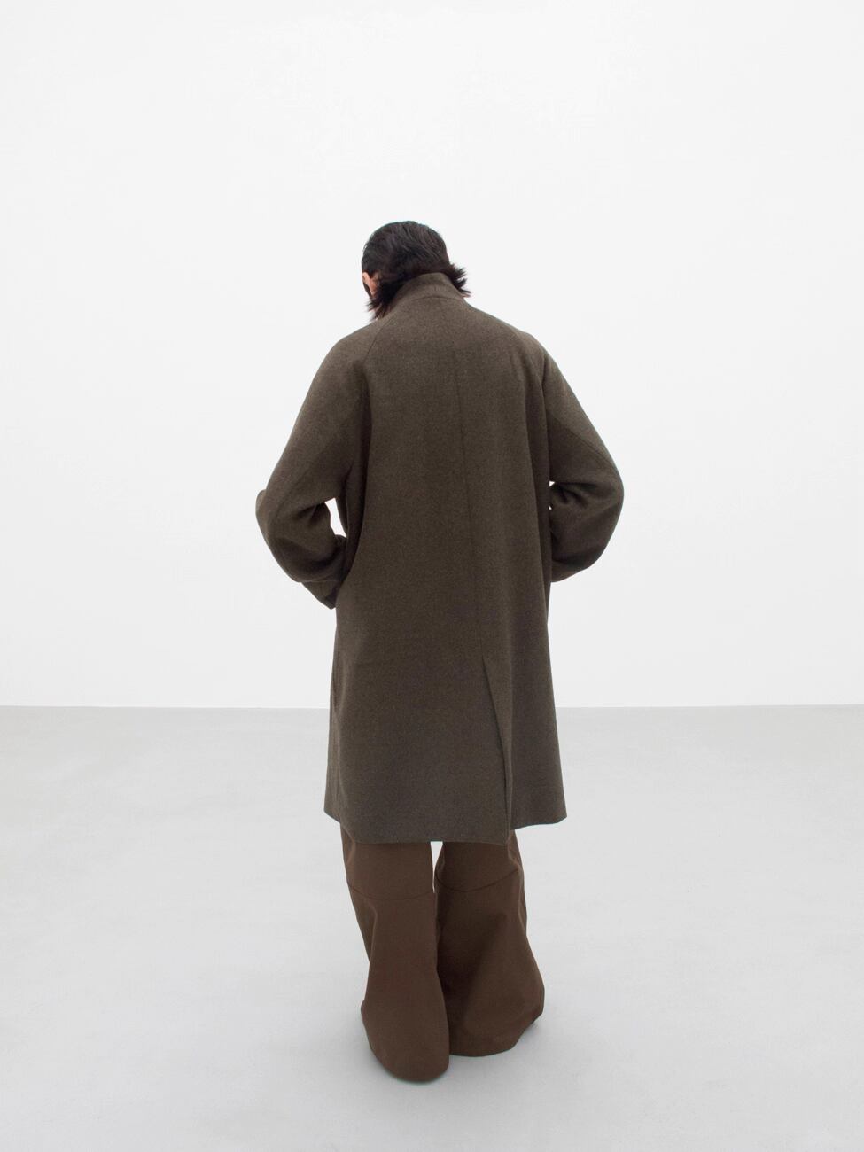 730gの高密度ウール混紡生地をを纏う、構築的なAラインロングコート