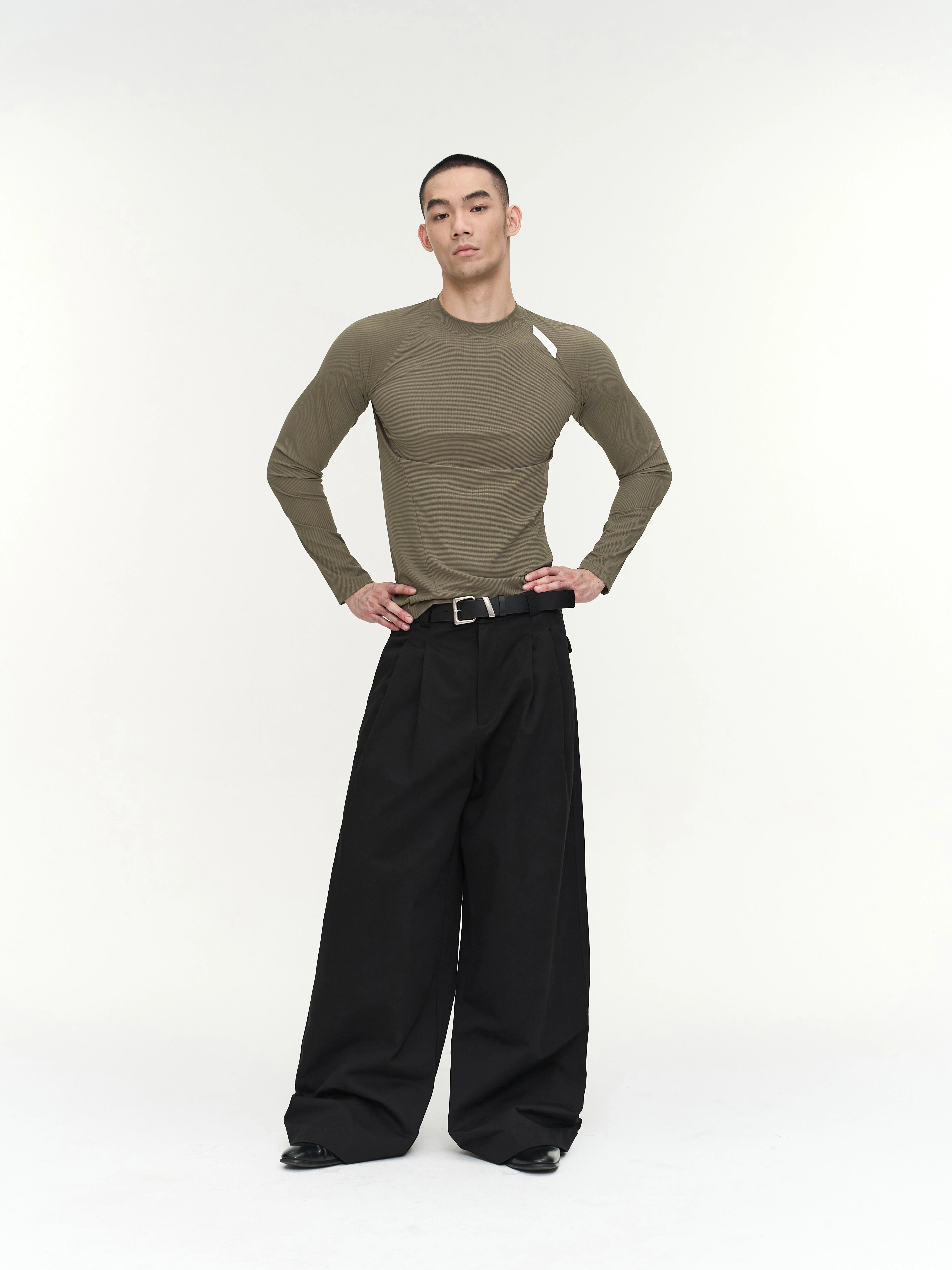ゆったりとしたルーズフィットでありながら、もたつかないシャープな印象を維持します。
