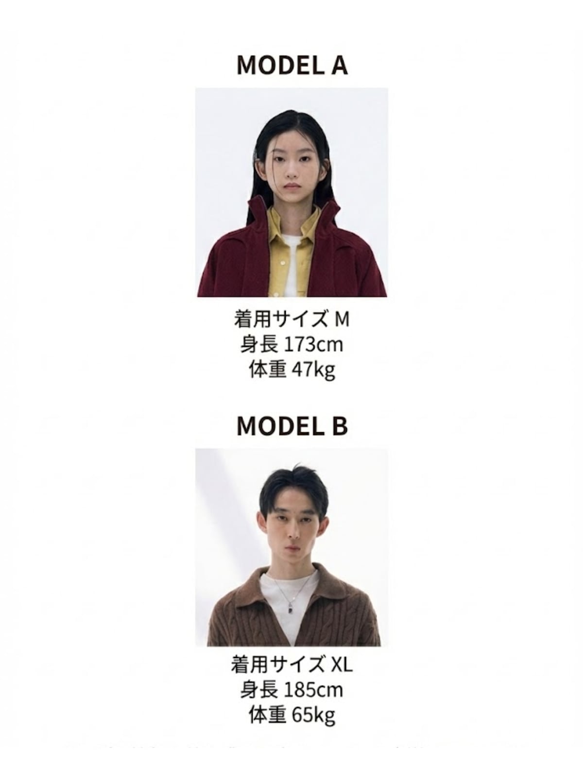 身長:185cm / 体重:65kg / 着用サイズ:XL
