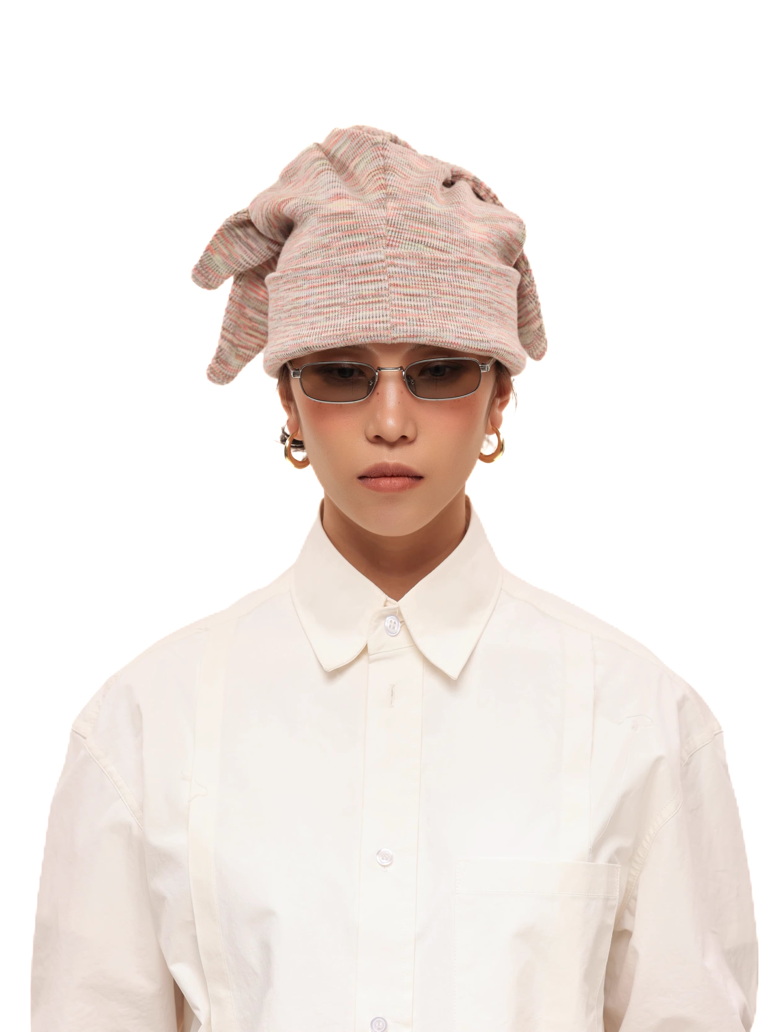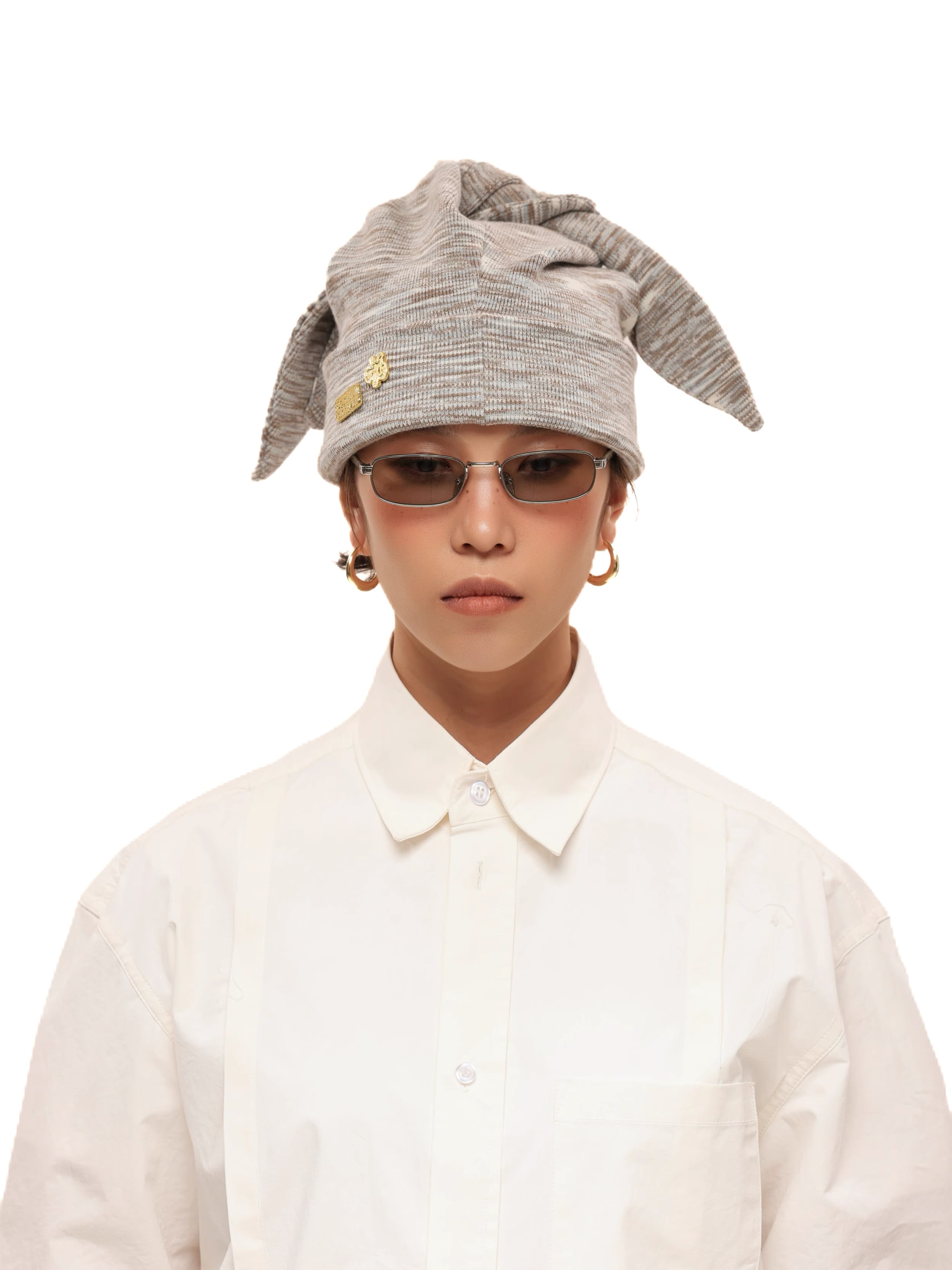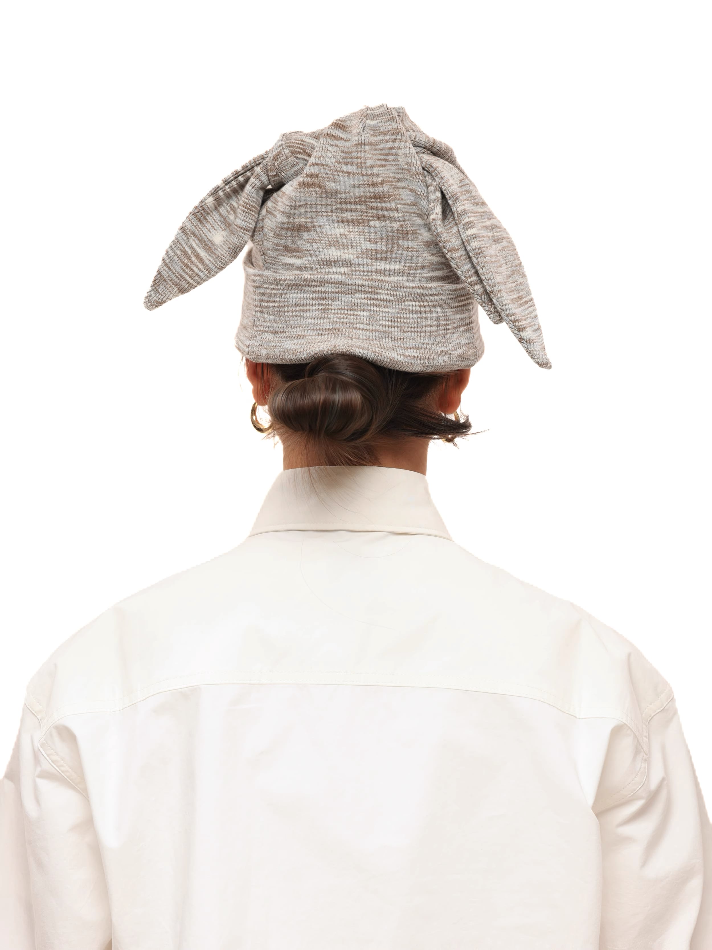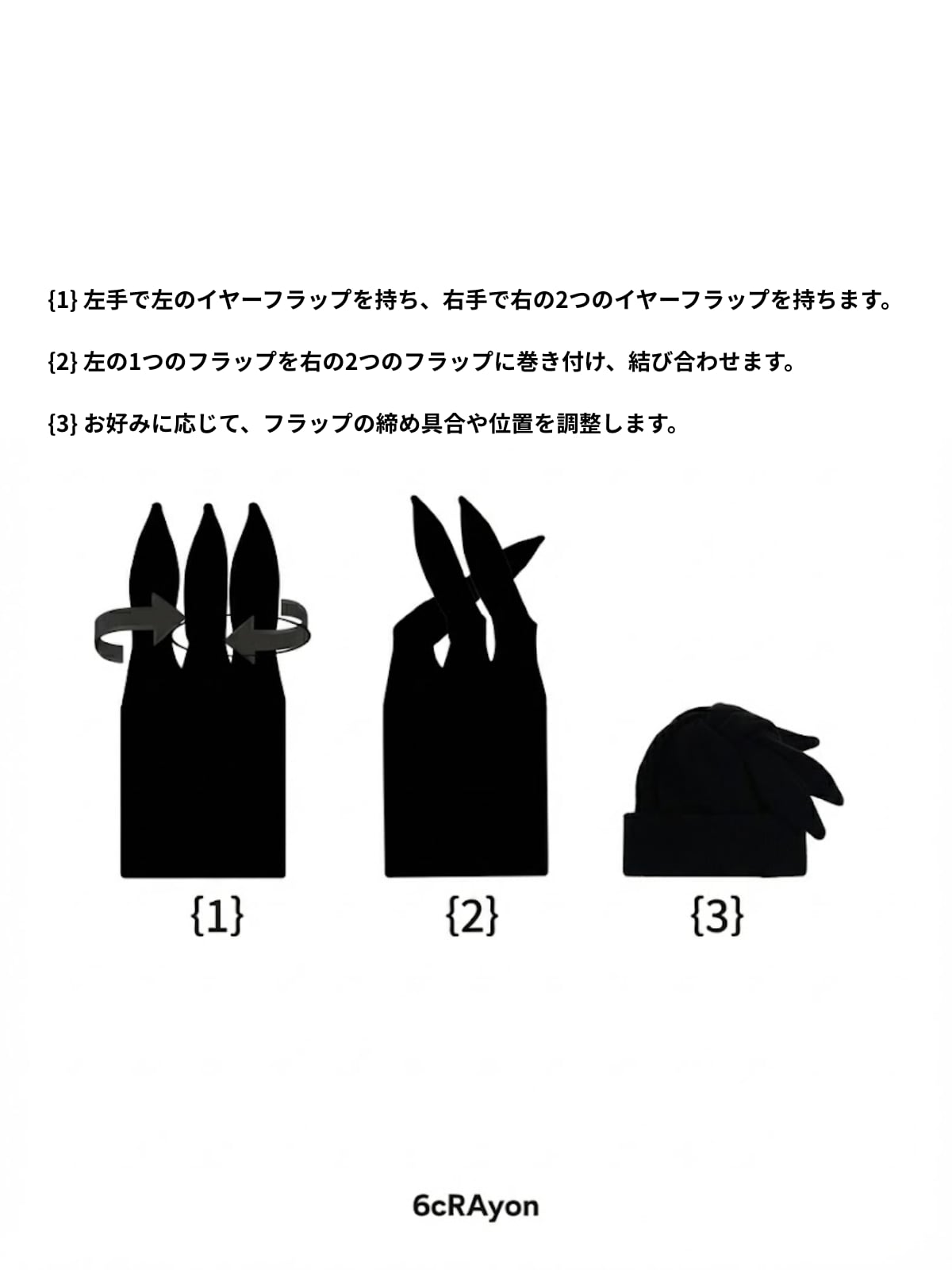 3WAYマルチウェイ仕様:特徴的な**「ウサ耳」フラップを結び合わせるギミックにより、バラクラバ風、スカーフ風、またはシンプルなビーニー**へと、スタイルを自在にスイッチできます。