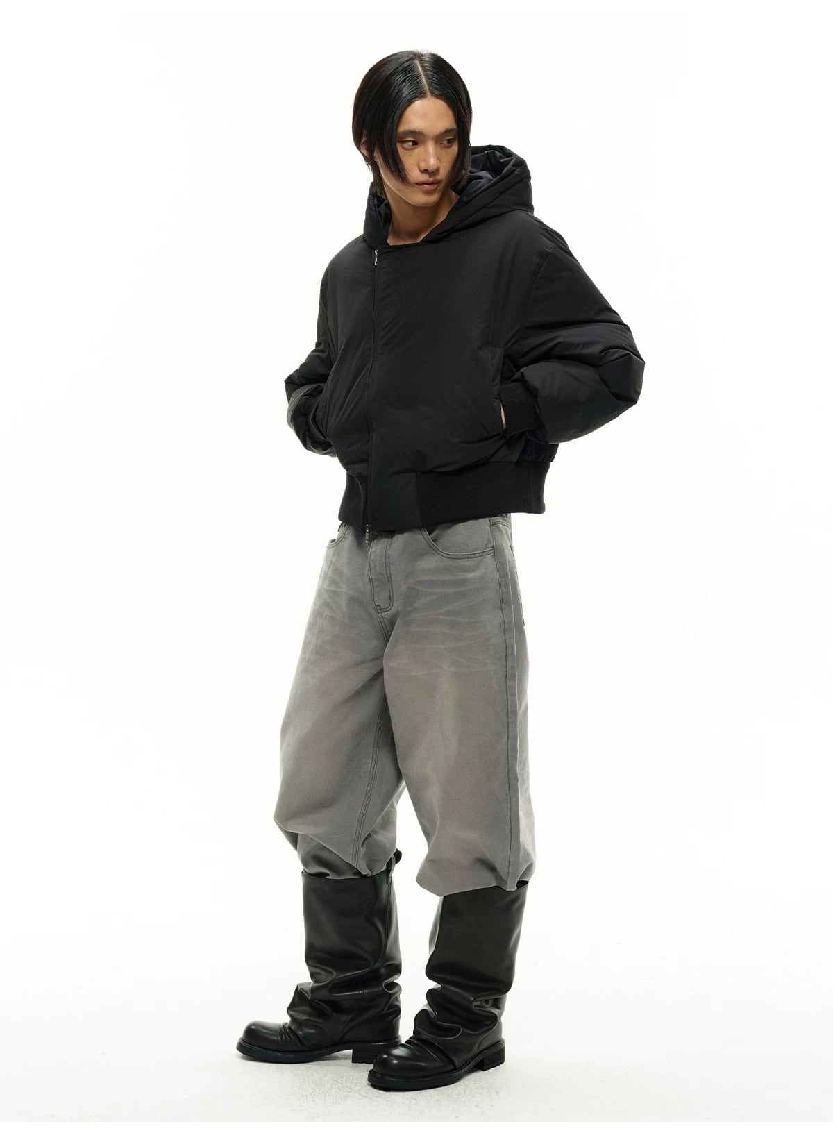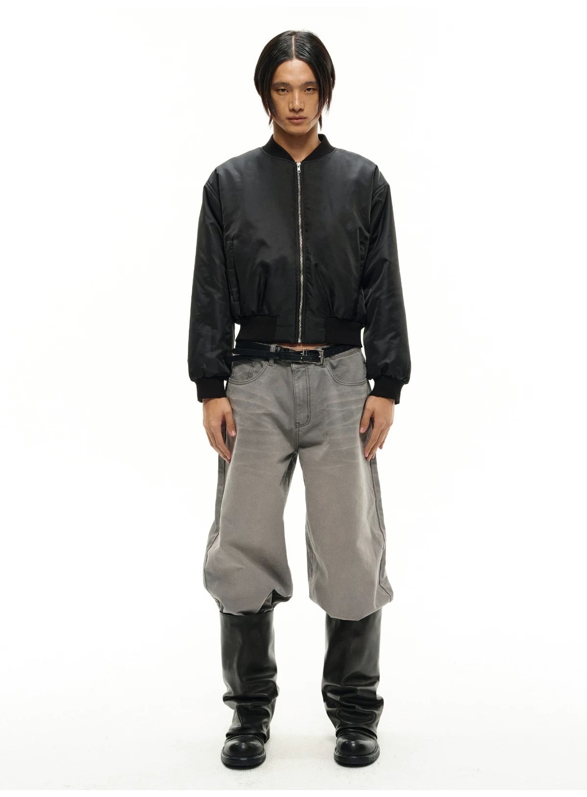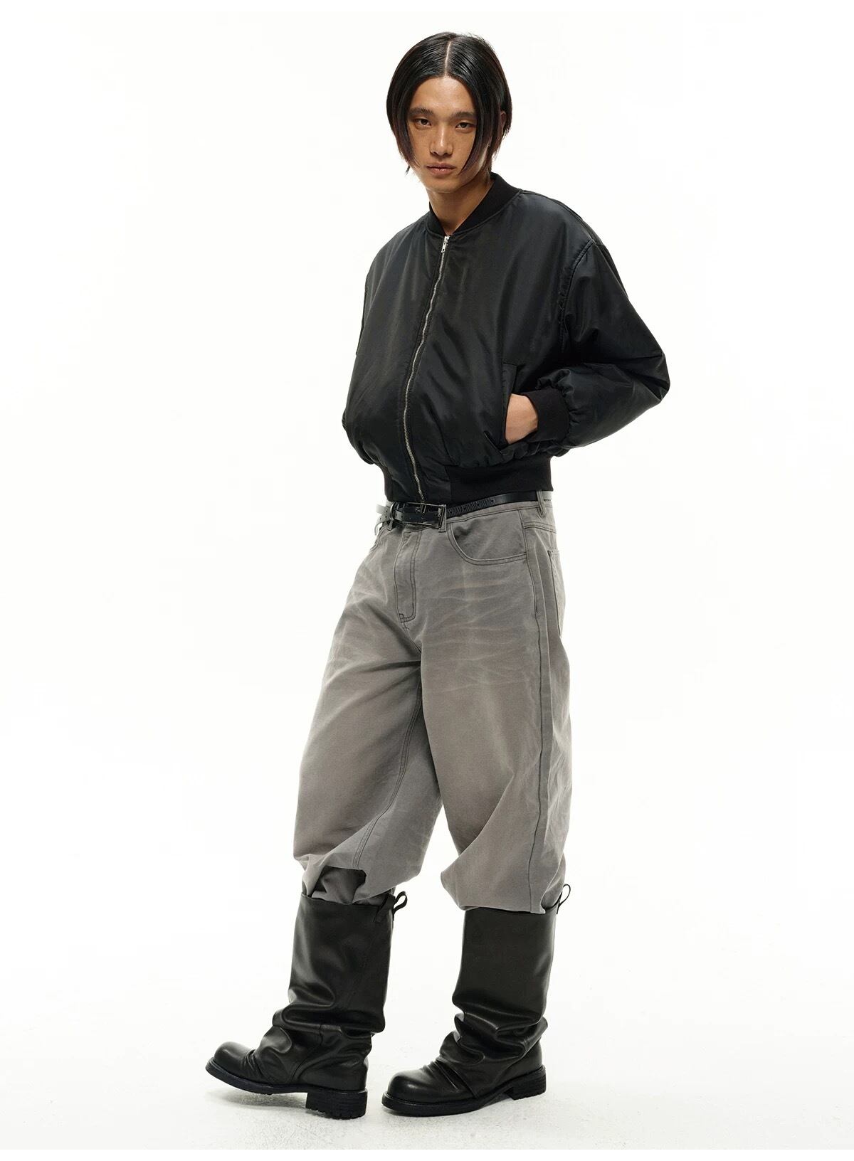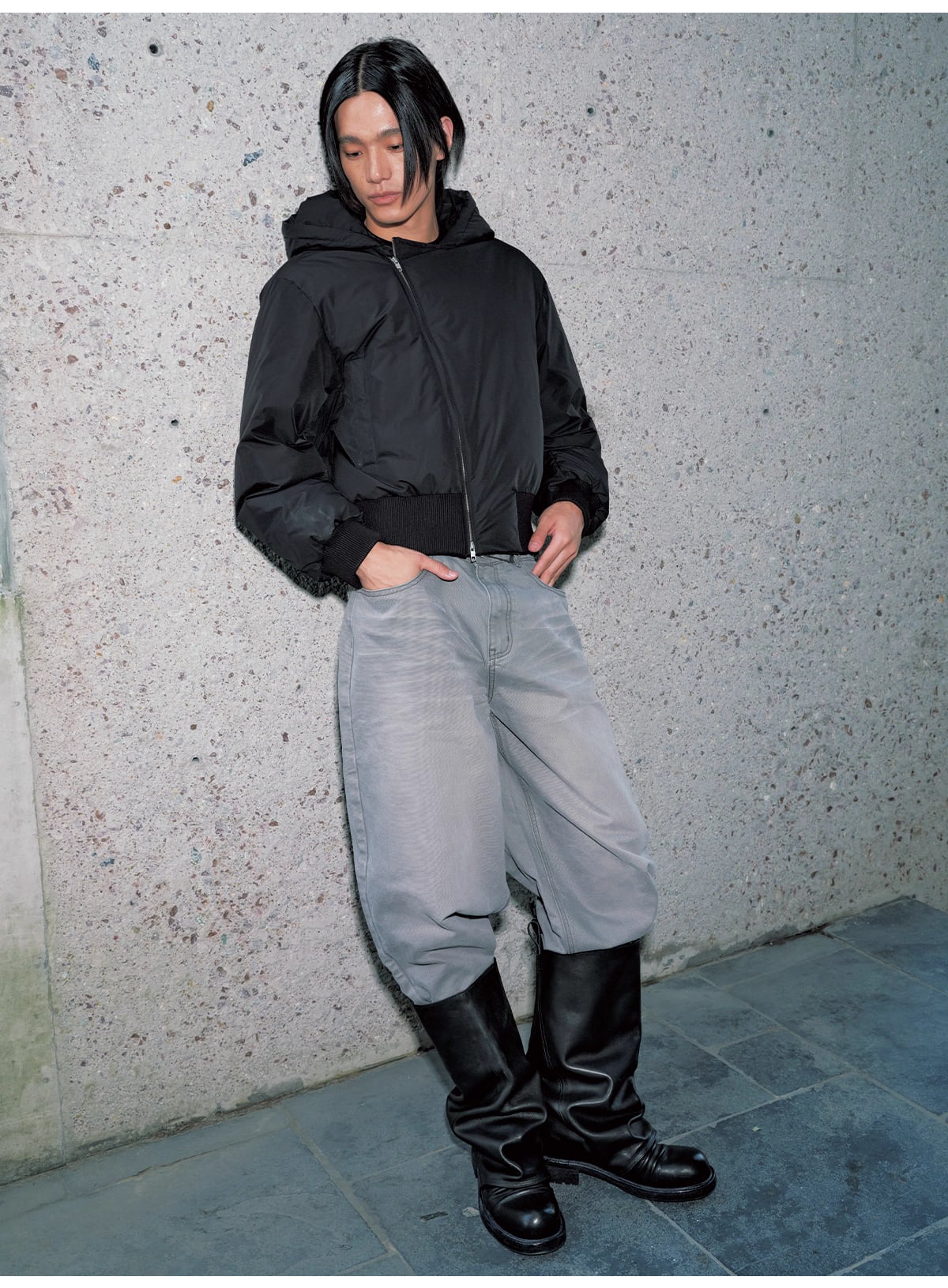 構築的なディテール: ワイドな筒部分は、パンツの裾をインして独特のボリューム感を楽しむスタイリングに最適。